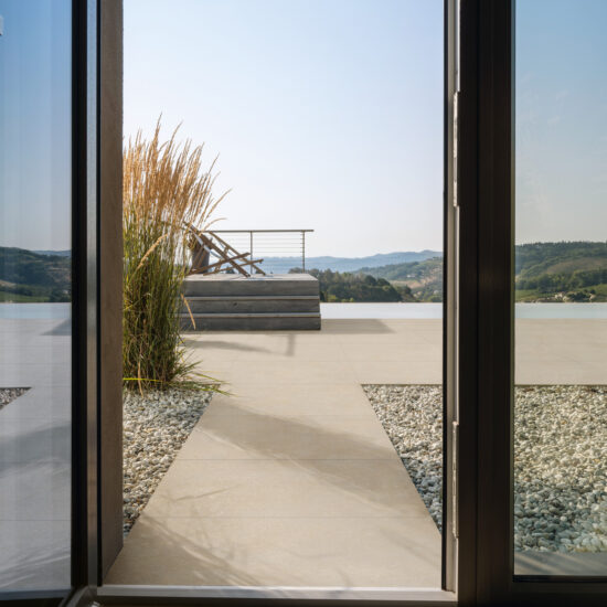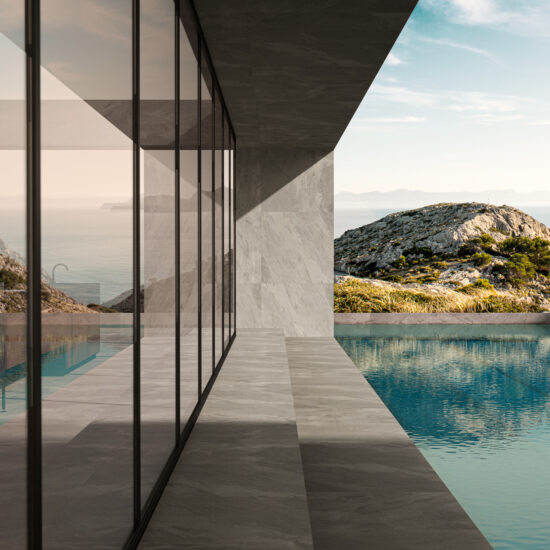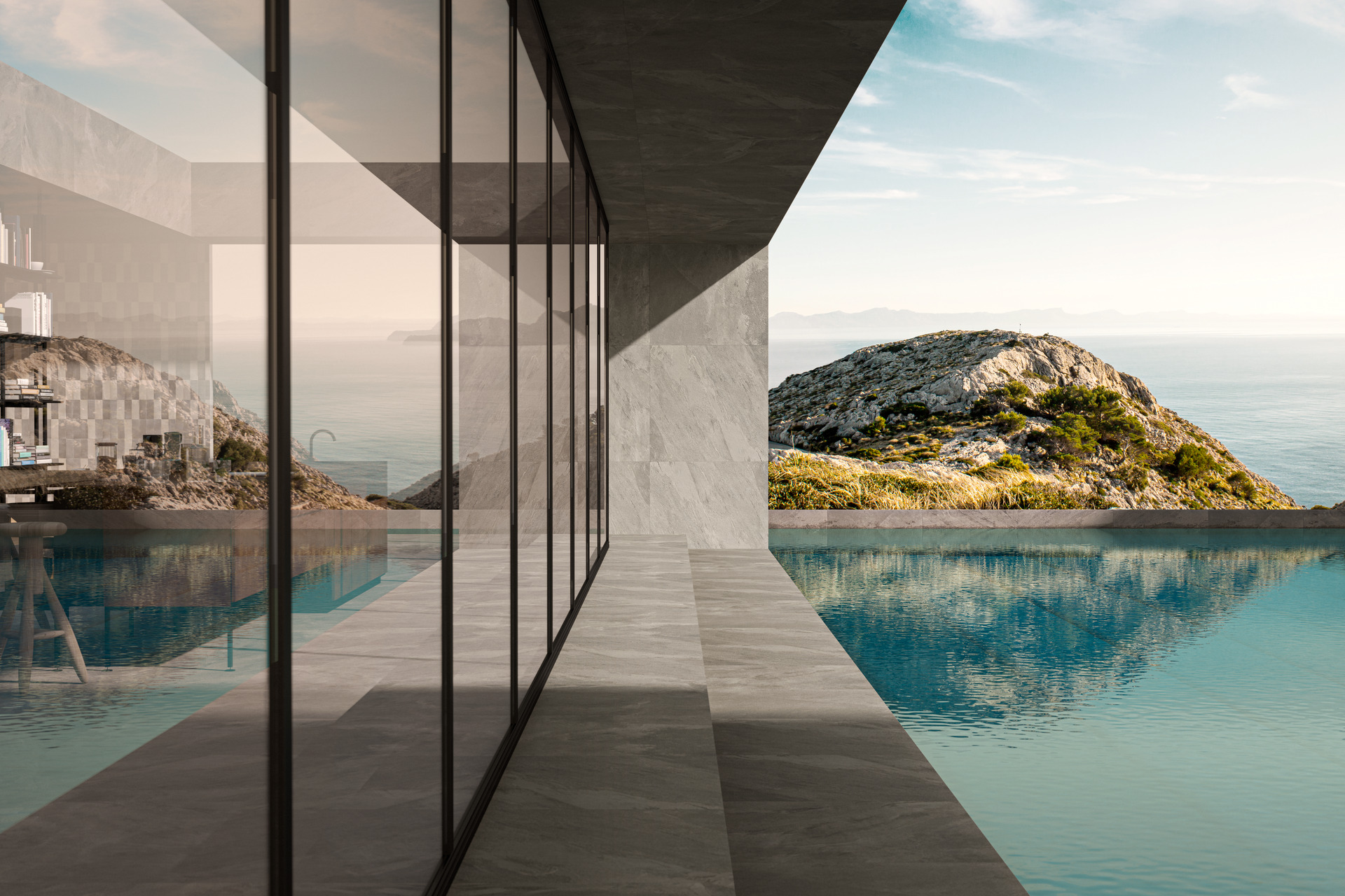 Paleta include griuri calde, nisip și gri porumbel, ideale pentru crearea de spații coordonate între interior și exterior: în acest sens, se recomandă gresia cu aspect de piatră cu finisaj antiderapant, o soluție deosebit de potrivită pentru verande și împrejurimile piscinelor, garantând siguranță și stil.