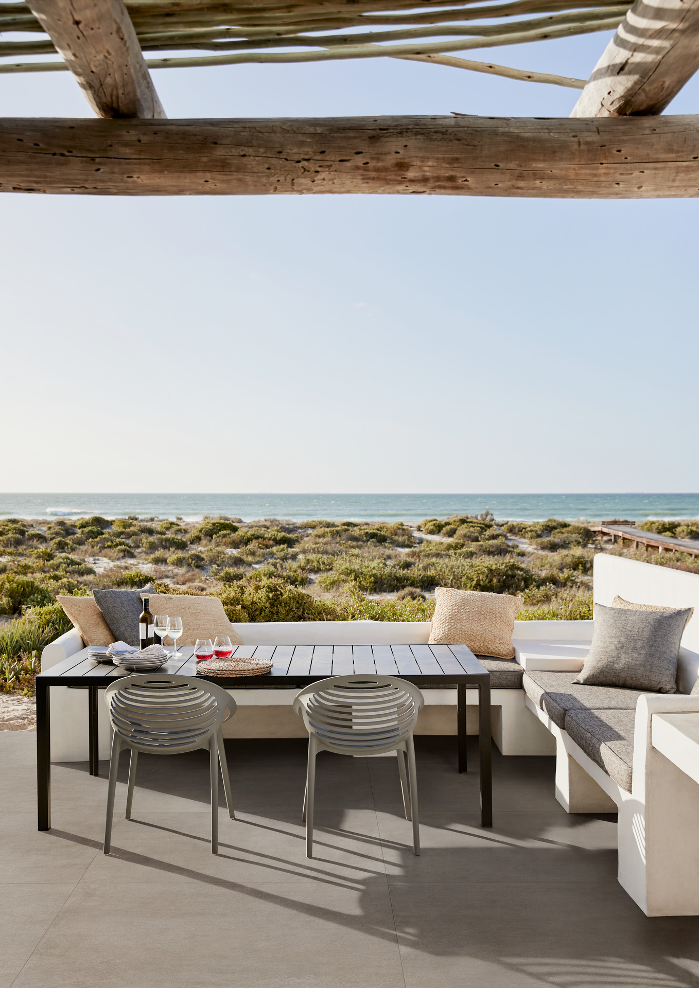 Efectul este cel al unui living în aer liber, sobru dar distinctiv, unde fiecare element face parte dintr-un proiect coerent.