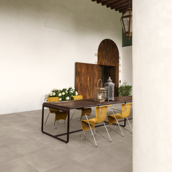 Pentru a materializa acest echilibru, punctul de plecare nu poate fi decât designul suprafețelor: pardoseala, în special, reprezintă baza vizuală și tehnică pe care se construiește întregul concept al exteriorului. Gresia porțelanată se dovedește, în acest sens, materialul ideal pentru interpretarea oricărui stil, datorită versatilității, durabilității și frumuseții sale naturale.