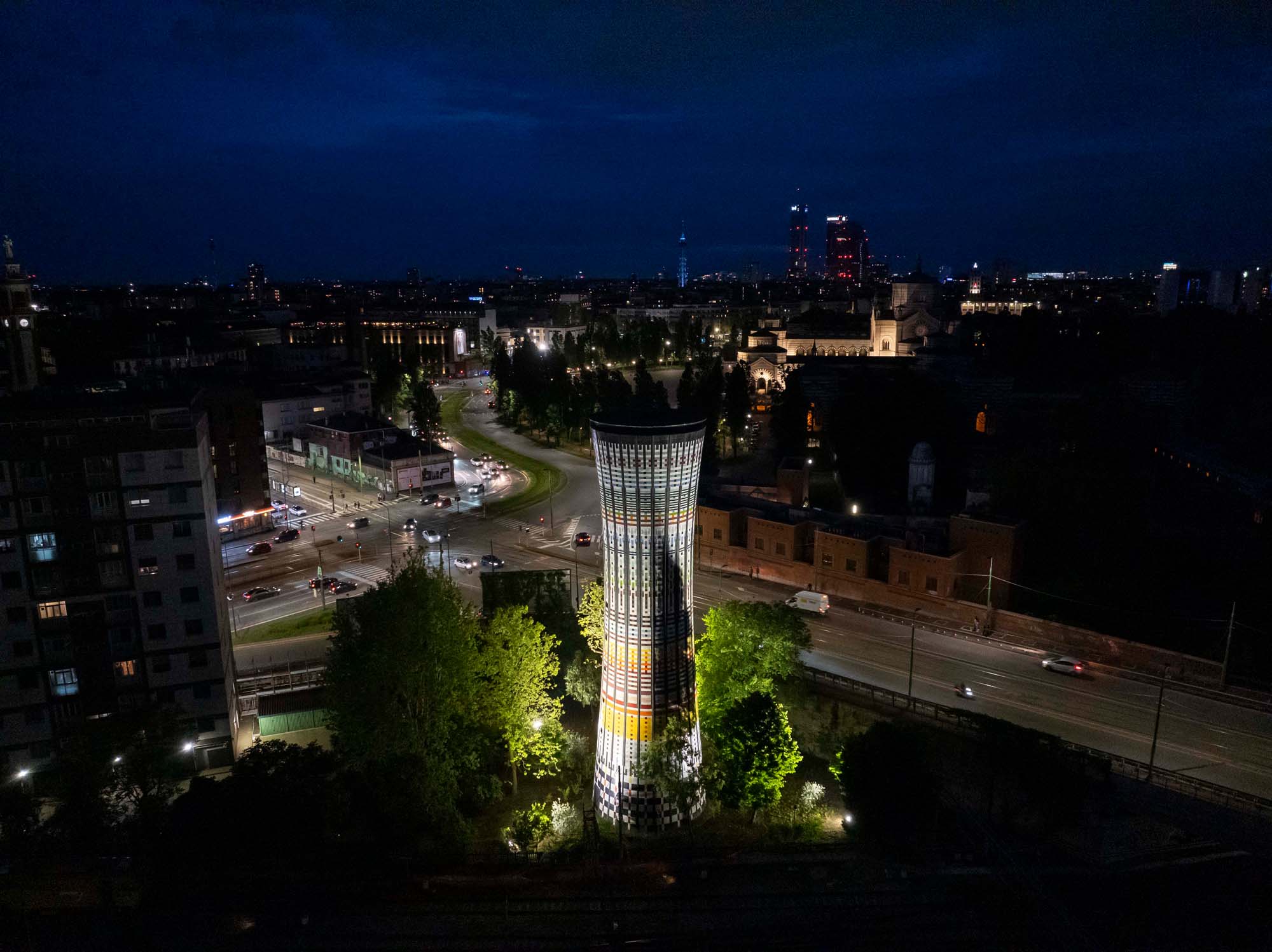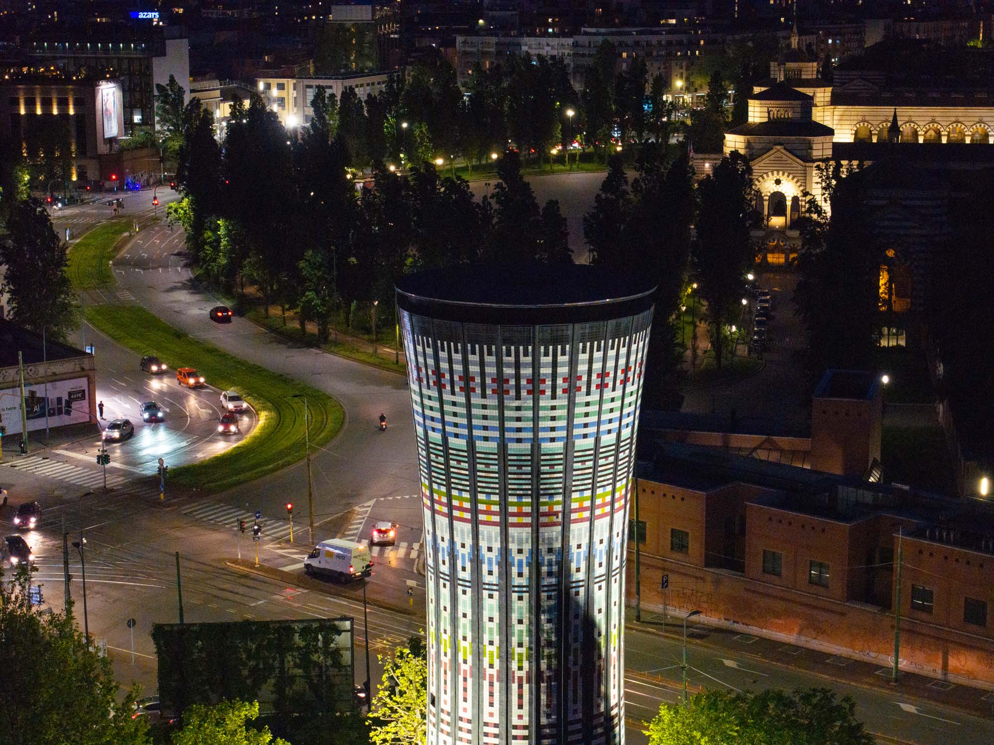 Noua iluminare este un omagiu adus orașului și locuitorilor săi, așa cum celebrul totem ceramic colorat a fost un omagiu pentru industria milaneză și, în general, pentru Made in Italy. Ceramica, un material înrădăcinat în tradiția italiană, vine să sublinieze aici valorile de modernitate și dinamism ale unei metropole întotdeauna epicentrul arhitecturii și creativității.