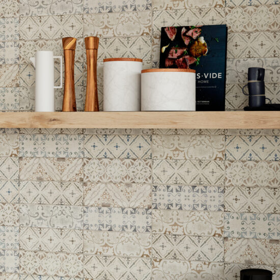 Reinterpretarea stilului vintage înseamnă combinarea modelelor retro și a culorilor vii cu funcționalitățile gresiei porțelanate cu aspect de cementine, un material care asigură durabilitate, rezistență și ușurință în întreținere, chiar și într-o bucătărie cu un aer rustic.