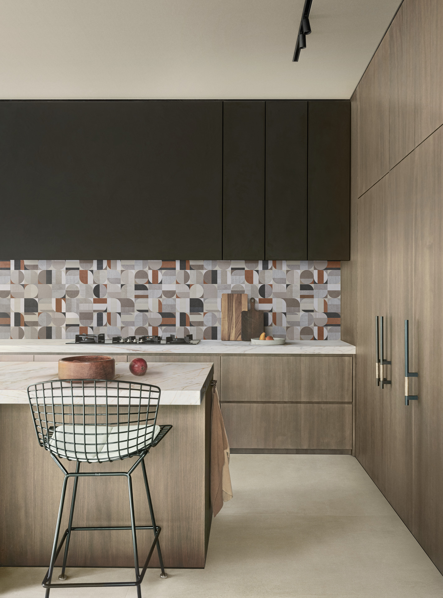Uniunea dintre lemn și cementine este o întâlnire între tradiție și contemporaneitate, ideală pentru bucătării care doresc să se remarce: posibilitățile compoziționale oferite de colecții precum Stream transformă fiecare spațiu într-un mediu unic, primitor și rafinat.