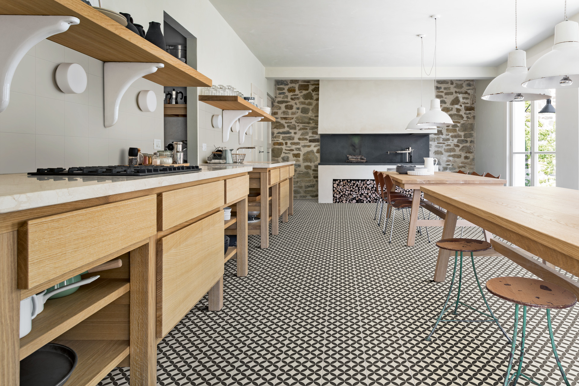 Mulțumită cementinelor, farmecul trecutului trăiește un prezent reînnoit în bucătărie, fără a renunța la practicitatea materialelor moderne care privesc mereu spre viitor.