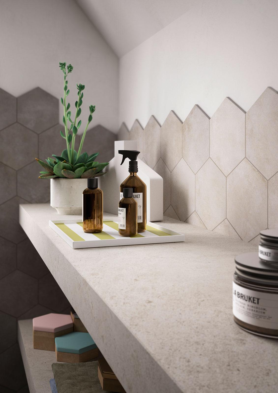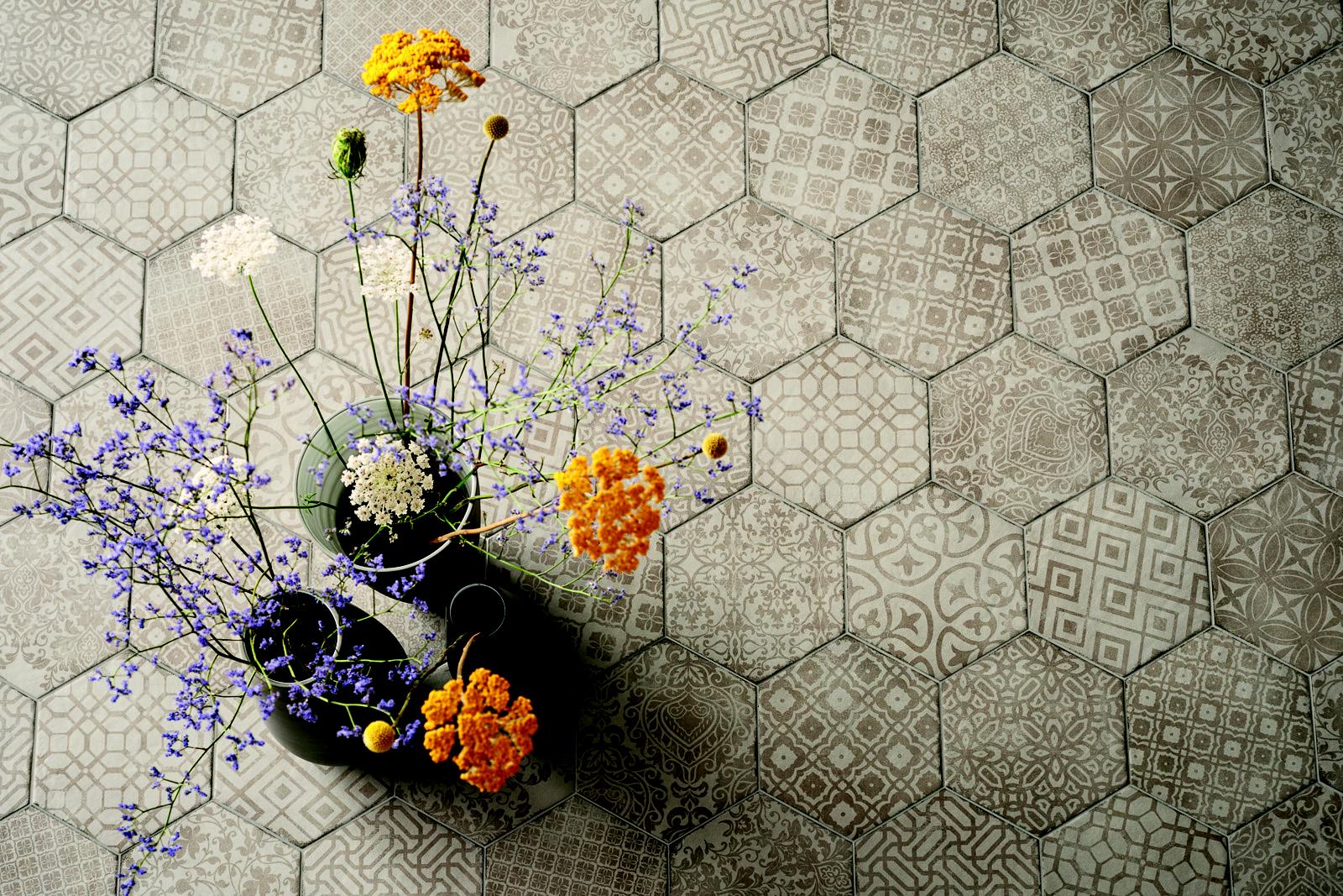 Se introduc perfect în acest trend „vintage” și hexagonalele, plăci puternic decorative, care în primii ani ai sec. XX au placat multe locuințe din centrele istorice și pe care Marazzi le propune în diverse colecții.