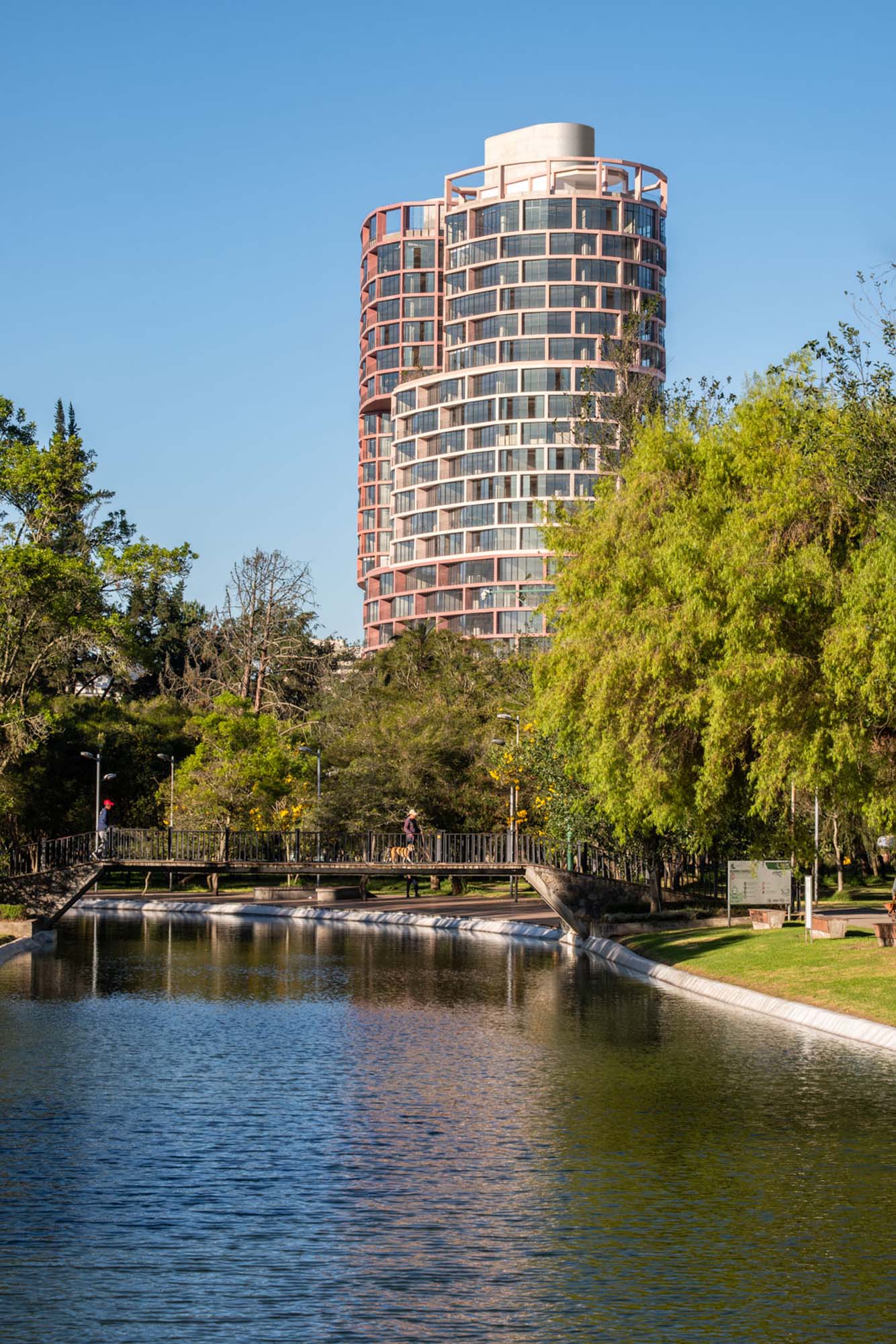 Blocul rezidențial, dezvoltat sub formă de două volume care se intersectează, formează un cartier vertical care exemplifică o nouă abordare a integrării spațiului urban cu o clădire cu mare densitate care își propune să promoveze conceptul de comunitate.