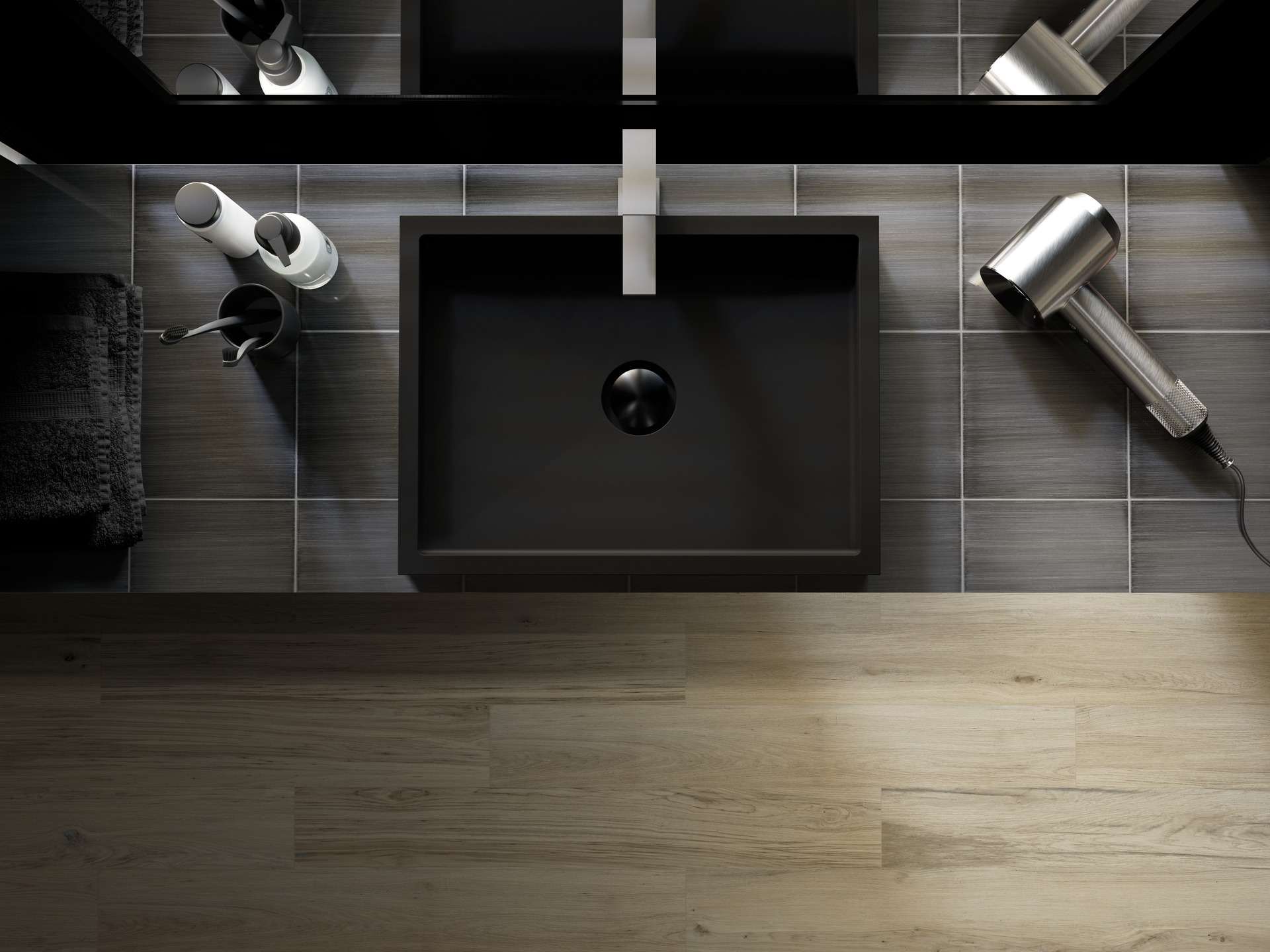 Formatul și dimensiunea plăcilor influențează semnificativ percepția spațiilor. Plăcile mari, precum cele din colecția Grande, sunt adesea asociate cu spații ample, dar în realitate reprezintă o soluție excelentă și pentru băile mici: suprafața lor continuă, cu puține rosturi vizibile, contribuie la crearea unui efect vizual mai mare și mai ordonat.