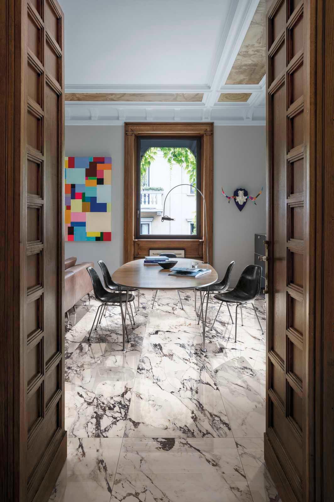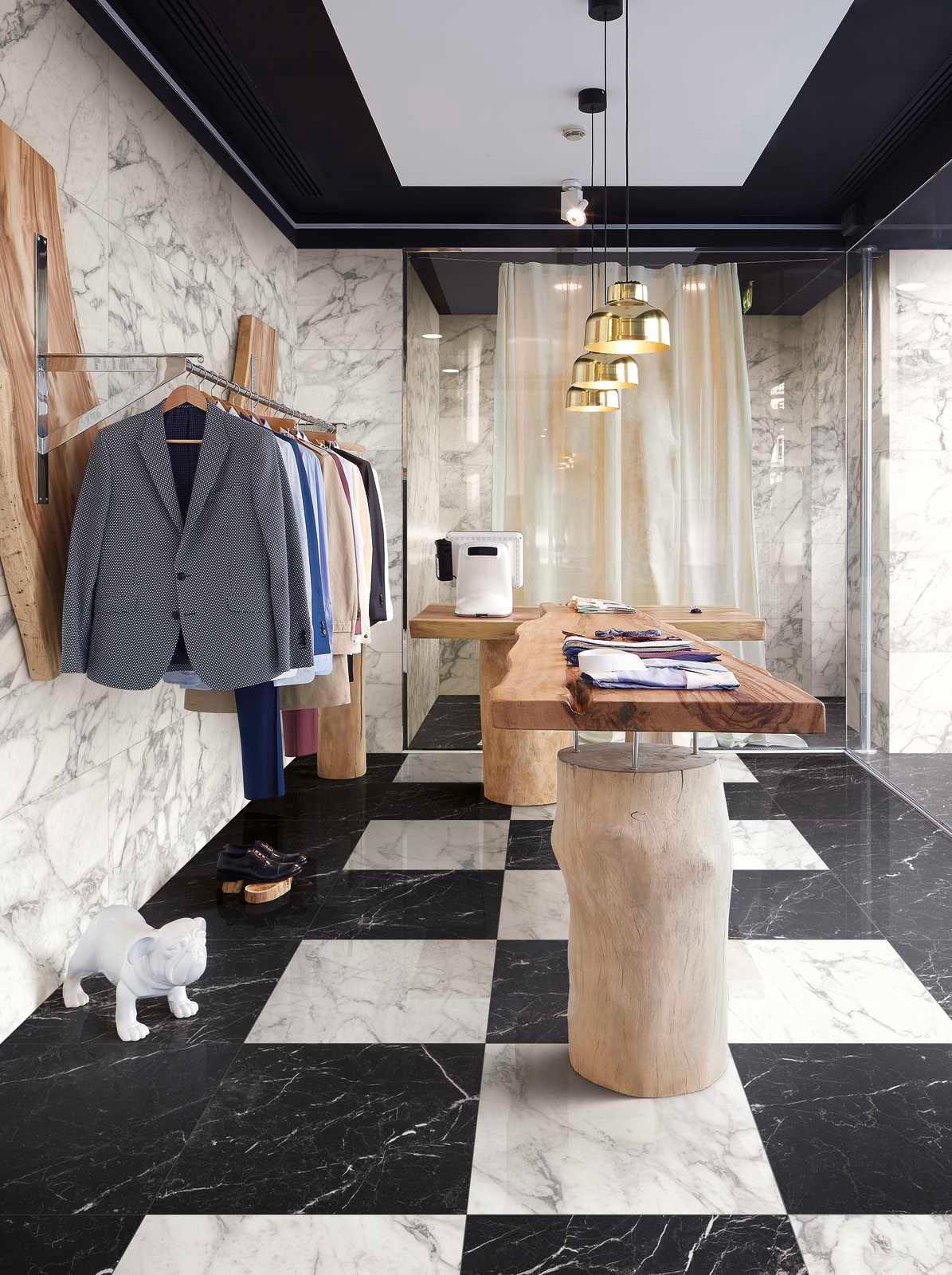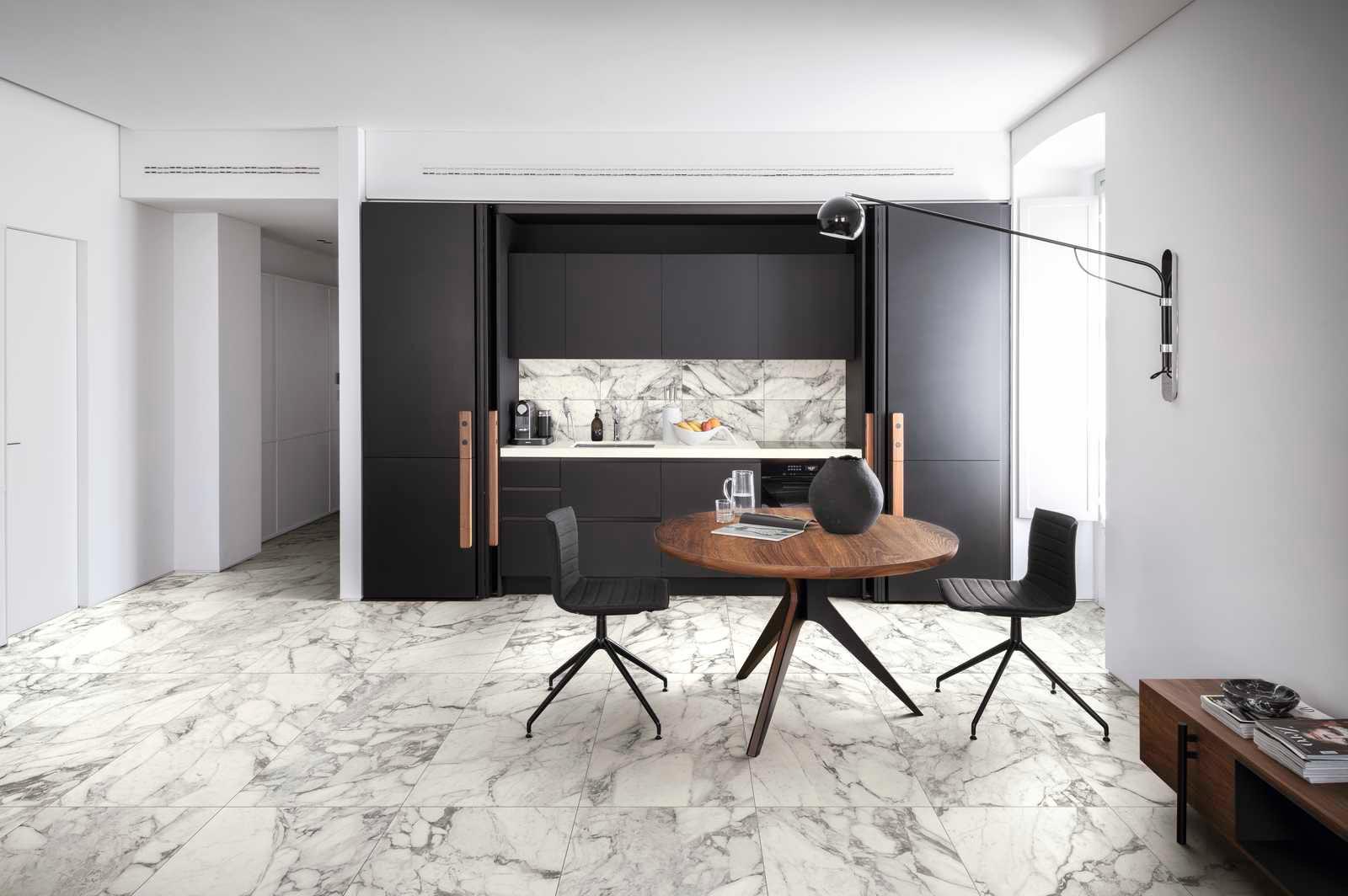 Asistăm deja de câțiva ani la întoarcerea realmente importantă a marmurei în decorațiunile interioare: odinioară sinonimă a stilului clasic, marmura este astăzi un finisaj foarte la modă atât în domeniul designului, cât și al arhitecturii. Fiind dintotdeauna sinonimă cu luxul și fiind un material deloc ieftin, astăzi reprezintă o opțiune pentru toată lumea grație gresiei porțelanate cu aspect de marmură care, la frumusețea materialului natural, perfect interpretată cu ajutorul tehnologiilor digitale, adaugă și caracteristici tehnice de înaltă clasă: nu absoarbe lichide, nu se pătează, este foarte ușor de curățat.