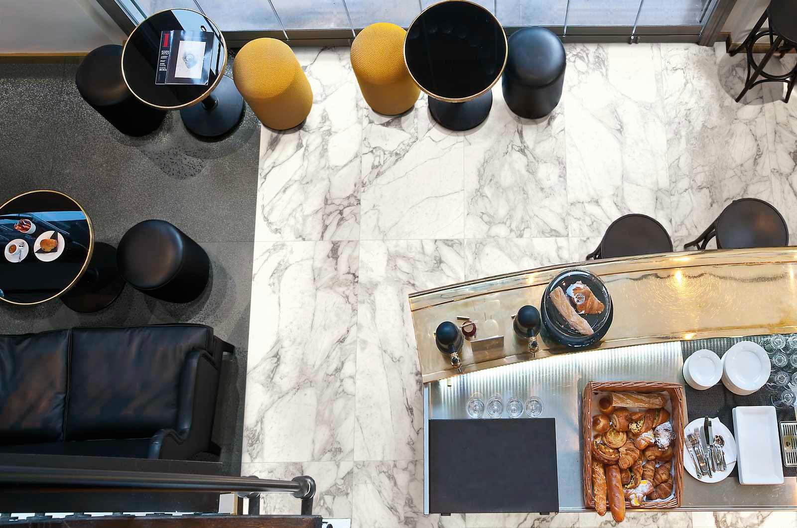 Mai exact, la deja prezentele modele Lasa, Statuario, Raffaello, Altissimo, Travertino, Saint Laurent și Frappuccino, se adaugă noi culori și finisaje inspirate de celelalte marmure valoroase. Calacatta Extra, Elegant Black, Pulpis, Capraia și Imperiale oferă noi nervuri cu un aspect din ce în ce mai natural, formând o gamă cu adevărat completă de gresii cu aspect de marmură.