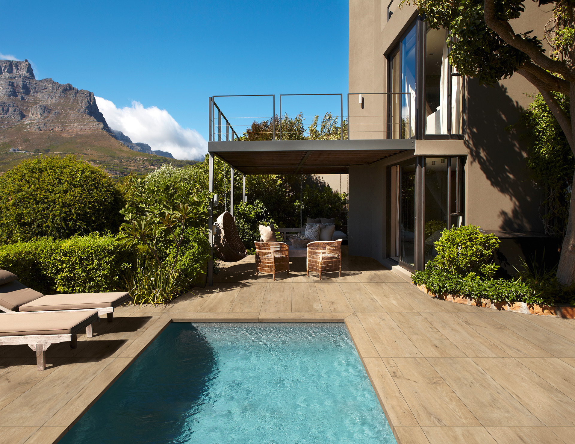 Sufletul versatil al gresiei porțelanate cu aspect de lemn este pe deplin exprimat atunci când este combinat cu alte materiale pentru a spori și mai mult caracterul spațiilor. Aspectul de lemn găsește o armonie naturală cu piatra creând medii care amintesc de materialitatea și autenticitatea spațiilor exterioare, perfecte pentru cei care iubesc un stil rustic sau contemporan cu referințe naturale.