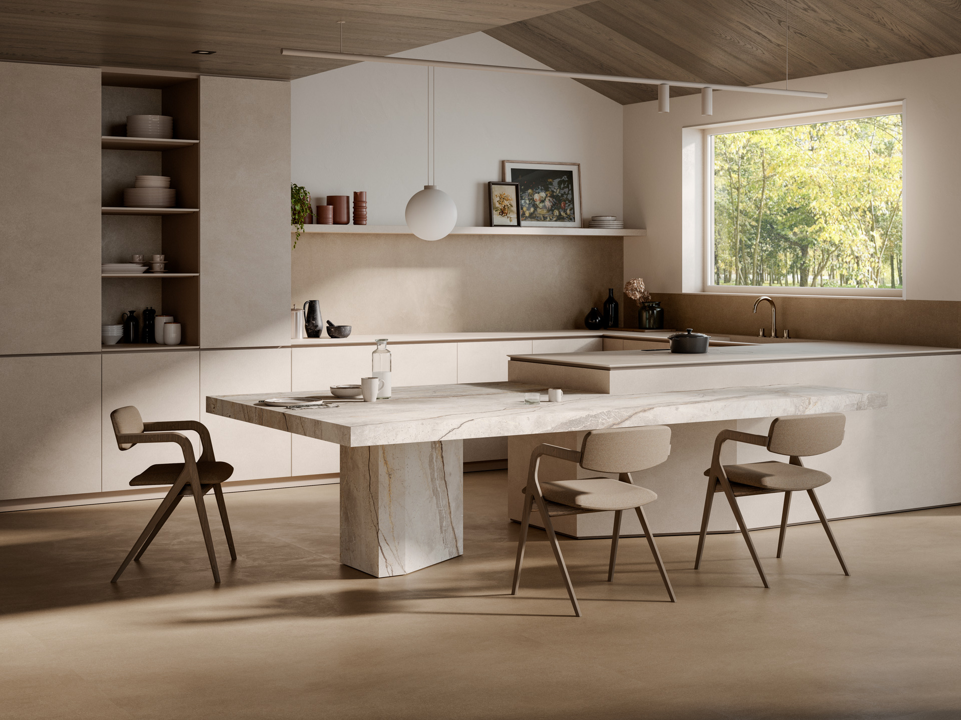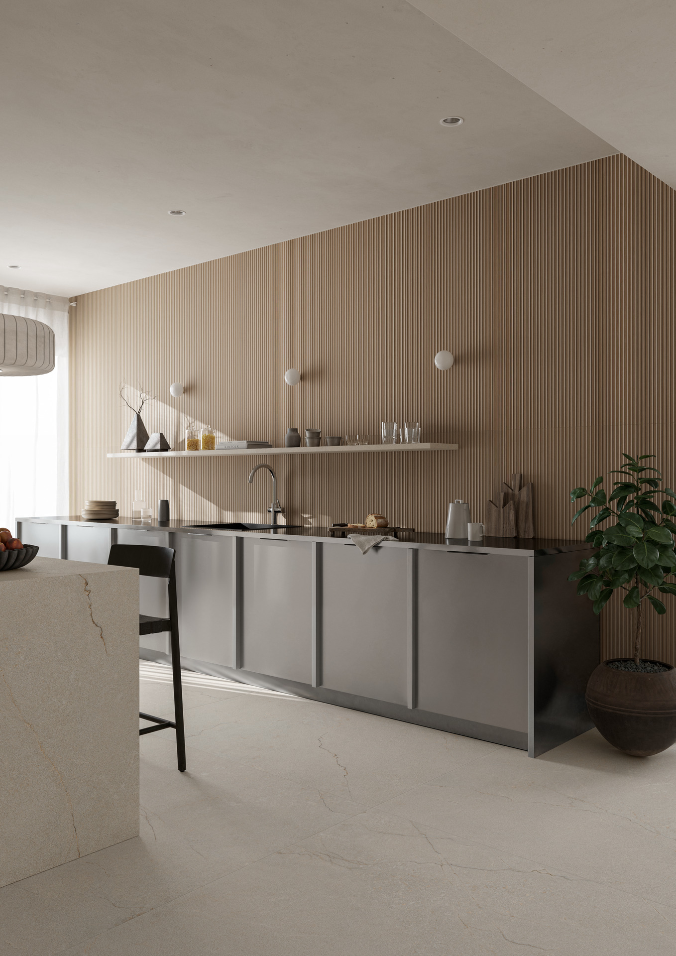 Când vine vorba de idei pentru bucătăria open space și de cum să organizezi o zonă de zi unică ce cuprinde bucătărie și living, gresia porțelanată se remarcă drept una dintre cele mai versatile și performante soluții.