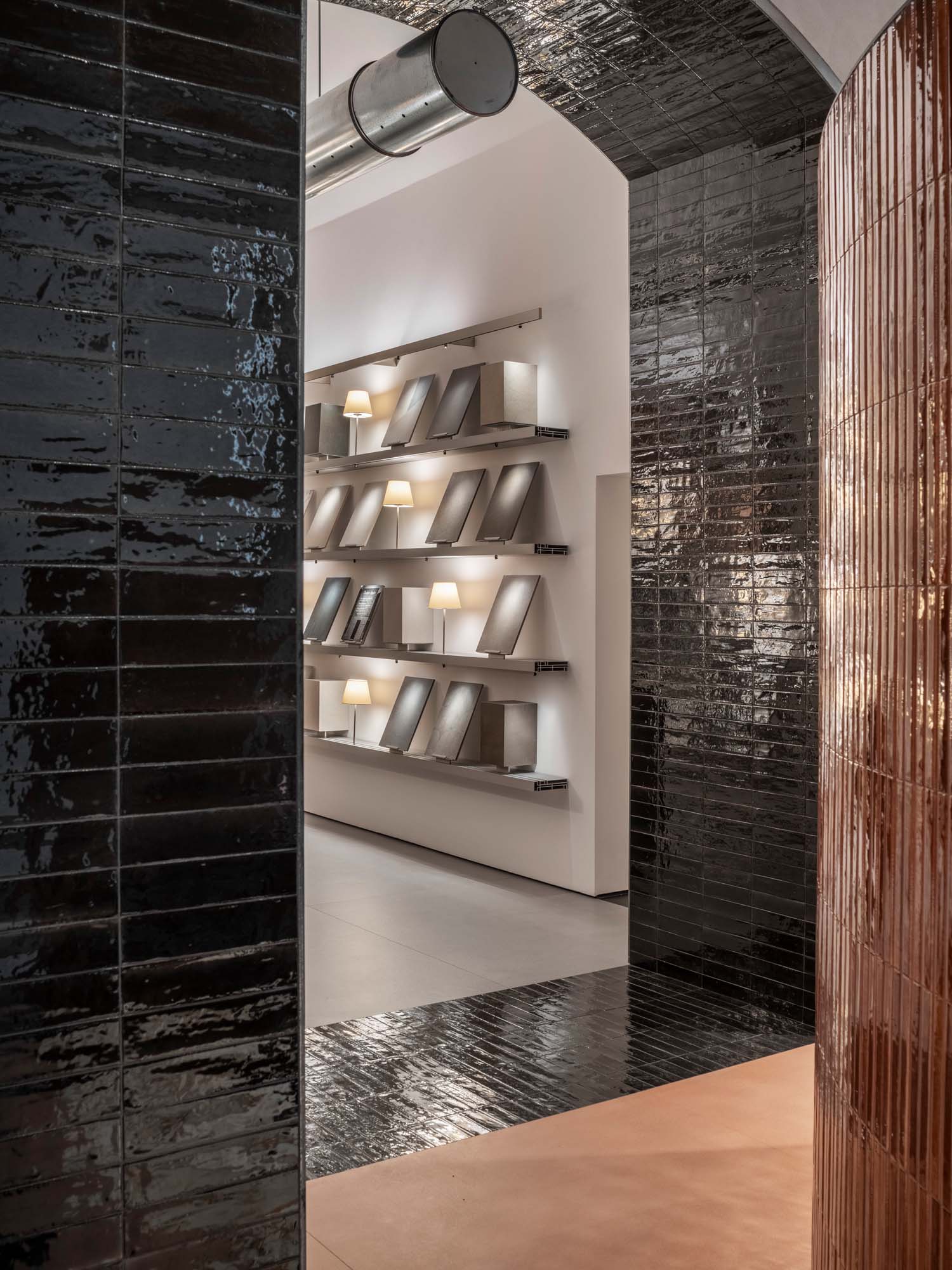 O locație de excepție, de 400 de metri pătrați distribuiți pe două niveluri, primește vizitatorii într-un spațiu surprinzător în care versatilitatea materialelor ceramice este adevărata protagonistă, într-un echilibru perfect între inovație și design. Ferestrele mari de pe via Vittorio Emanuele Orlando oferă o previzualizare sugestivă a organizării spațiilor, unde jocurile de perspective și materiale conduc vizitatorii într-o experiență de descoperire continuă în interiorul showroom-ului.