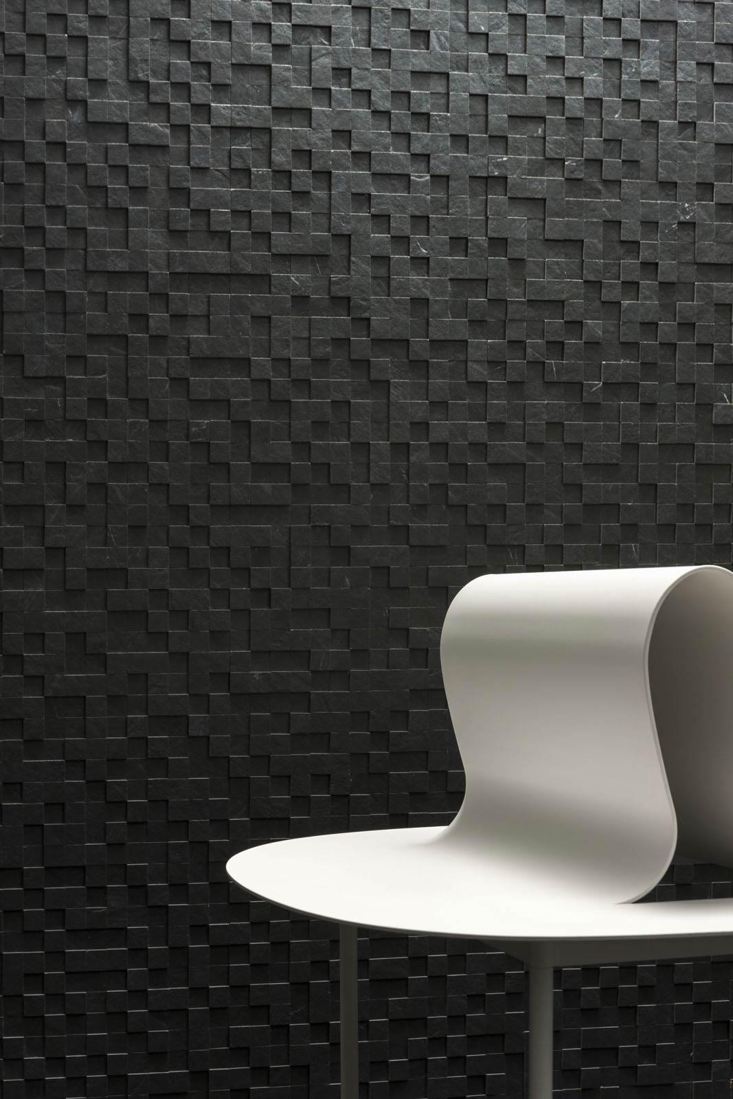 De asemenea, colecția Mystone realizează module 3D capabile să „miște” pereții și să deseneze cortine cu impact vizual sugestiv, deseori utile pentru a delimita puncte focale la interiorul și exteriorul spațiului.