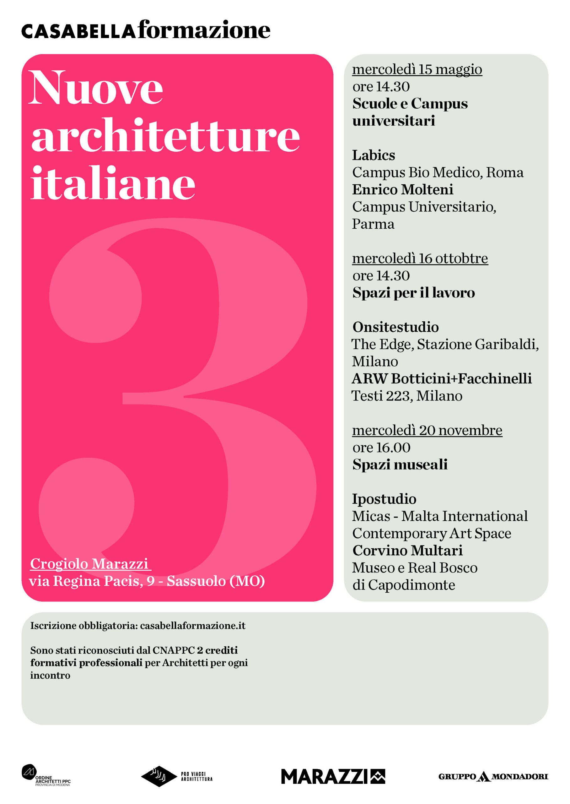 Întâlnirile organizate de Marazzi în colaborare cu Casabella Formazione oferă profesioniștilor din domeniul proiectării o oportunitate unică de a explora noile frontiere ale arhitecturii italiene. Prin intermediul unei serii de întâlniri captivante și educative, participanții vor avea ocazia să exploreze tendințele emergente din peisajul arhitectural italian, examinând proiecte inovatoare, materiale de ultimă generație și abordări avansate ale unor proiecte.