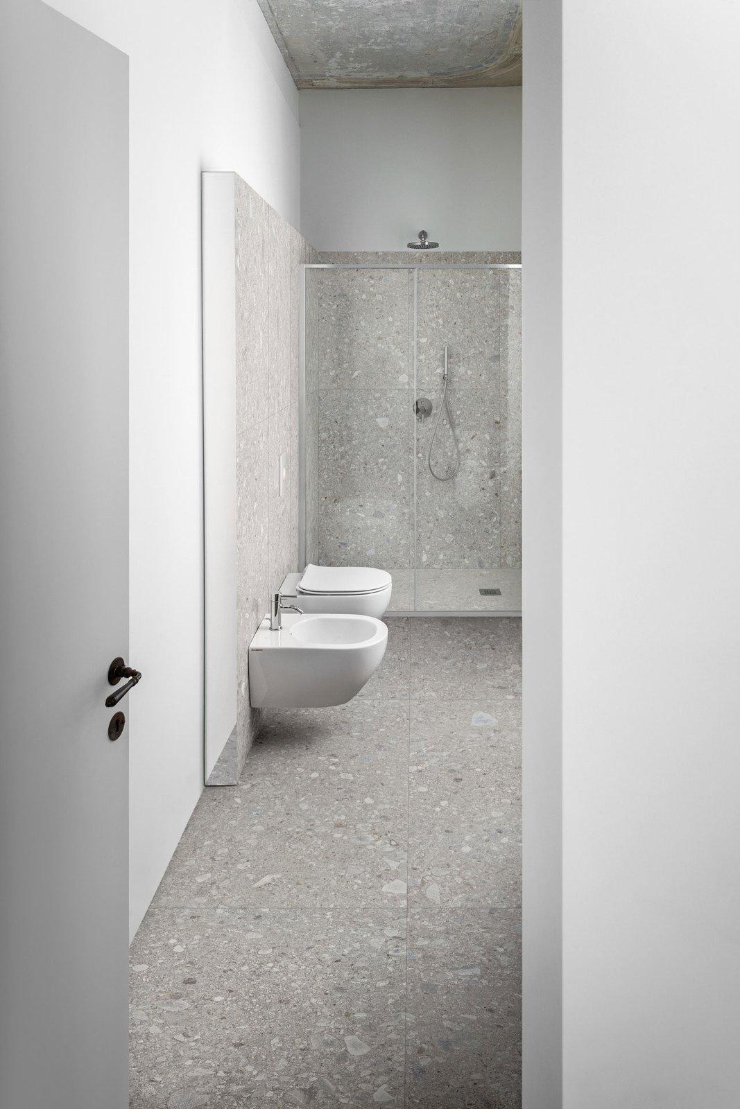 Când baia este foarte mică și pereții sunt acoperiți de obstacole precum uși, feronerie și radiatoare, suprafața care va atrage cel mai mult atenția este chiar pardoseala.