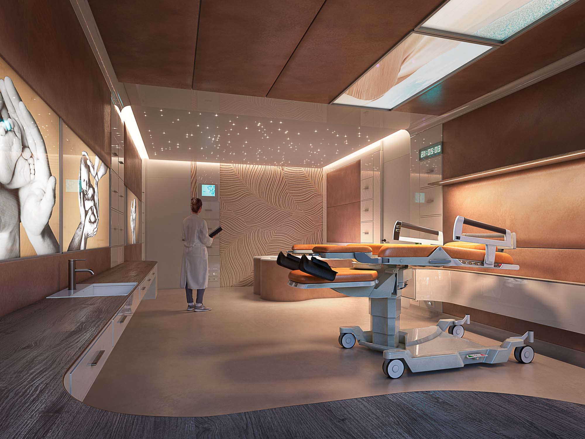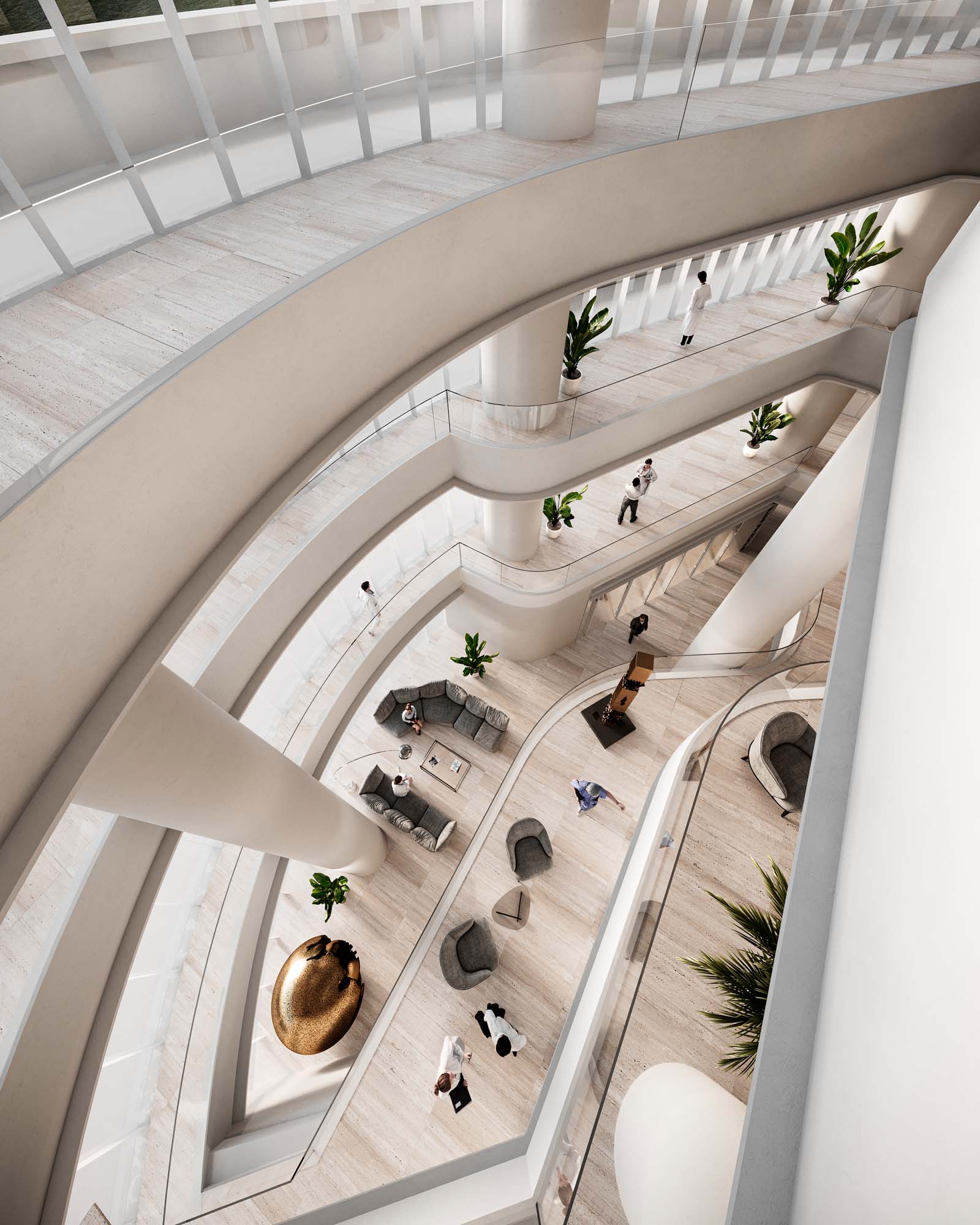 Layout-ul arhitectural și distributiv trebuie să garanteze un standard înalt de intimitate, personalizare, umanizare și confort, pentru a estompa elementele caracteristice ale spitalului ca loc de îngrijire, promovând percepția de ospitalitate, profesionalism, siguranță și bunăstare locativă atât pentru utilizatori, cât și pentru personalul medical. Spitalul devine un organism compact și fluid, strâns integrat și coordonat cu clădirile existente. Pentru a obține acest lucru, este necesar să se adopte o rețea structurală flexibilă și deschisă, care să nu ducă la risipirea suprafețelor și costuri inutile de întreținere. Metodologia noastră, dobândită în decenii de proiectare a spitalelor, ne-a condus la definirea liniilor directoare pentru spitalul viitorului.