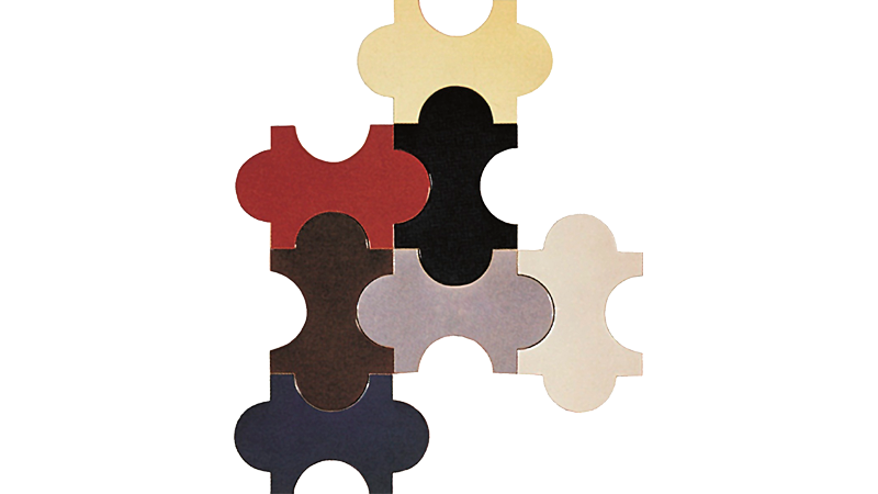Marazzi propune o cercetare structurată cromatică, în module colorate și coordonate între ele.