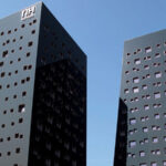 Turnurile-hotel realizate de Dominique Perrault creează efecte insolite de abstracție datorită unui strat tip oglindă semnat Marazzi.