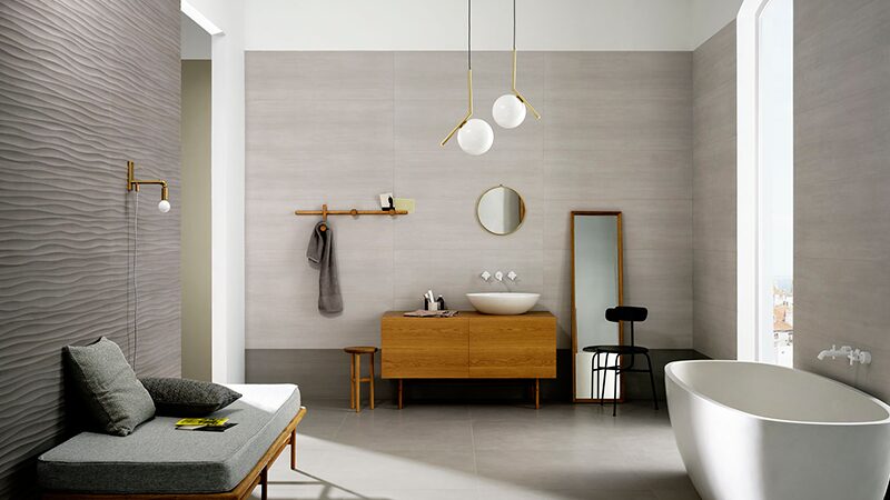 Inspirată din ciment și caracterizată printr-o grafică cu nuanțe fine și armonioase, colecția de gresie porțelanată Powder câștigă premiul Best of Category by Archiproducts Design Award. Variațiile cromatice delicate conferă materialului originalitate, sporind caracteristicile acestuia în noul format mare 75×150 cm.