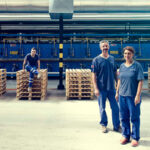 Lucrători în fața primei fabrici Marazzi