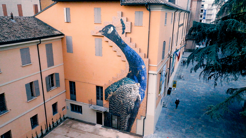 Opera de artă publică permanentă concepută de artistul catalan pentru fațada exterioară a Palazzo dei Musei din Reggio Emilia a fost creată cu treizeci de plăci ceramice produse în fabricile Marazzi și montate pe o fațadă ventilată proiectată și construită de Marazzi Engineering. Păunul este realizat în imprimare digitală de înaltă definiție pe plăci mari subțiri care formează o imagine de 16 x 6 metri.