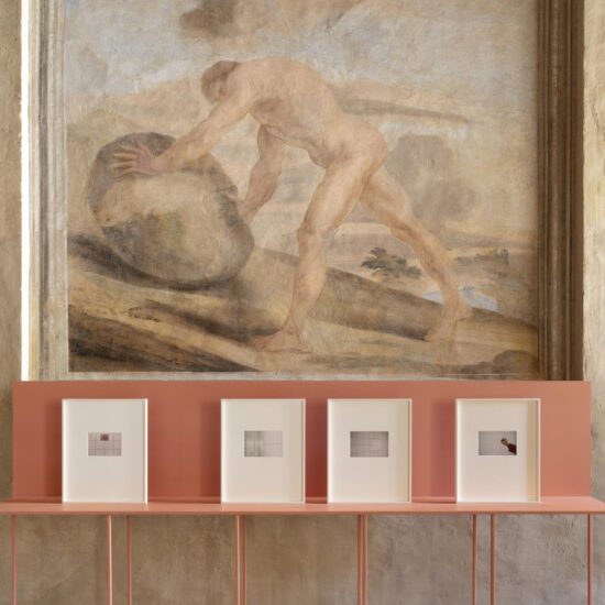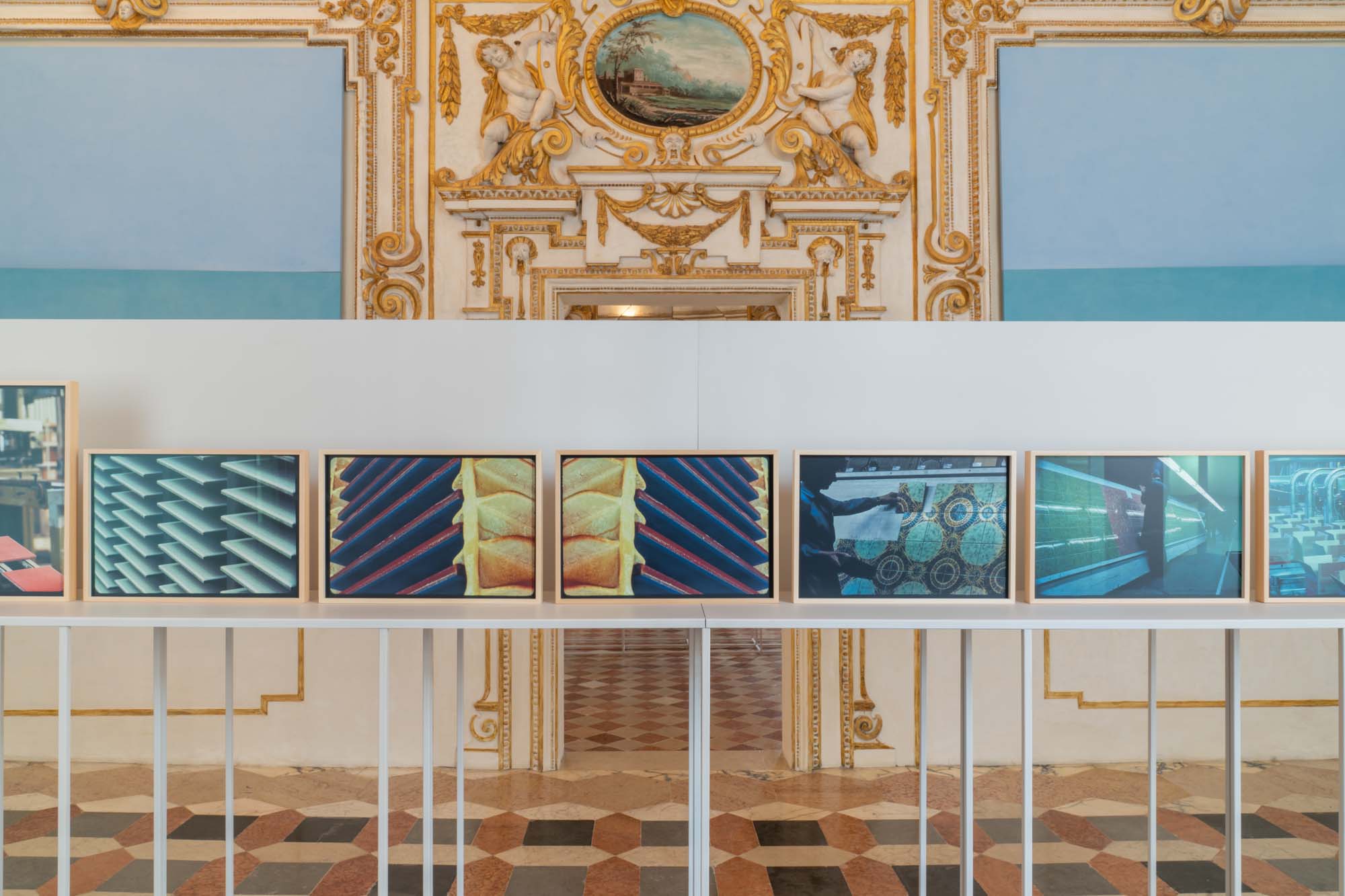 Cu ocazia expoziției Metamorfuoco. Sub lumina lui Tintoretto, găzduită la Gallerie Estensi din Modena, am colaborat cu artistul britanic Simon Starling pentru realizarea unei instalații imersive. Lucrarea a pus în dialog ciclul pictural al lui Tintoretto cu xilogravuri și lucrări contemporane din arhivele Gallerie Estensi, invitând publicul să reflecteze asupra efectelor schimbărilor climatice. Parte integrantă a instalației a fost pardoseala specială din gresie porțelanată, proiectată de Starling și realizată de Marazzi, concepută ca o „pânză” pe care artistul a trasat elemente naturale în relație cu figurile tabloului din secolul al XVI-lea. Aproximativ șaizeci de decorațiuni, toate diferite, au alcătuit un mozaic unic care a definit un spațiu circular destinat să primească vizitatorul și să-l ghideze într-un mediu de parcurs, cufundat în lumina capodoperei lui Tintoretto suspendate deasupra sa.
