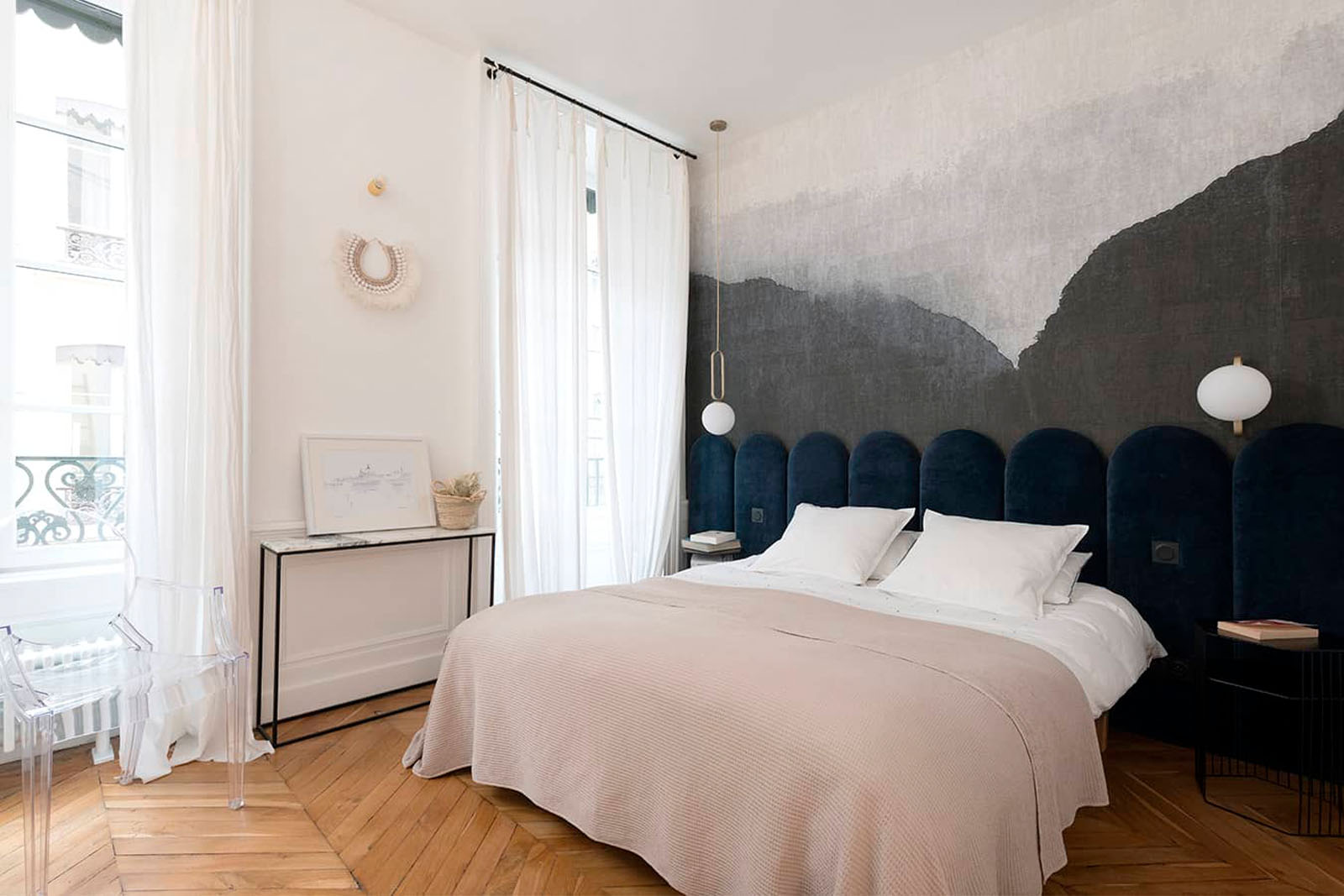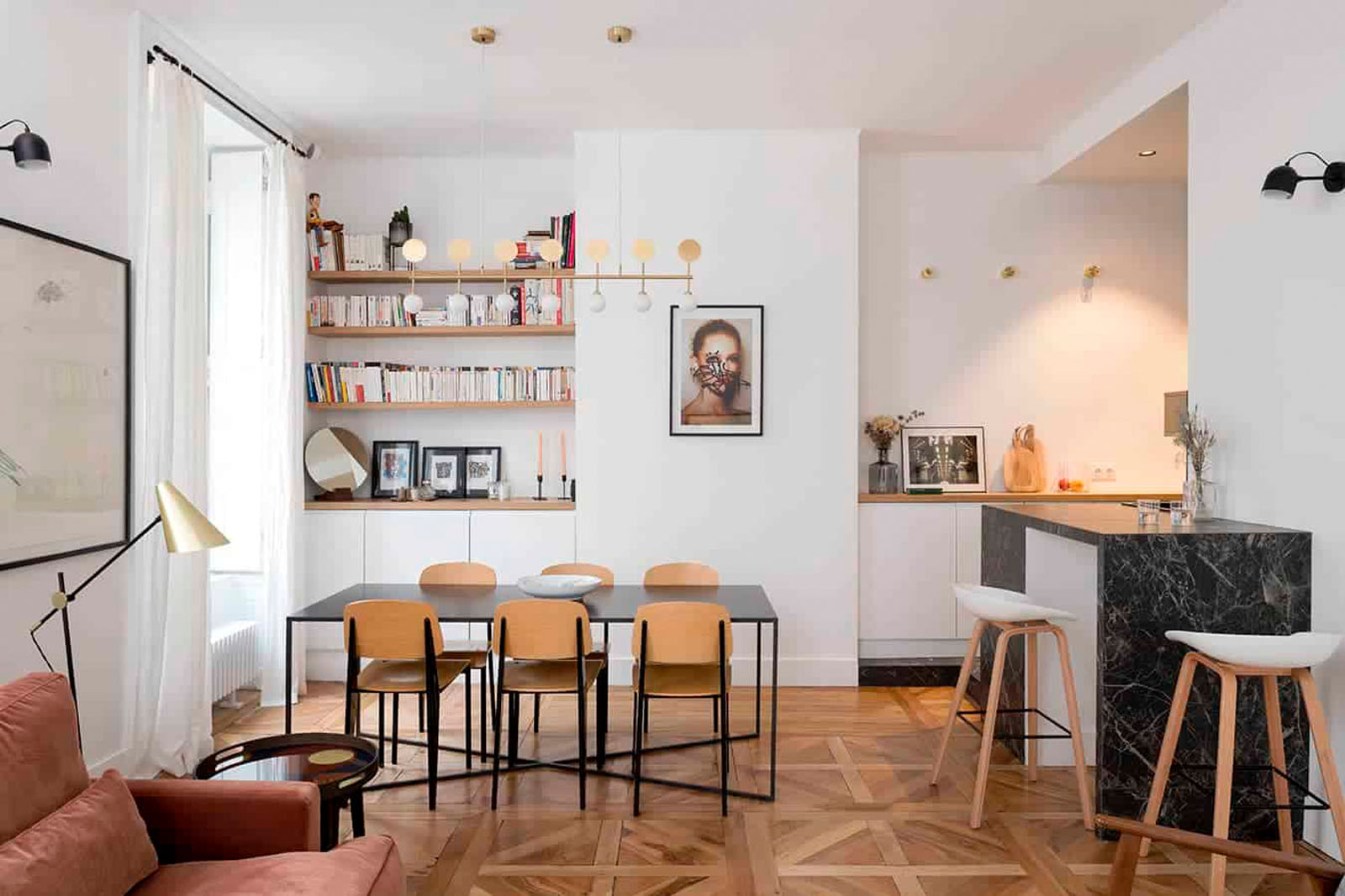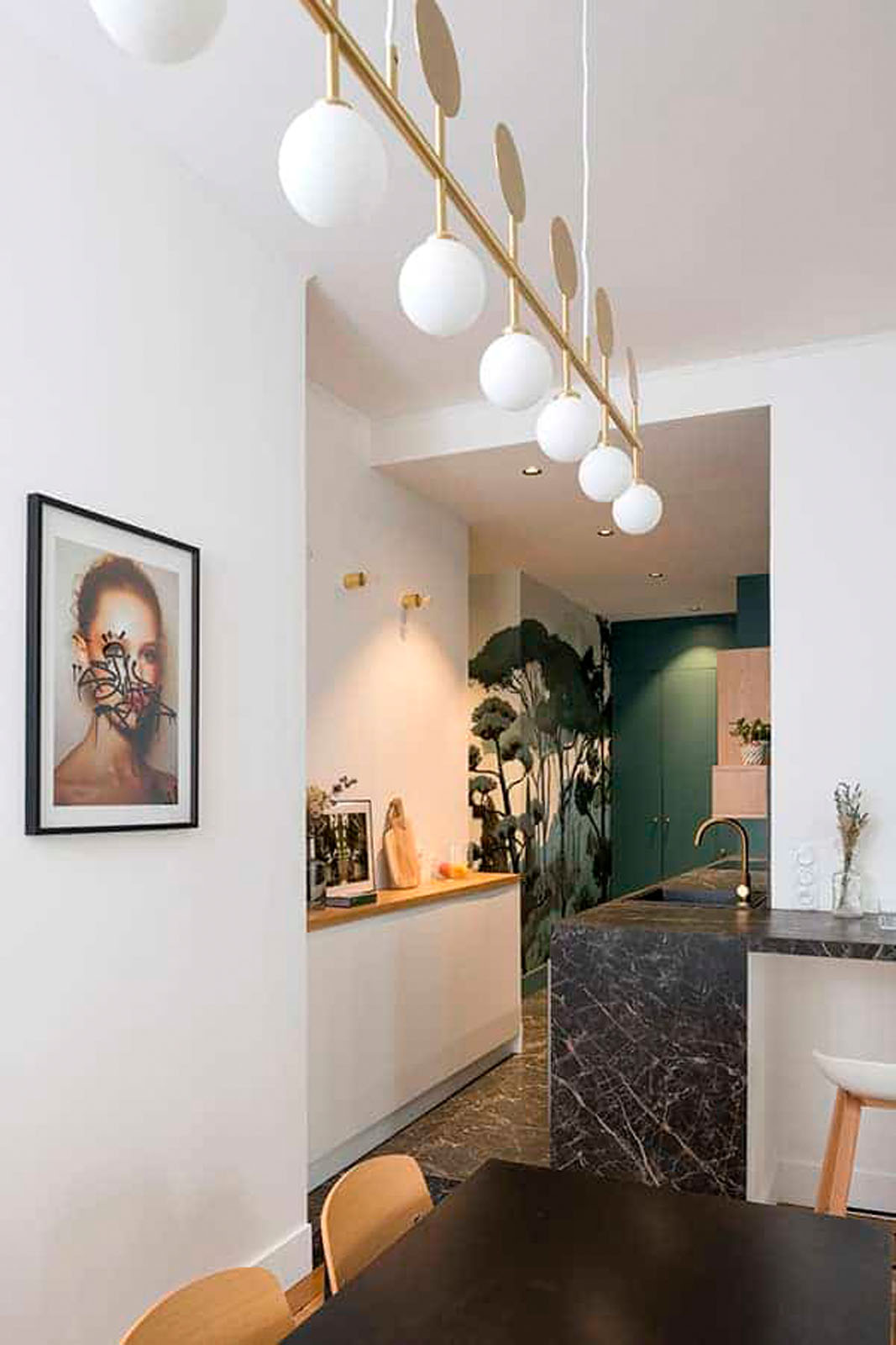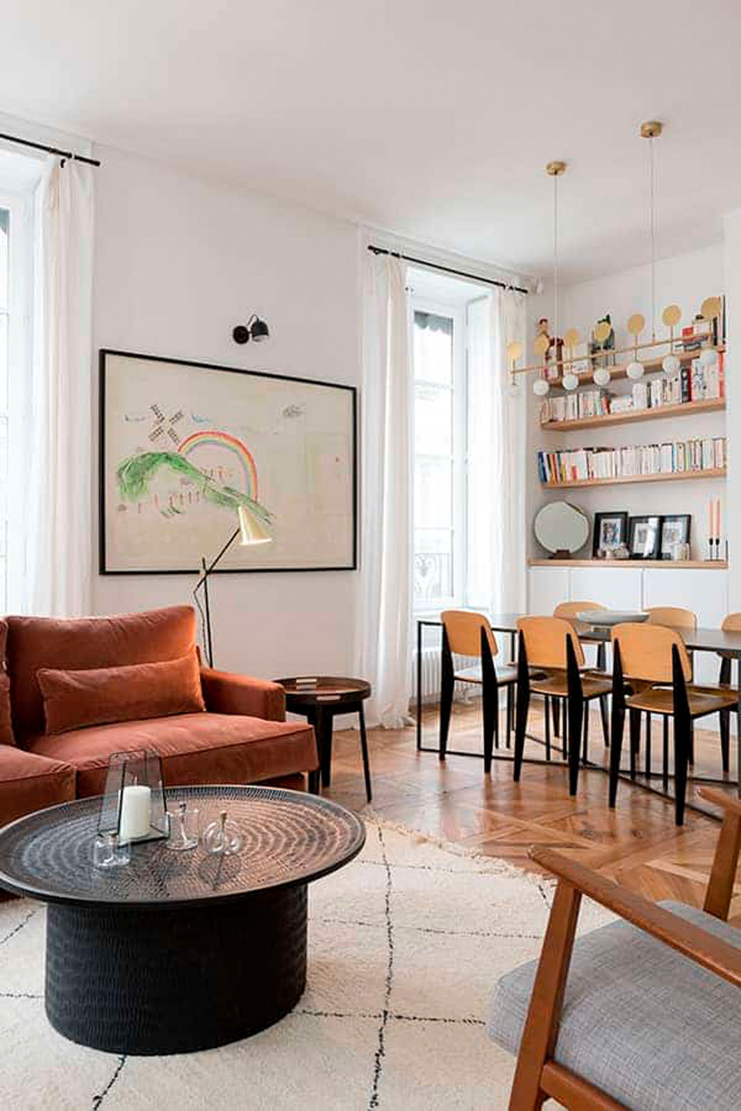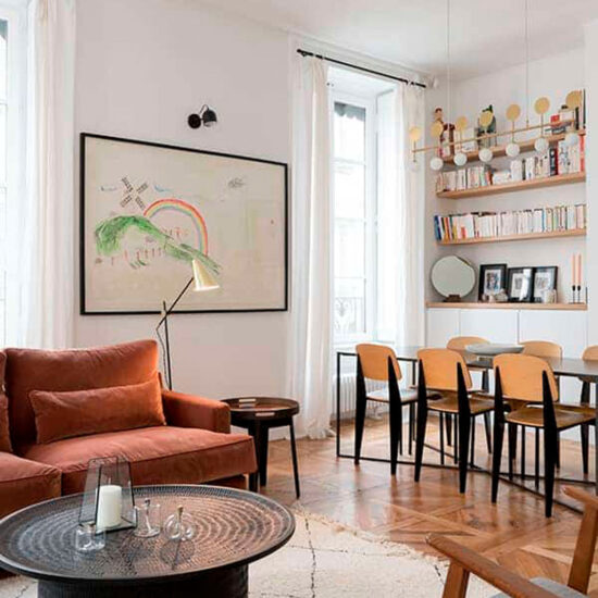 Un fel de open space de 125 mp, cu doar trei uși, în care camerele se succed fără să se repete, iar stilurile, epocile și materialele sunt amestecate pentru a reuni contemporanul cu vechiul, creând încăperi exclusiviste, fidele contextului și departe de simplificare.