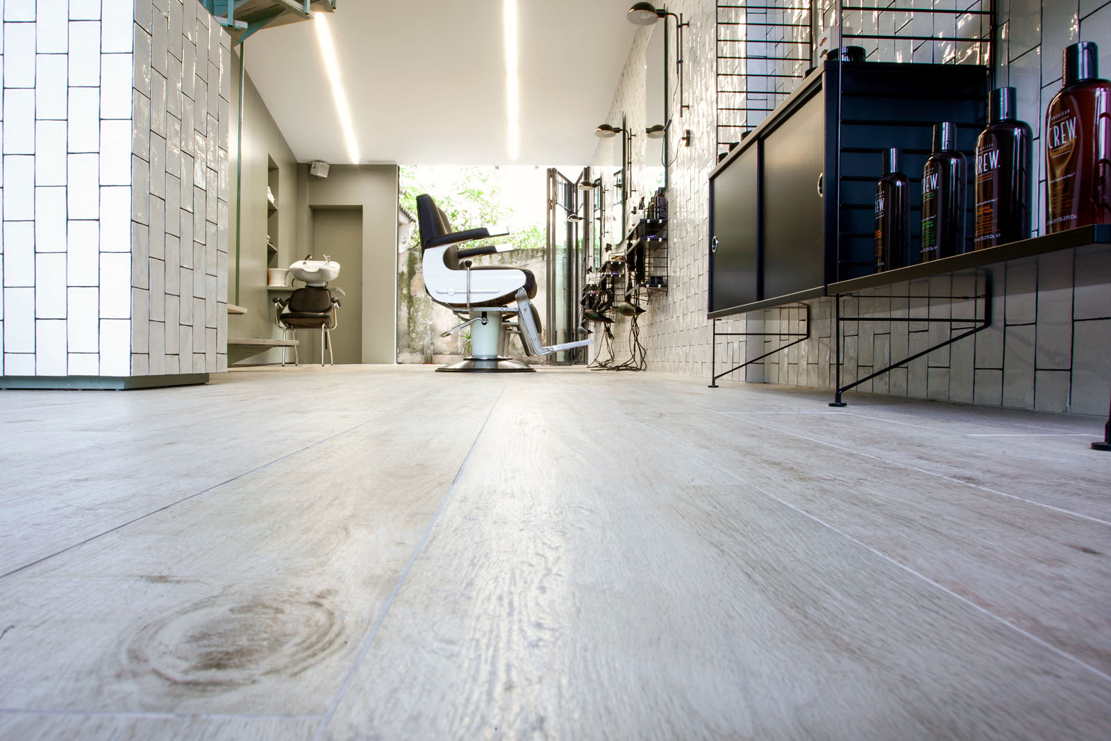 În Spania, la Logroño, barbershop-ul Àlvaro the barber, câștigător în 2014 al premiului „cel mai bun frizer din Spania” a fost restructurat de biroul David D Iriondo cu gresie cu aspect de lemn Treverkhome. Proiectul de restructurare a revăzut estetica vintage și industrială a tradiționalelor prăvălii din sec. XX, readaptând-o însă la un stil mai modern și contemporan. Gresia cu aspect de lemn Treverkhome Betulla, aleasă în formatele 15x120 și 20x120 cm, acoperă nu numai pardoseala frizeriei, dar și o curte mică exterioară, dând spațiului continuitate vizuală și lărgind vizual dimensiunile magazinului.