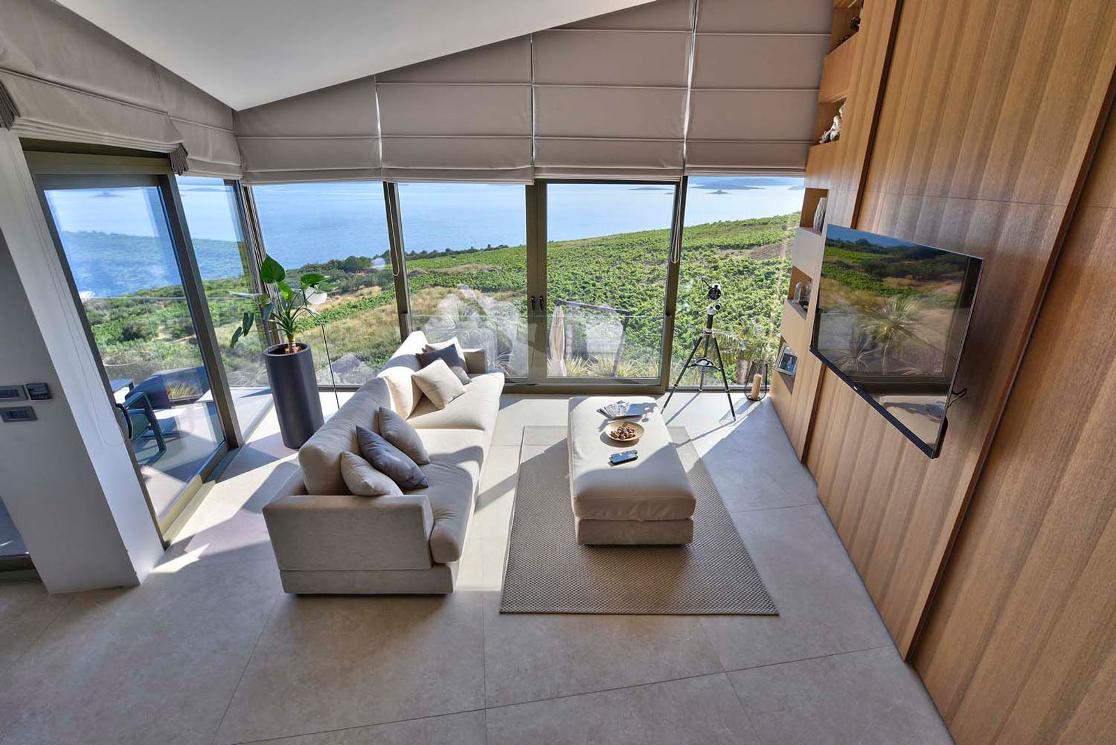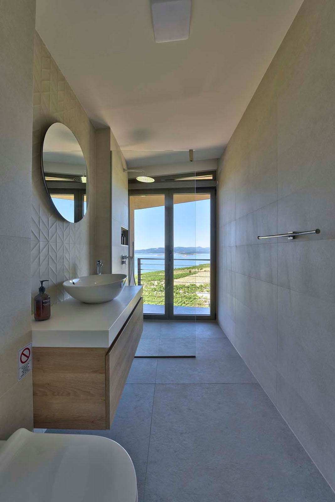 „Am lucrat mult la ideea de a le permite celor care vor vizita vila”, povestește designerul Klaudija Zubčić, „să trăiască o experiență unică, dar cu referire constantă la unicitatea locului (în momentul de față casa poate fi închiriată prin intermediul celor mai populare platforme de rezervare, NdR). Conceptul s-a dezvoltat în jurul dorinței de a avea spații inundate de lumină și „pure” precum natura care înconjoară casa. Peninsula Sabbioncello este cunoscută pentru conformația sa pe alocuri accidentată și stâncoasă. Această caracteristică m-a convins să lucrez cu materiale naturale pentru a personaliza toate suprafețele atâtor medii diferite: de la spațiul mare de locuit, în interior și în exterior, la numeroasele băi, de la sala de sport la bucătăria mare, până la crama privată.”