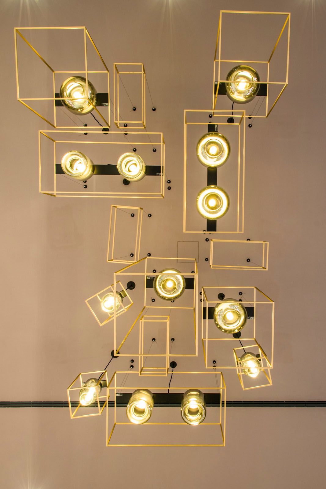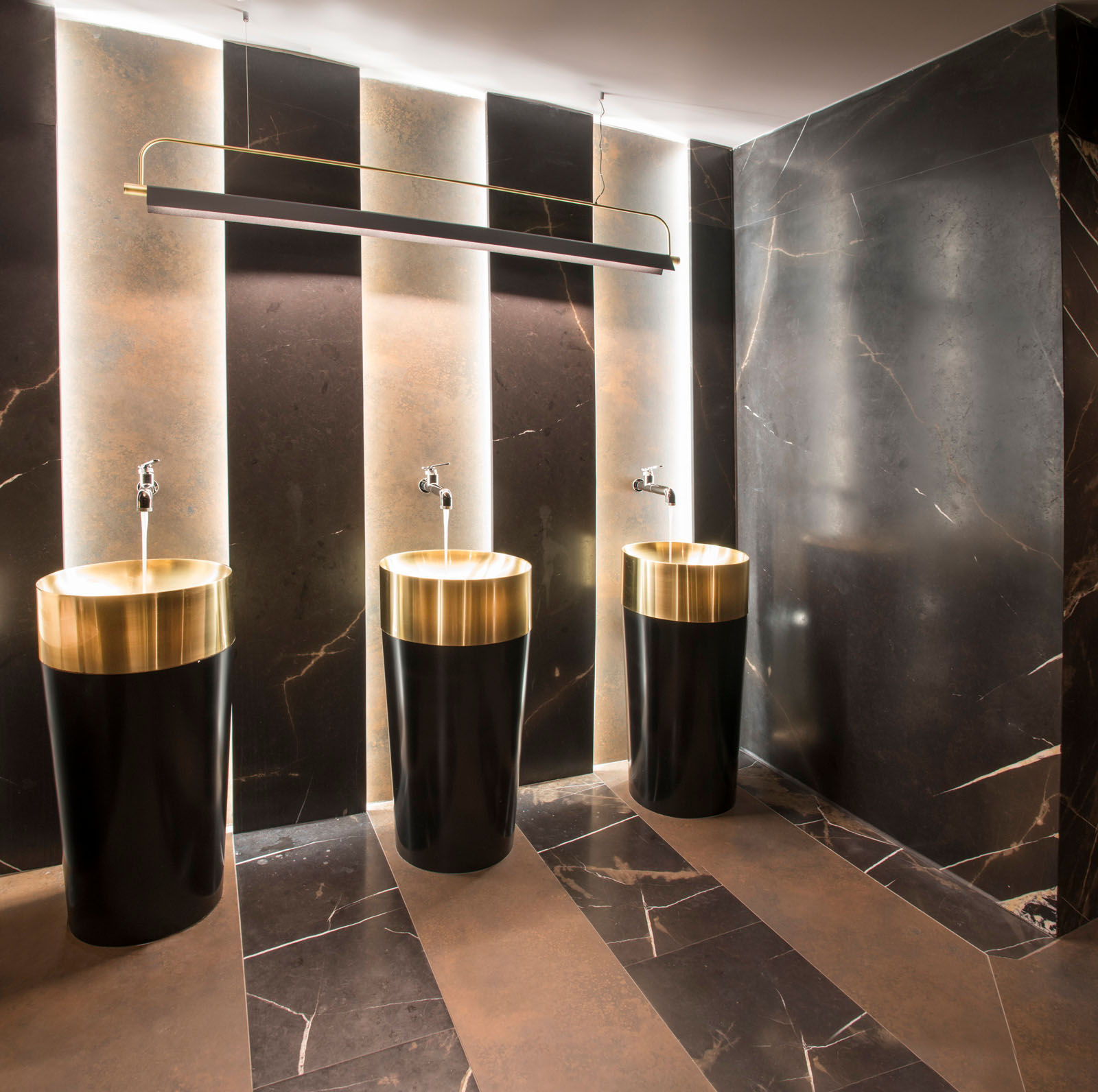 Materialul, ales în variantele Nero Marquinia și Calacatta, a fost tăiat ad-hoc permițând obținerea a nouăsprezece elemente de bază, care, asamblate, au dat naștere unui design geometric capabil să ofere unicitate și distincție suprafeței.