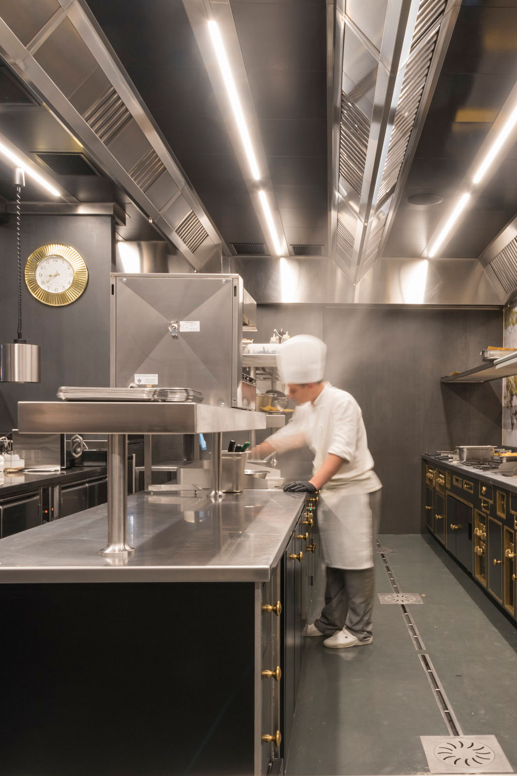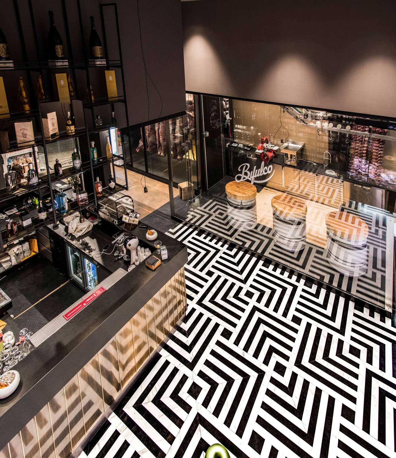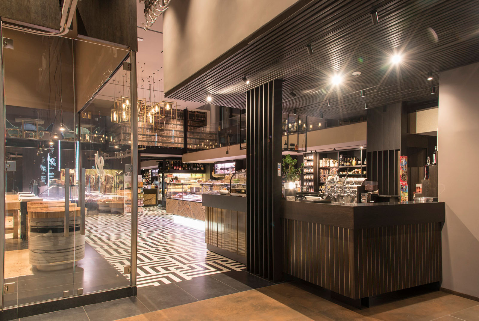 Parterul găzduiește măcelăria, căreia am dorit să-i oferim o caracteristică specifică unei adevărate bijuterii, inspirată clar din micile magazine cu produse din carne din nordul Europei, în timp ce la primul etaj există un magazin de sanvișuri gourmet.