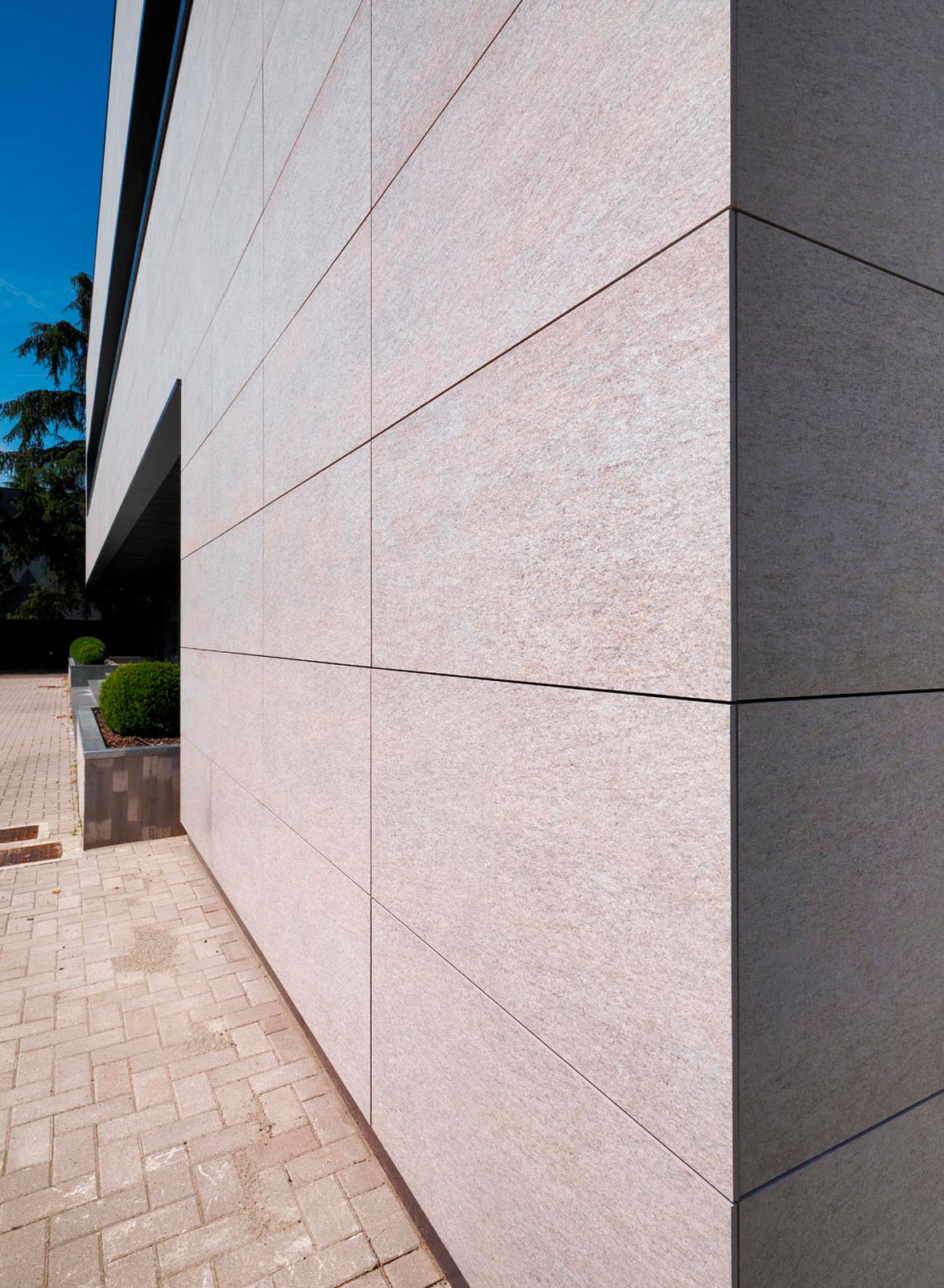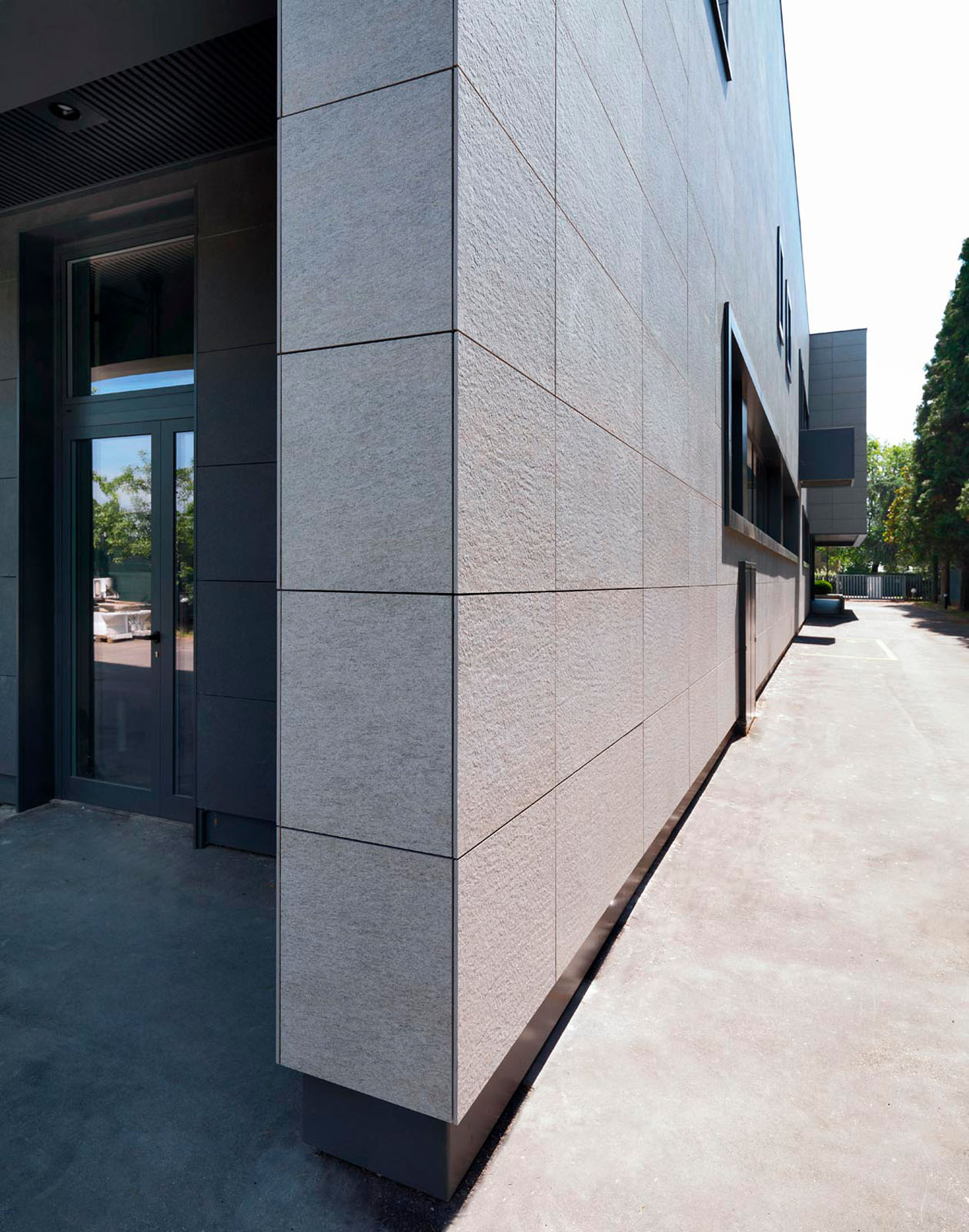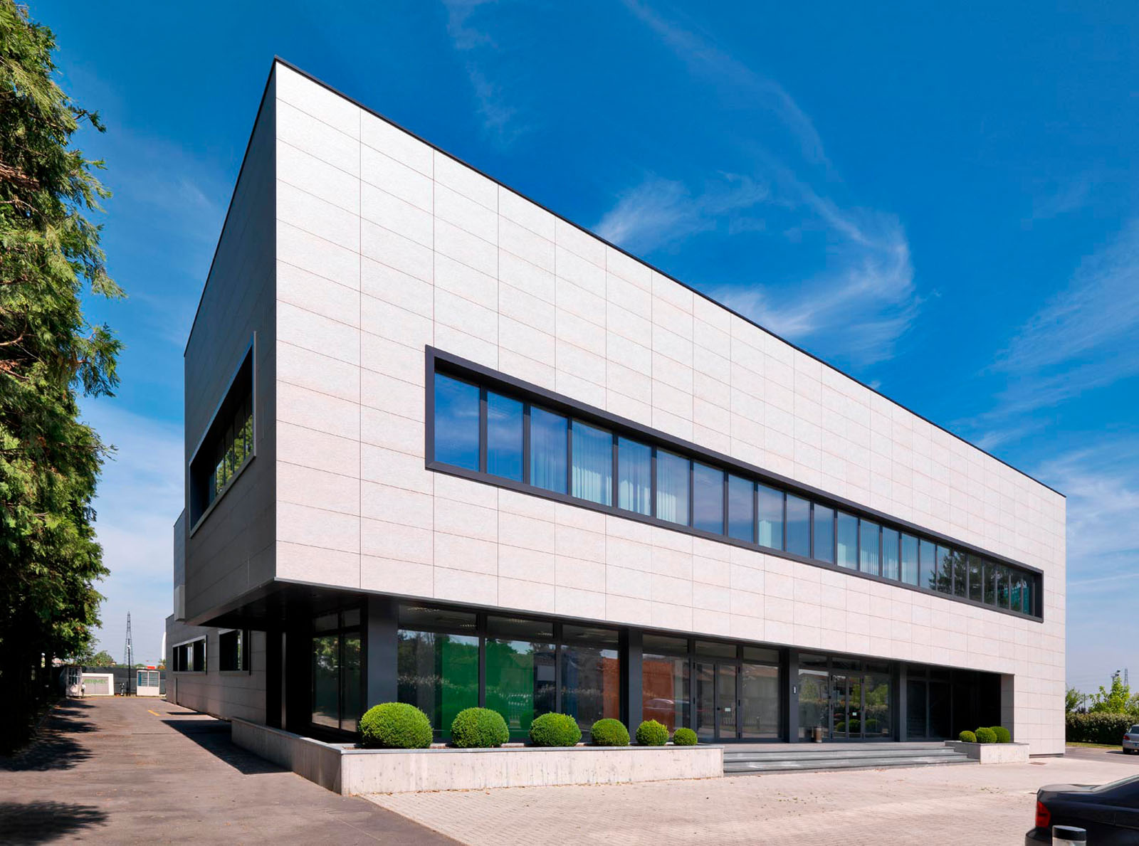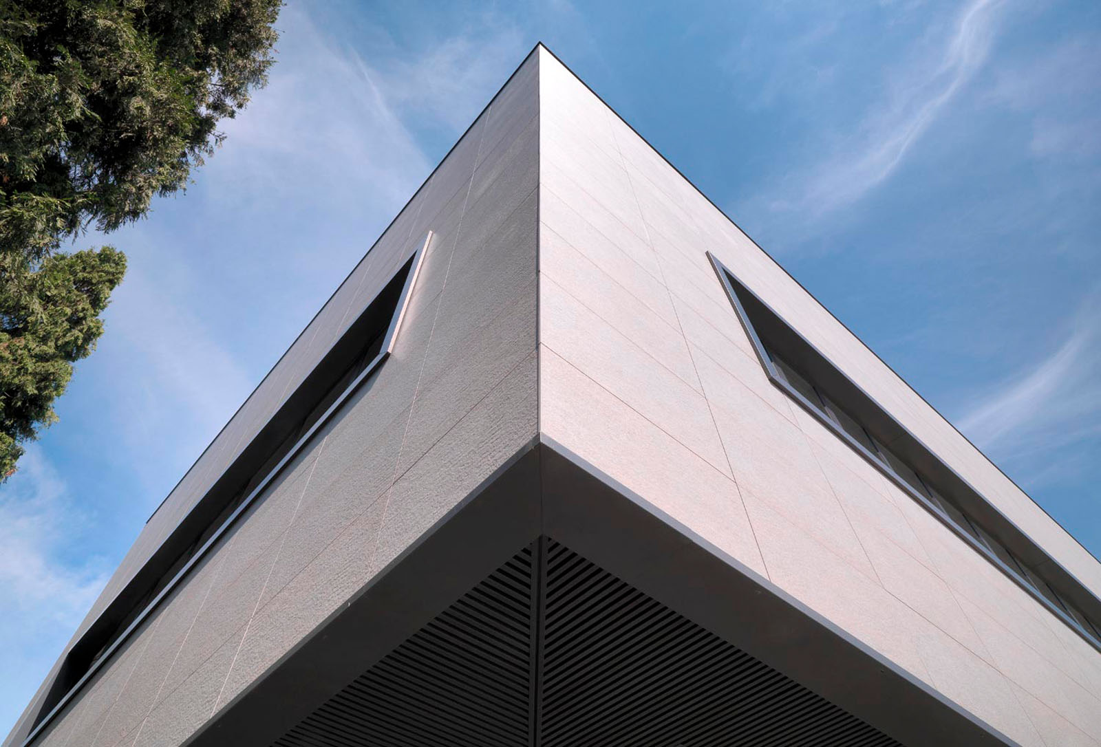 Fără a demola structura preexistentă, clădirii i-a fost dată o formă cu totul nouă, un raport volumetric mai esențial și mai curat, utilizând sistemul de perete ventilat Marazzi Engineering care a contribuit la realizarea a două importante obiective, reabilitarea energetică, obținută prin rezolvarea gravelor defecte de izolație prezente în vechea hală, și o nouă recognoscibilă calitate arhitectonică a clădirii.