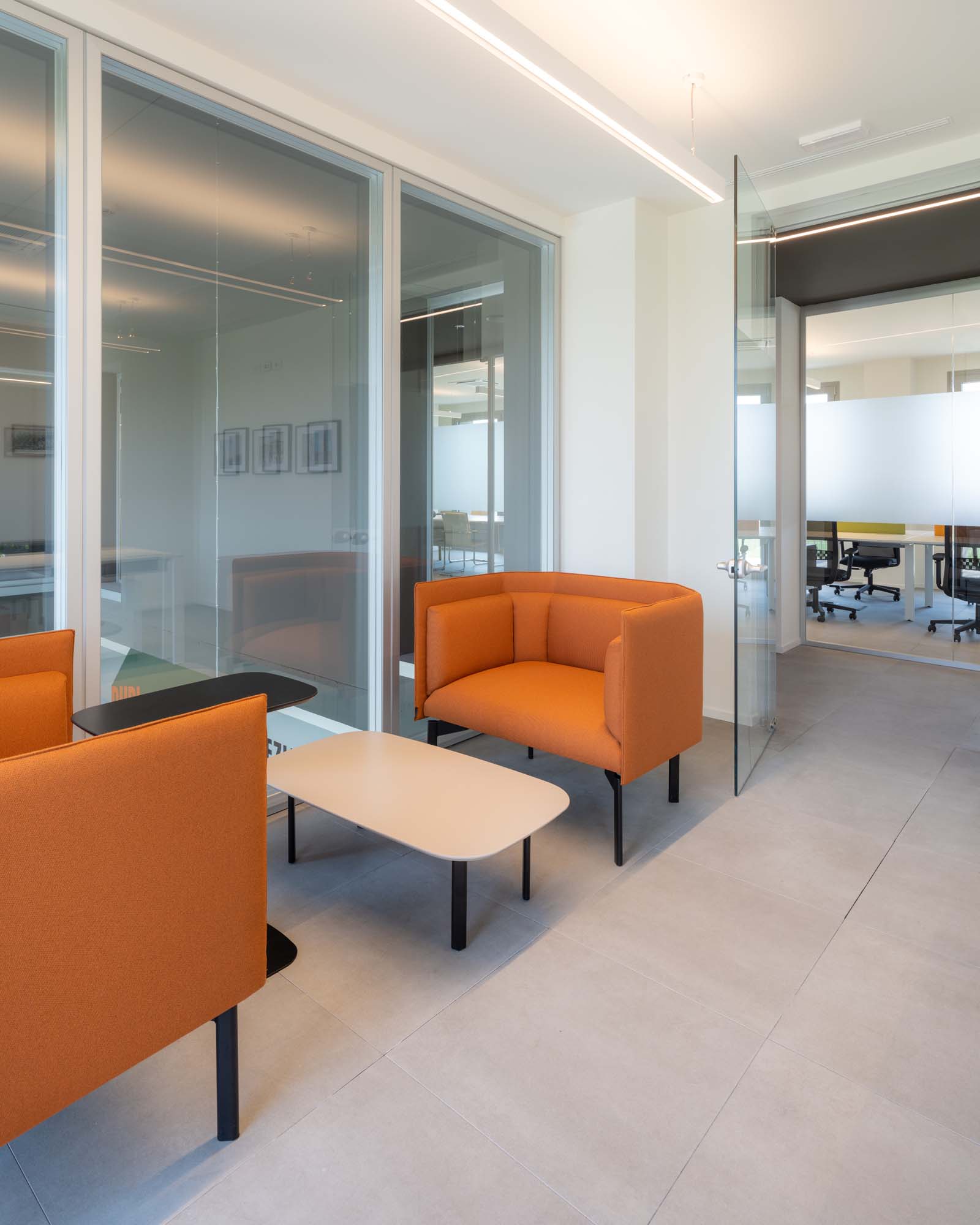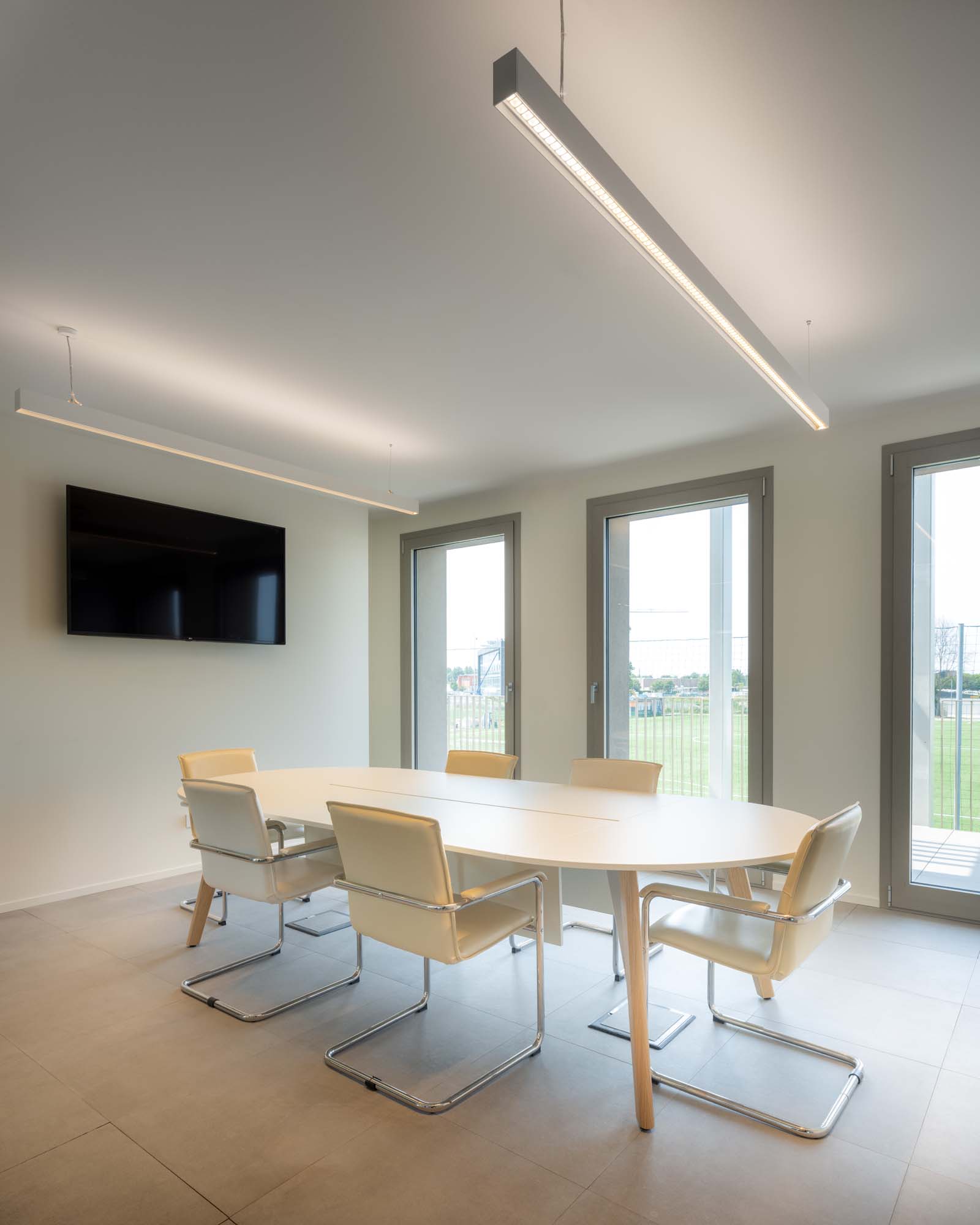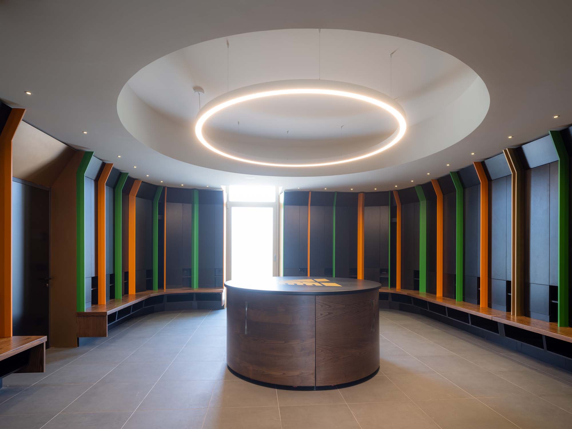 În spațiile interioare ale clădirii, de la vestiare până la birouri și grupuri sanitare, gresia porțelanată Cementum este alegerea principală, în diferite culori, de la cele mai deschise Ash și Nickel până la cele mai închise Carbon, formate și suprafețe pentru toate pardoselile și placările din incinta sălii de fotbal. Un material care nu numai că conferă spațiilor o estetică contemporană, dar garantează și performanțe ridicate, produs cu materiale reciclate și cu cea mai avansată tehnologie premium Marazzi, adaptându-se perfect la nevoile unui mediu sportiv dinamic. Un material care contribuie, de asemenea, la obținerea creditelor LEED, datorită certificărilor sale.