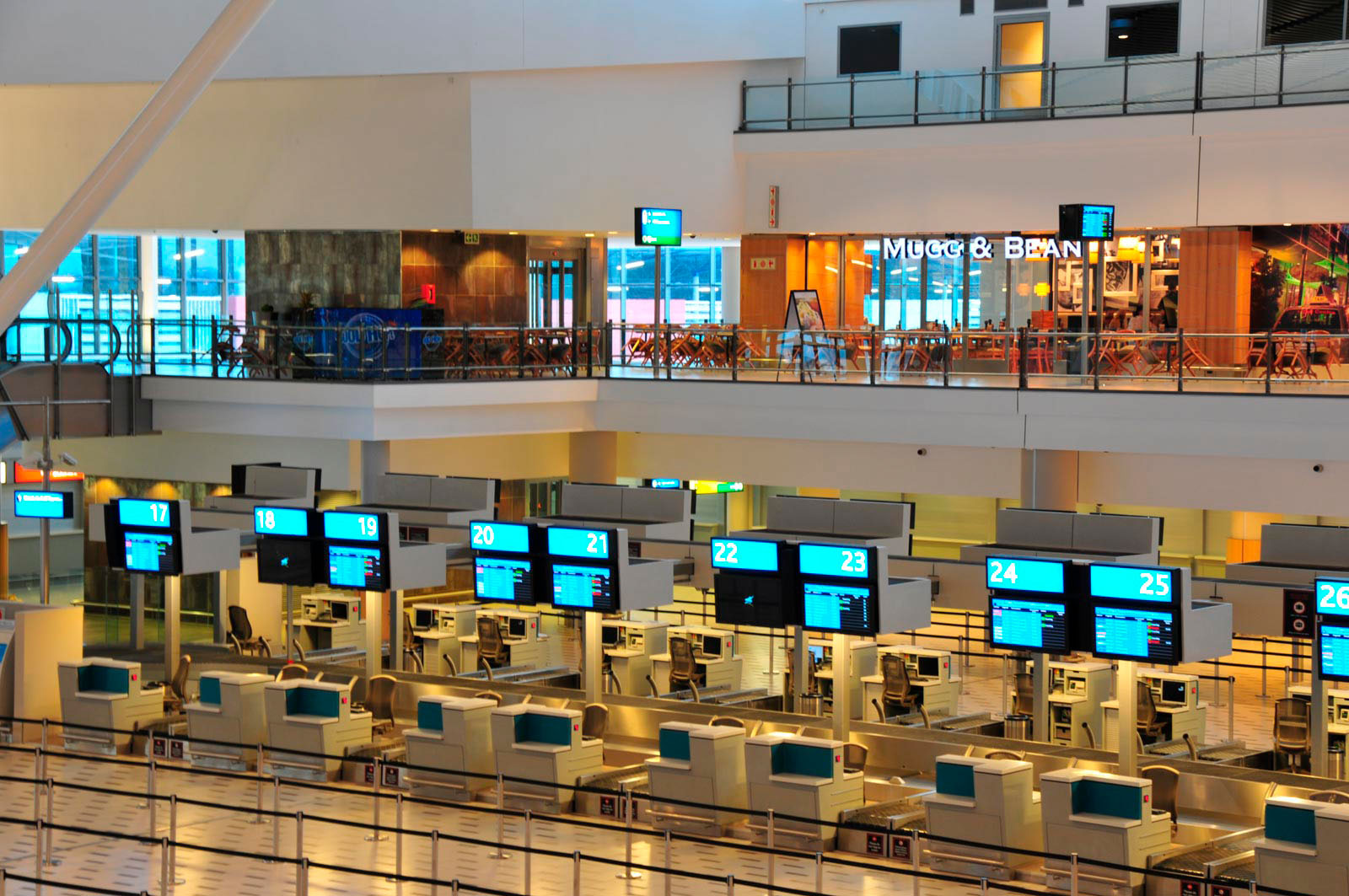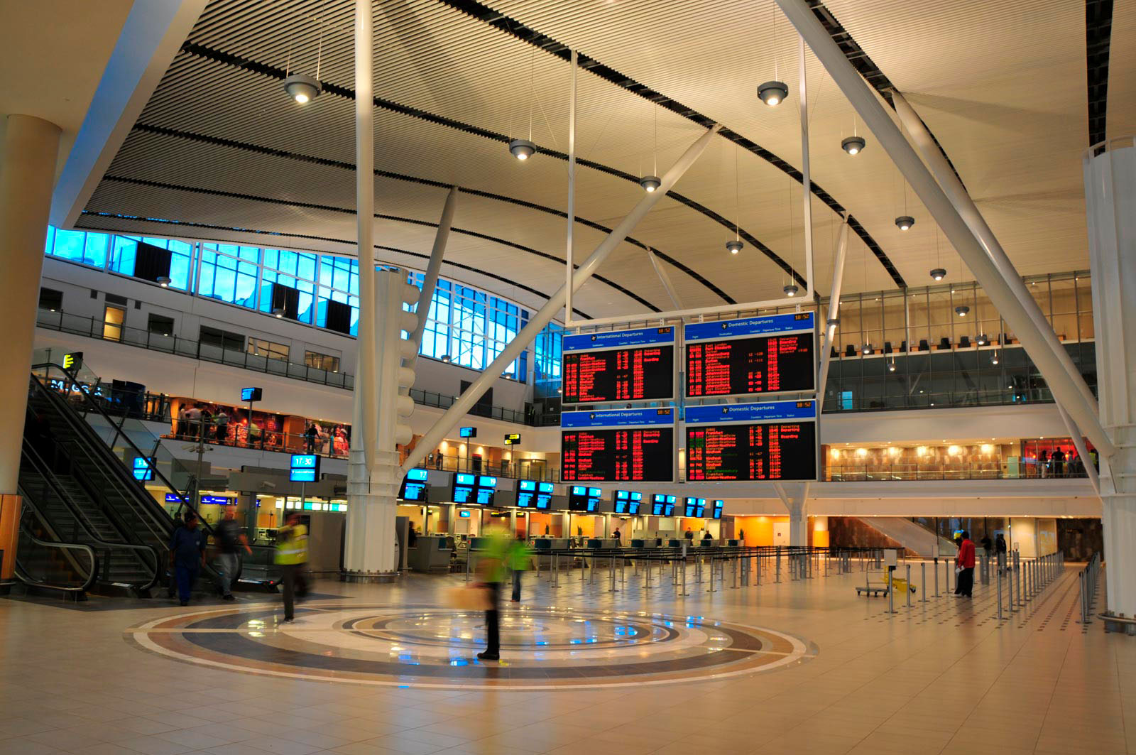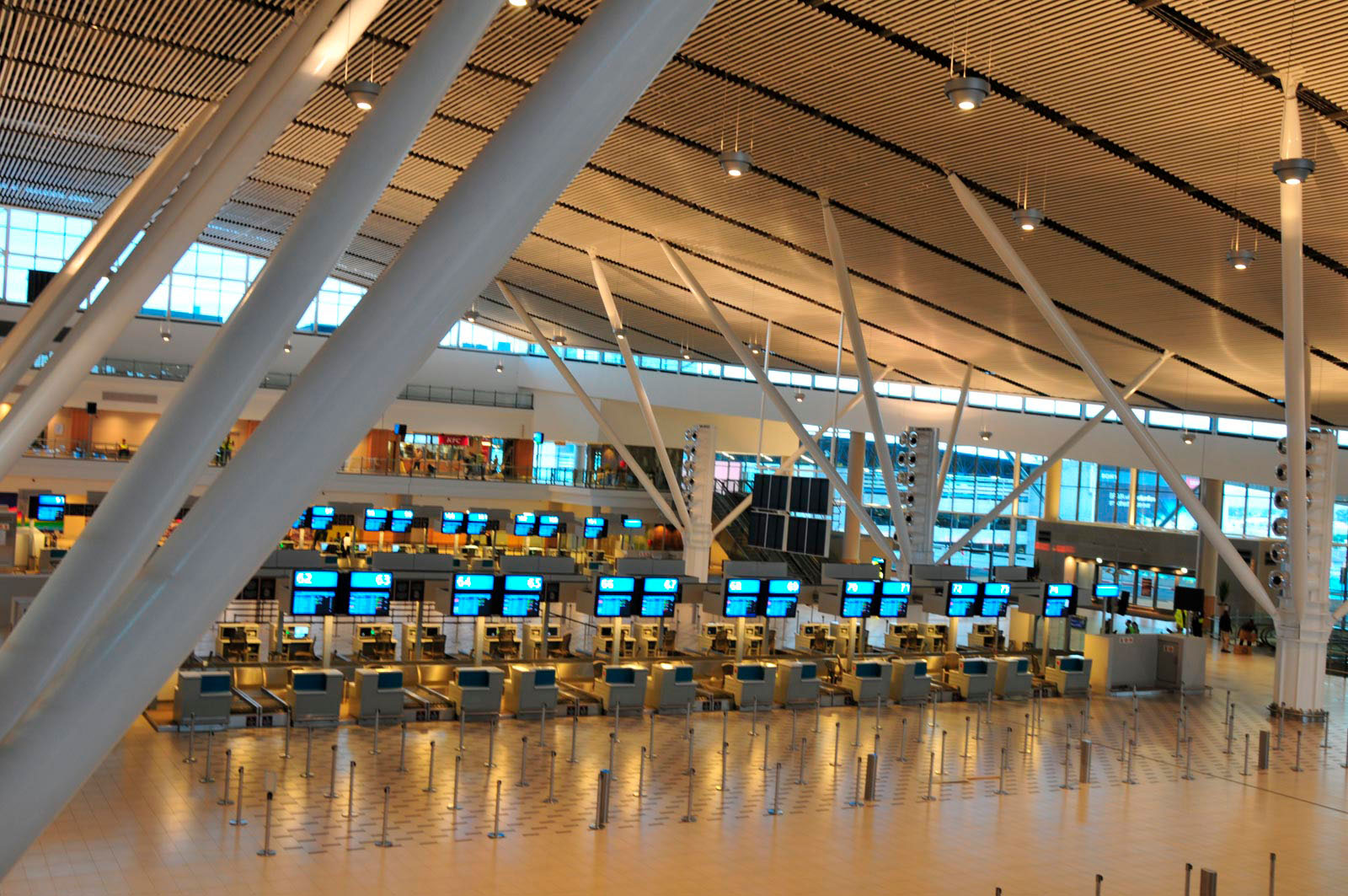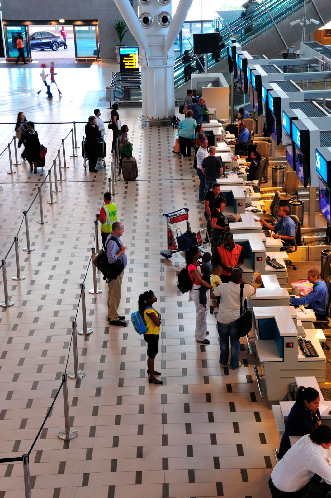 Inaugurat complet cu o lună mai devreme de Mondiale, marele paralelipiped cu sticlă a conectat cele două aripi preexistente dedicate traficului local și internațional, în parte reabilitate, și constituie motorul terminalului, datorită eficientului sistem centralizat de dirijare a fluxului de pasageri și bagaje care ocupă întreaga sală a primului etaj. Acoperit de un amplu acoperiș curbat, tăiat în fața intrării de o copertină cu două aripi, clădirea constituie un landmark urban cu personalitate decisă dar nu invazivă. Aproape o anticipare a interioarelor sale elegante și luminoase, marcate la maximum de confort și unificate vizual de nu mai puțin de 40.000 de mp de pardoseală din gresie porțelanată a seriei GM de la Marazzi, cerută în mod special de constructori care doreau că pună în valoare proiectul cu ceramici valoroase cu design Made in Italy. Suprafața ușor structurată a gresiei evocă țesătura pietrei și satisface înaltele cerințe de rezistență la uzură și la alunecare indispensabile într-un loc cu trafic intens care va primi 15 milioane de pasageri pe an până în 2015.