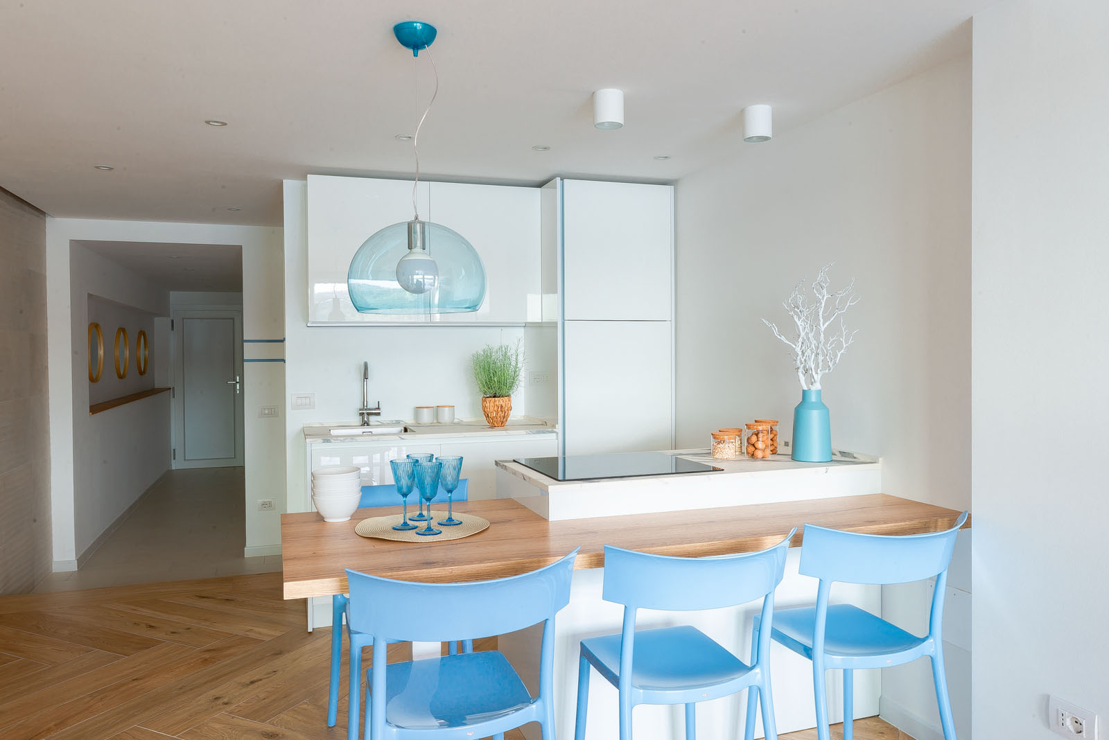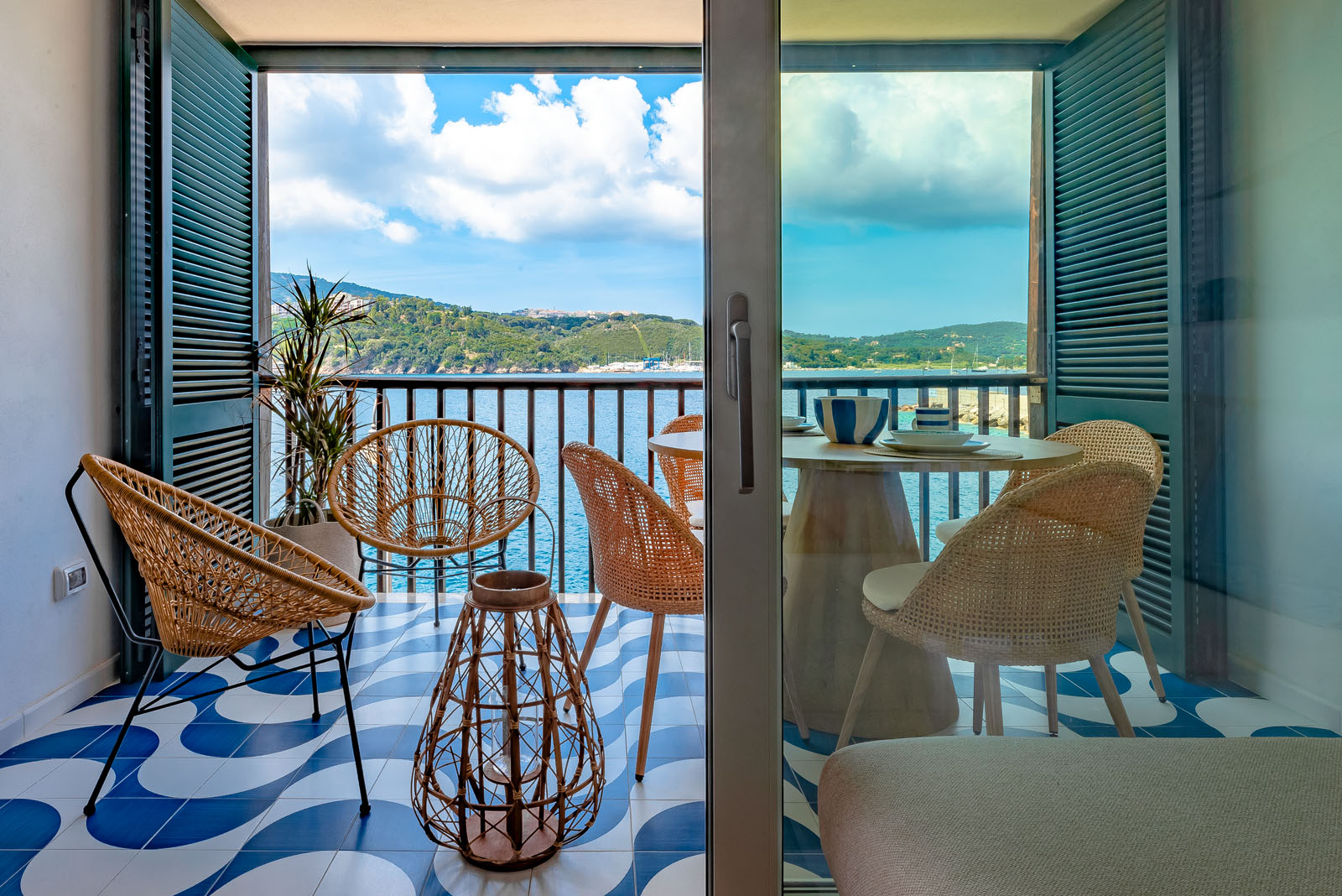 Micul apartament cu vedere la mare din Insula Elba, în stațiunea turistică Porto Azzurro, a fost complet renovat, scoțând în evidență natura sa maritimă. Este o construcție contemporană în stil mediteraneean, în care priveliștea uluitoare asupra mării a fost o mare inspirație pentru arhitectul Luca D’Errico, care s-a ocupat de design.