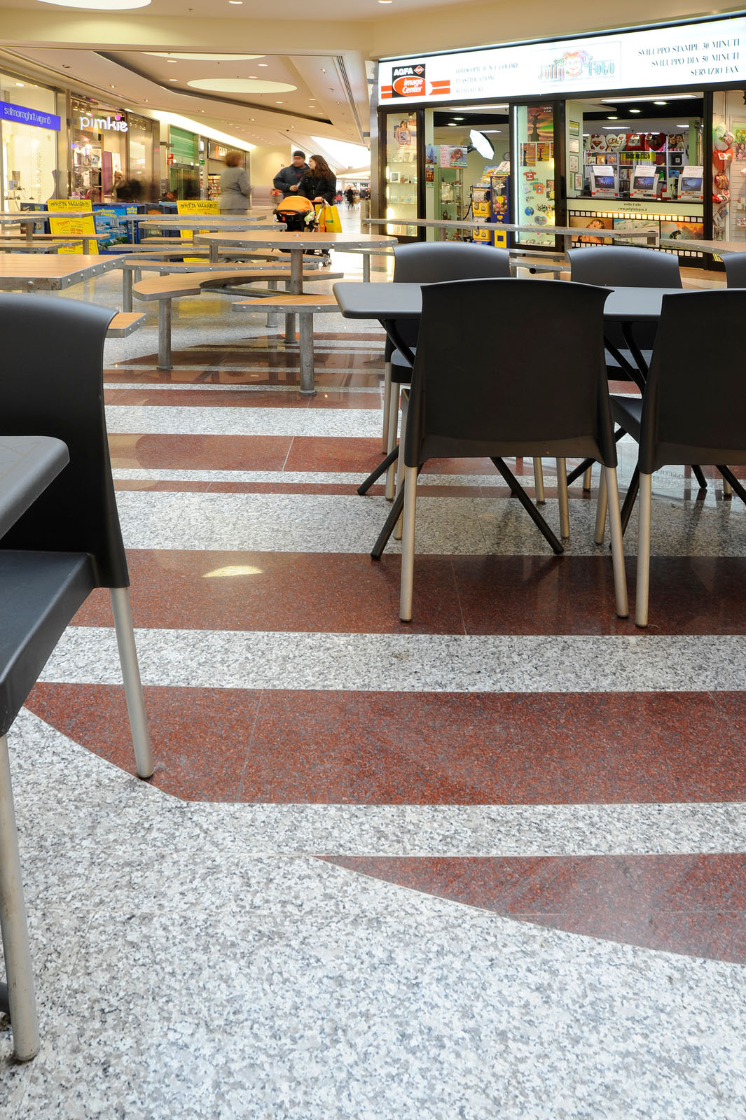 O extindere a unui important centru comercial nu departe de nodul strategic al centurii ocolitoare Milano se prezintă ca o intervenție competentă, atentă la mediu și la raportul cu teritoriu, mai ales datorită la acoperișul verde și la rafinatele soluții concepute pentru iluminarea naturală. Un puternic conținut de inovație arată și amenajarea spațiilor de vânzare, având alături o elegantă galerie cu o înălțime neobișnuită care găzduiește 40 de magazine ale mărci internaționale. Pentru pardoseala culoarului central al mall-ului proiectanții – două studii prestigioase studii la Londra și la Milano – au ales un covor subțire și elegant de piatră naturală, care întărește identitatea noului centru și face mai fină și mai plăcută lumina zenitală diurnă. Marazzi Engineering a însoțit proiectul pentru pardoseala noii galerii cu coridoarele de serviciu, cu băile și cu mall-ul preexistent asistând beneficiarii și proiectanții în alegerea unei ample game de granituri și de marmure, furnizând materialele și elaborând proiectul executiv, care a necesitat o importantă implicare dată fiind complexitatea spațiilor arhitectonice și a desenului de obținut.