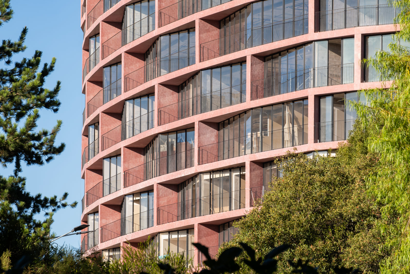 Terase interioare verzi mari frâng forma compactă a turnului, având vedere spre parcul amenajat cu o suprafață de peste 26 de hectare pe care se află clădirea, garantând o priveliște privilegiată pentru toți locuitorii.