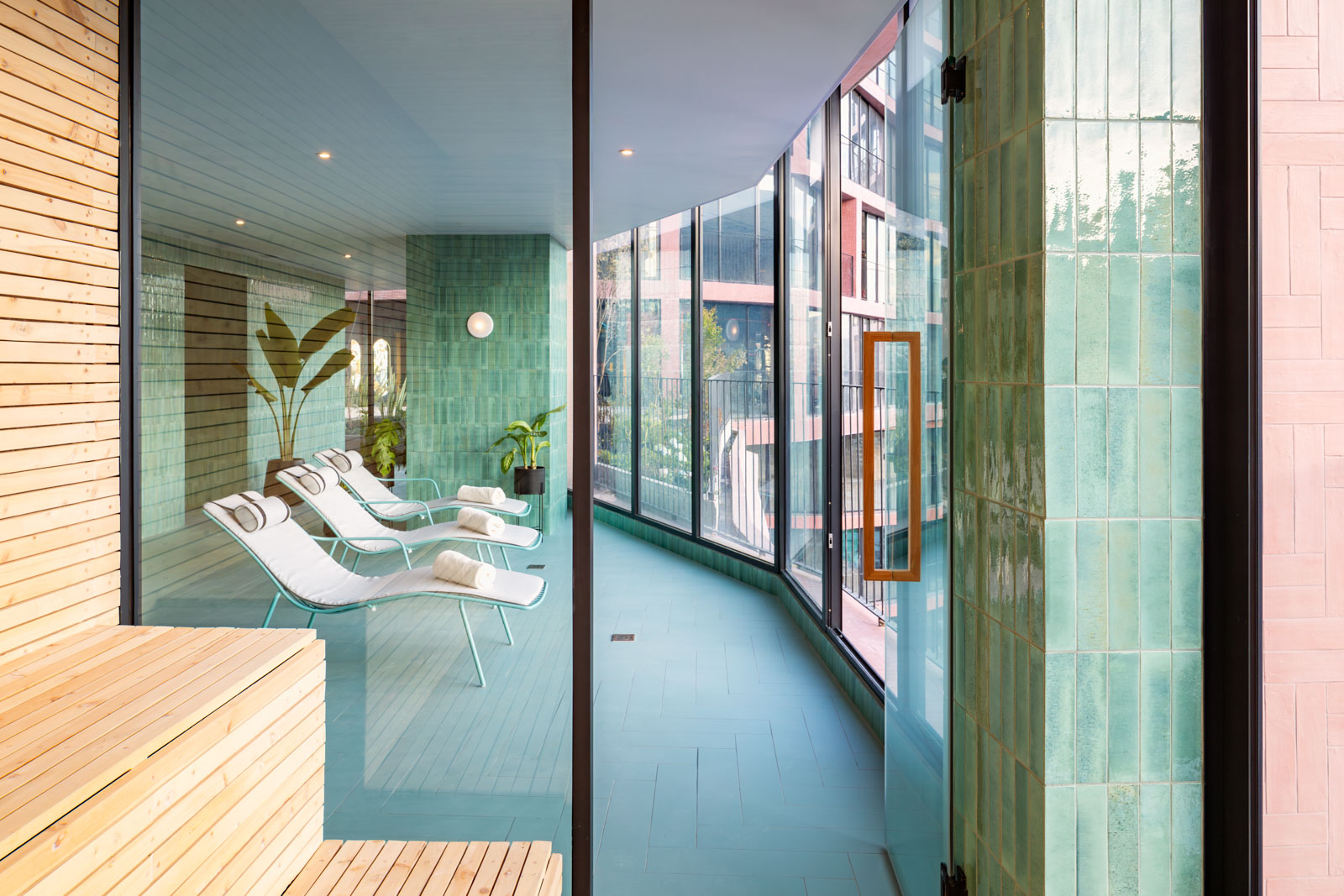 O concesie ulterioară făcută bunăstării este zona de spa din interiorul turnului rezidențial, acoperită cu plăcuțe de gresie porțelanată super lucioasă tip majolică din seria Crogiolo Lume de culoare Turquoise. Și în acest caz culoarea strălucitoare și estetica „lucrat manual” revin pentru a vorbi despre tradiția, chiar și locală, a ceramicii și despre culorile strălucitoare ale caselor istorice ecuadoriene.
