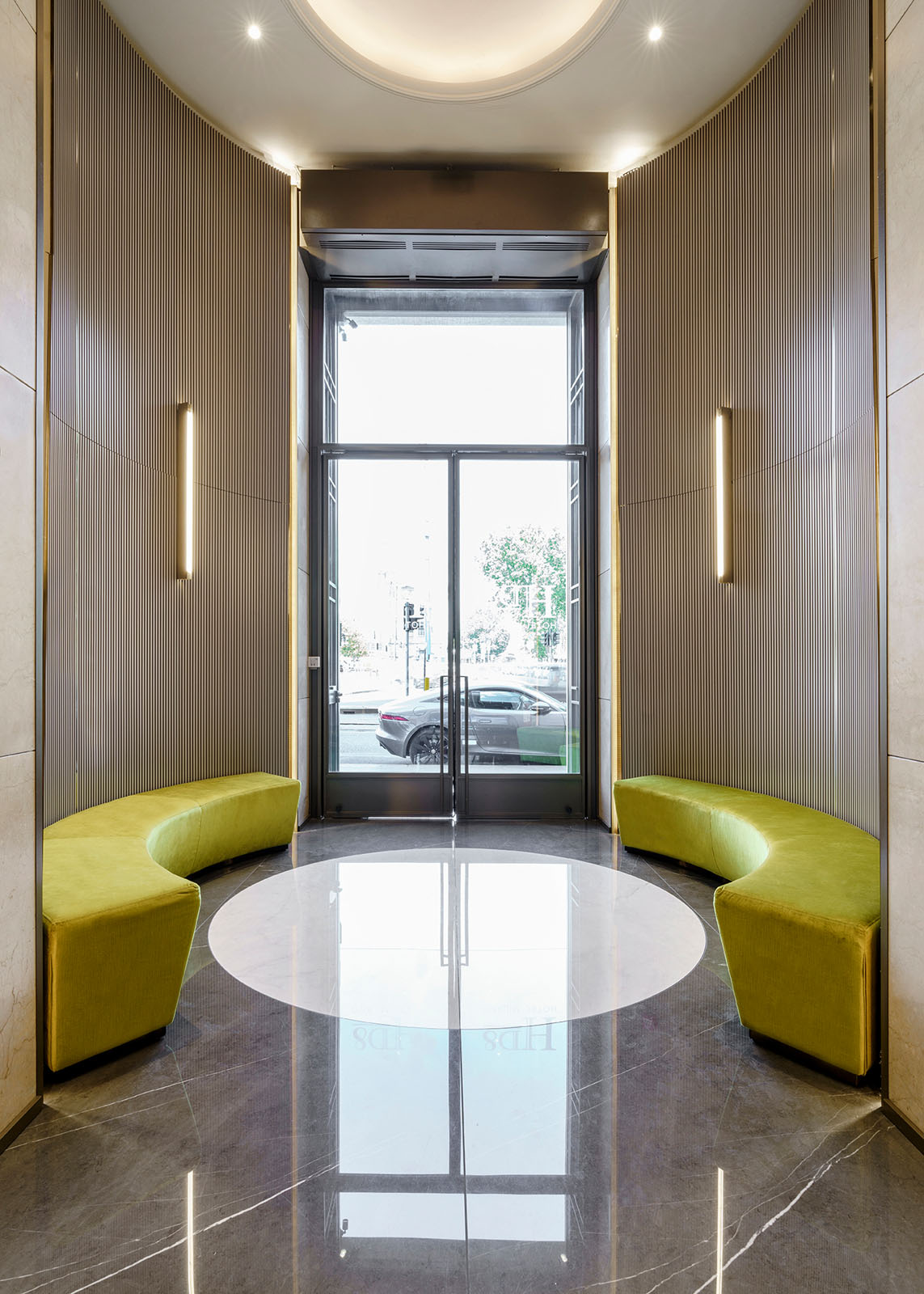 „Acesta fost un proiect complet de restyling al unui hotel din Milano, HD8, situat într-o zonă strategică pentru sectorul ospitalității, în zona Gării Centrale din Milano. De câțiva ani, ne ocupăm din ce în ce mai mult de proiecte dedicate hotelurilor, pe lângă cele din sectorul rezidențial și cel al comerțului cu amănuntul. Acest hotel ne-a permis să dezvoltăm un concept de design interior elegant și funcțional, axat, din punct de vedere stilistic pe sursele de inspirație raționaliste ale arhitecturii italiene din anii 20 și 30 ai secolului trecut. Ceramica Marazzi ne-a permis să realizăm placări cu materiale și culori prețioase, ce au definit întregul design al încăperilor. O contribuție fundamentală, ce a contribuit la realizarea de spații elegante și prețioase și mai ales la diversificarea gamei de culori și materiale folosite în aproape toate încăperile”, explică arhitectul Marco Guido Savorelli.