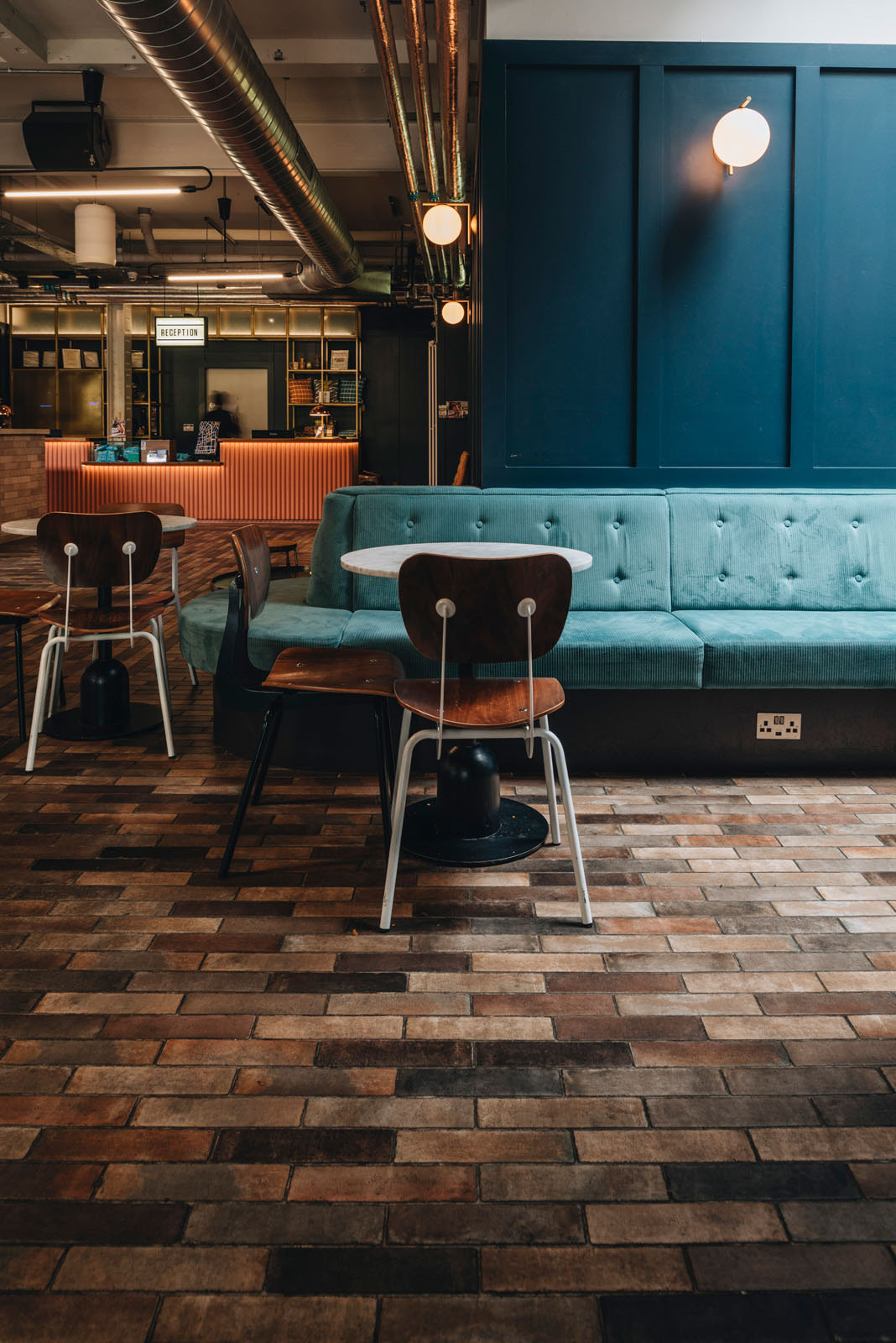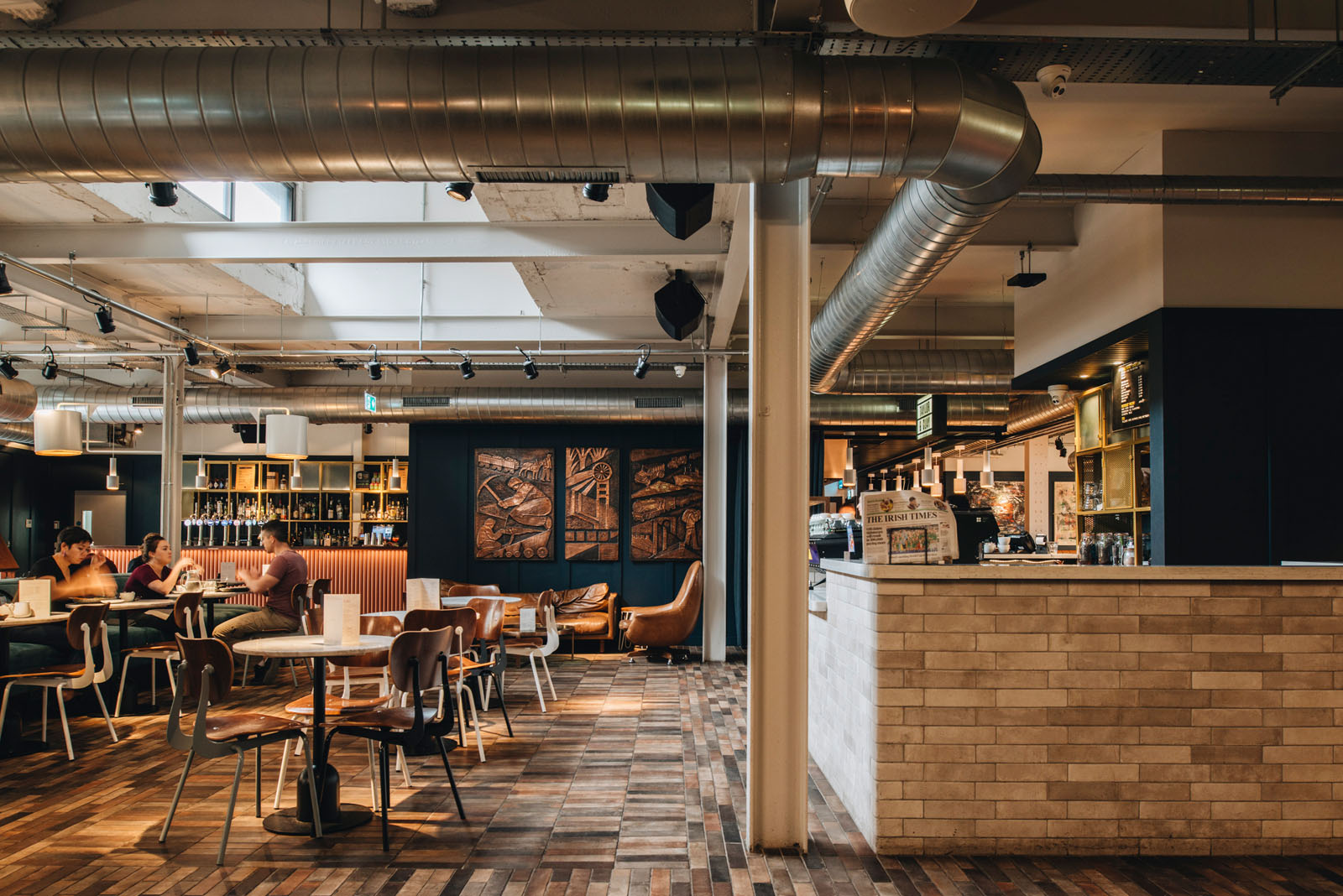 Protagonista proiectului este cărămida la vedere, un material la modă și tipic arhitecturii irlandeze, care conferă încăperilor un caracter industrial distinct. În interior, pentru placarea pardoselii și a unei părți din pereți cu cărămidă mică, a fost aleasă gresia Terramix de la Marazzi, cu tonalitățile sale în nuanța teracotei, în variantele Marrone și Bianco.