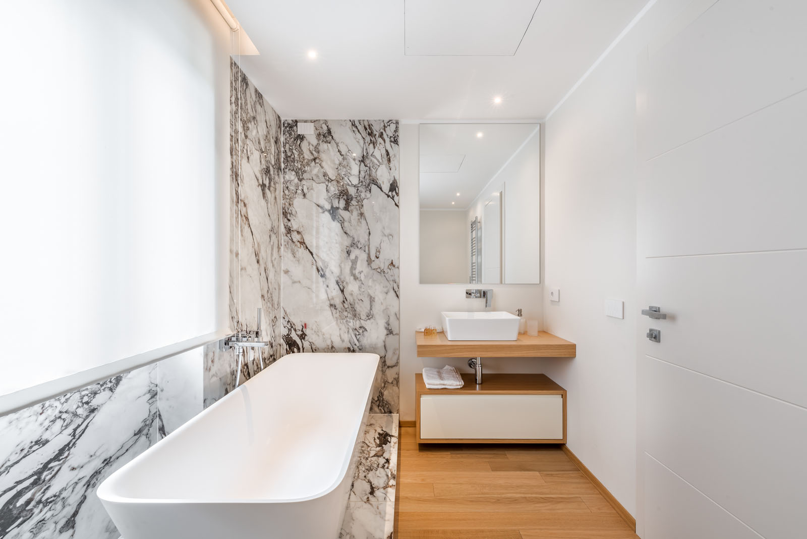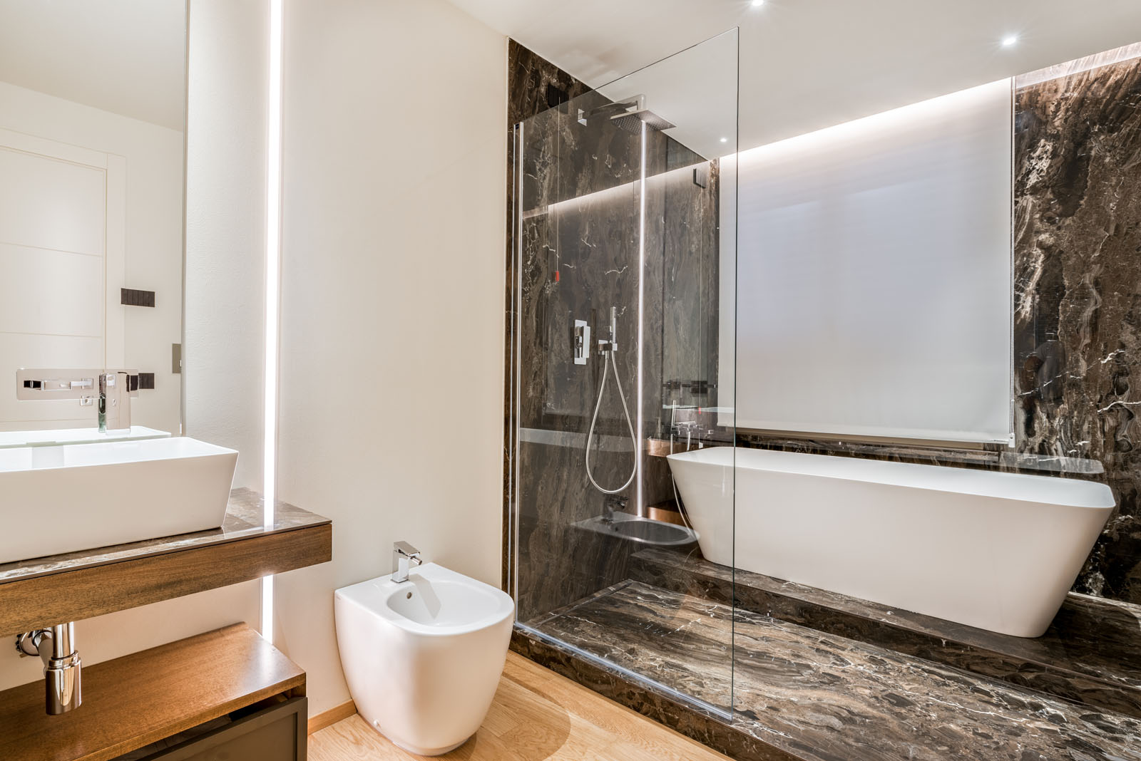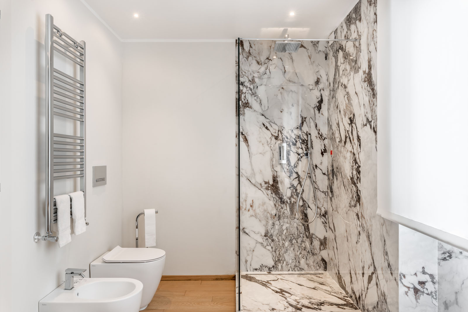 Restaurante, ospitalitate și timp liberÎn regiunea Versilia, la Forte dei Marmi, o bijuterie a Toscanei și o prestigioasă stațiune balneară, arhitectul Michele Vitaloni de la Charmitaliastudio, s-a ocupat de întregul proiect de reamenajare a Hotelului Miramonti, înconjurat de vegetație luxuriantă. Stilul și mobilierul contemporane marchează spațiile ample și luminoase, cu nuanțe naturale, care variază de la bej la gri. În cadrul băilor și în dormitoare, diferite între ele, situate la parter, la primul și la al doilea etaj, numit turnuleț, au fost utilizate plăcile din gresie porțelanată din colecția Grande Marble Look de la Marazzi în formatul mare de 120x120 cm și de 120x240 cm cu grosime de 6 mm în culorile Frappuccino, Golden White și Capraia. Datorită tehnologiei de reproducere digitală, care recreează fidel nervurile, culorile și nuanțele marmurei naturale, în combinație cu excelente calități în ceea ce privește ușurința, ductilitatea și rezistența, acest produs permite proiectului să creeze mai multe compoziții pe pardoseală, alternând cu lemnul natural, pe perete sub formă de tablouri sau alte inserții, și sub formă de blaturi pentru lavoare. În cadrul proiectului, foarte interesantă este decontextualizarea materialelor Marazzi din utilizarea obișnuită de placări pentru pereți, care a devenit mai atractivă prin intermediul jocului cu diferite forme.