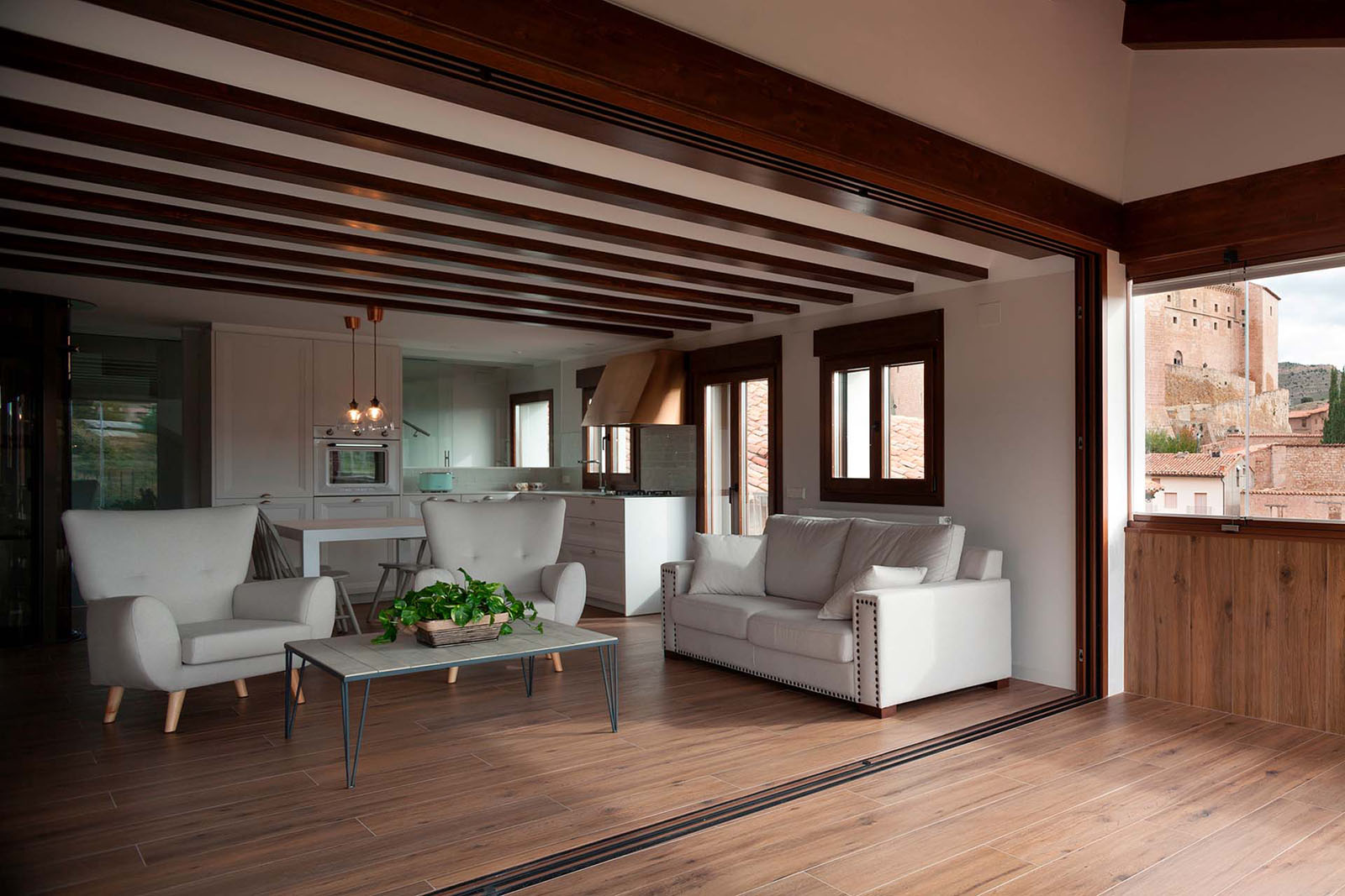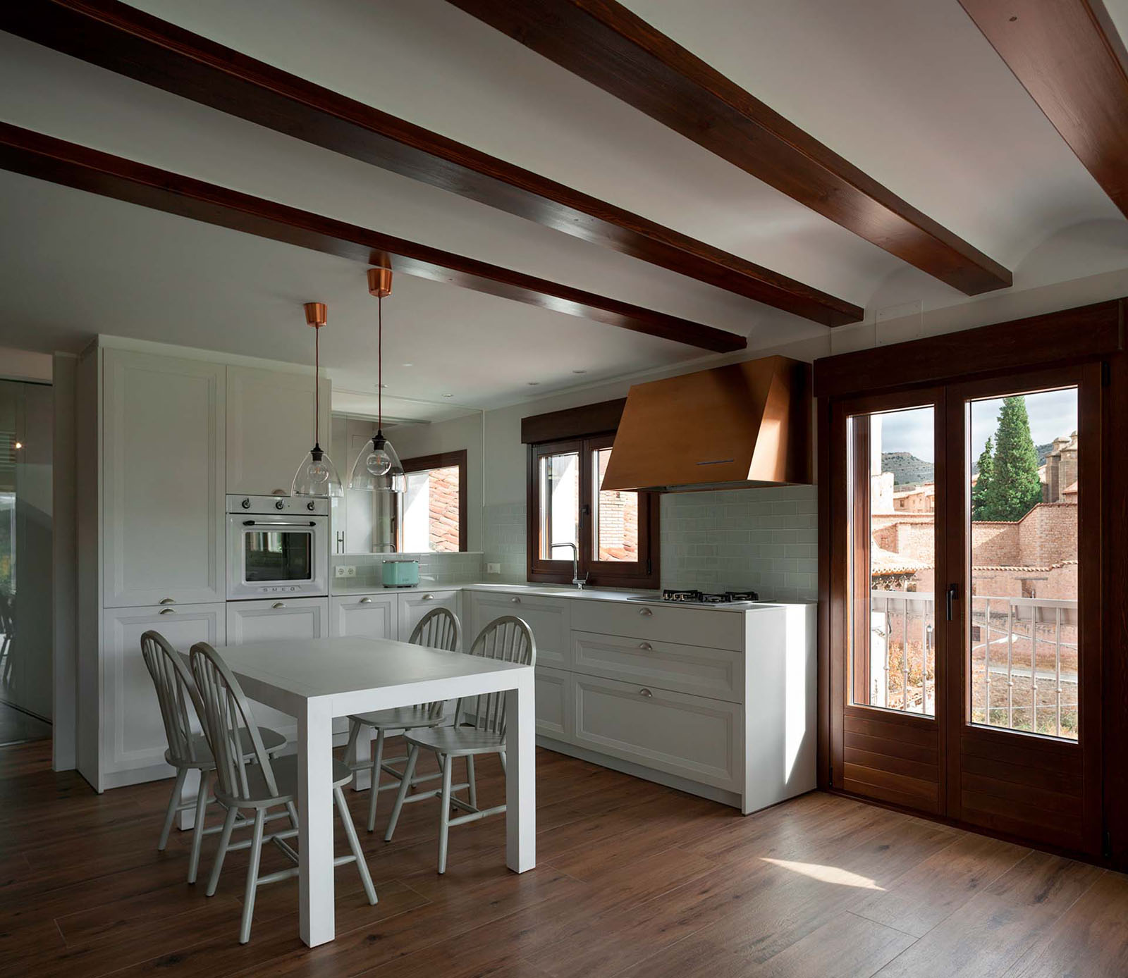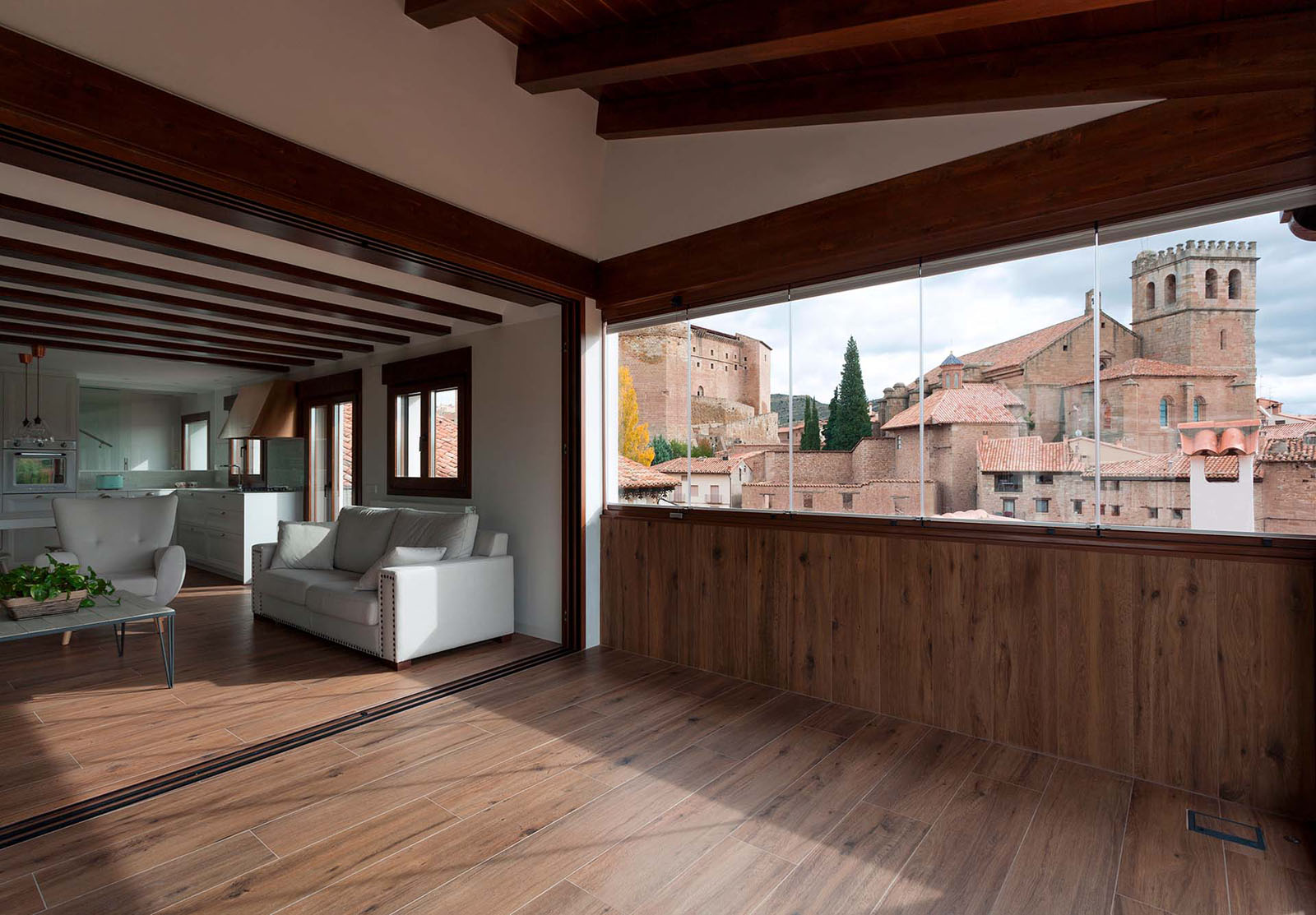 Proiectarea unei case într-o localitate istorică, unde timpul pare să se fi oprit. Această casă independentă cu patru etaje este situată în mica localitate Mora de Rubielos, în regiunea Aragon din nord-estul Spaniei, cunoscută pentru impunătorul castel medieval în stil gotic ce datează din secolul al XIV-lea. Realizată după un proiect semnat de Raul Garcia, un arhitect cu biroul în Valencia, casa se află lângă această fortăreață și, datorită deschiderilor mari ale ferestrelor proiectate ad hoc, oferă o priveliște unică: dintr-o latură spre castel și, din cealaltă, spre o livadă.
