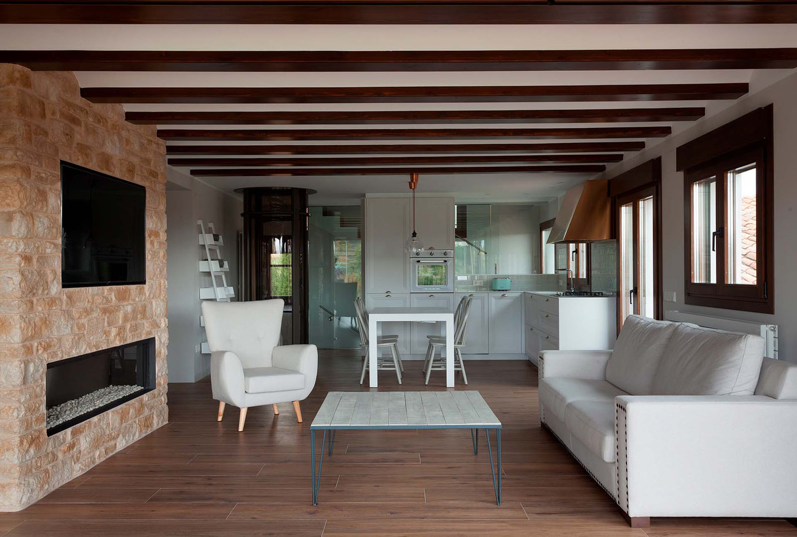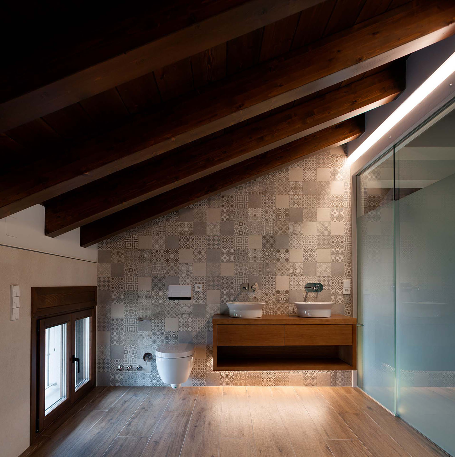 Casa a fost integral placată cu gresie porțelanată din colecția Treverkhome în format 30x120 cm și în nuanța caldă Castagno care, cu nervurile sale imperfecte caracteristice, conferă continuitate tuturor mediilor domestice. „Pe lângă aspectul estetic, gresia are două avantaje fundamentale: este durabilă și ușor de întreținut”, afirmă arhitectul Raul Garcia, adăugând că „versatilitatea gresiei ne-a permis să o utilizăm în toate încăperile casei. Ca arhitect, sunt mulțumit de calitatea înaltă a produsului și de numeroasele posibilități de alegere, precum și de performanțele tehnice ale materialului”.