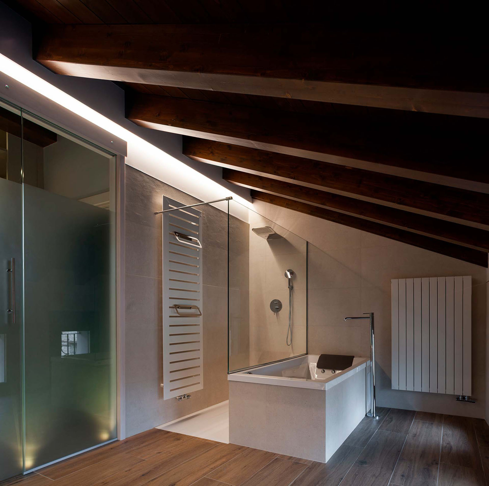 Gresie cu aspect de lemn, piatră naturală, plăci albe, grinzi la vedere și sticlă transparentă: câteva elemente simple ce caracterizează interioarele cu mobilier minimalist și liniar, cu soluții care-i conferă un aspect rafinat și atenție la detalii.