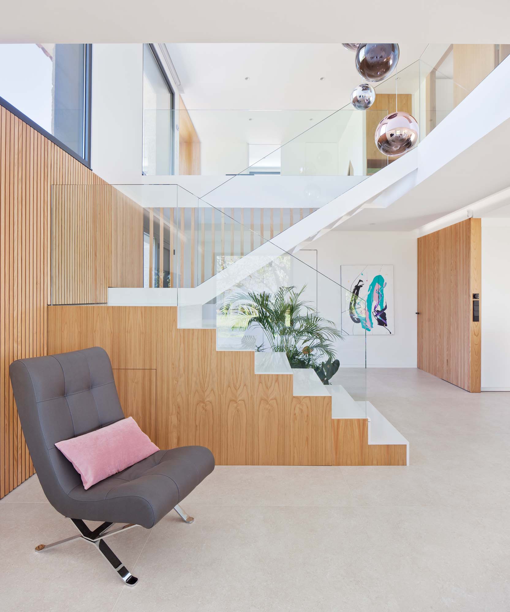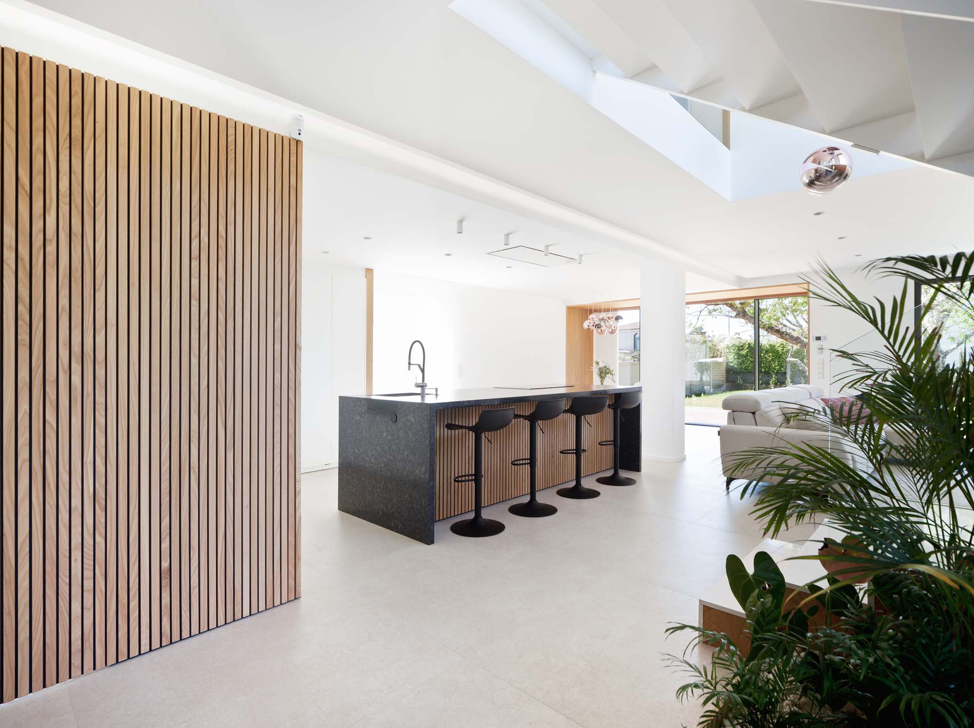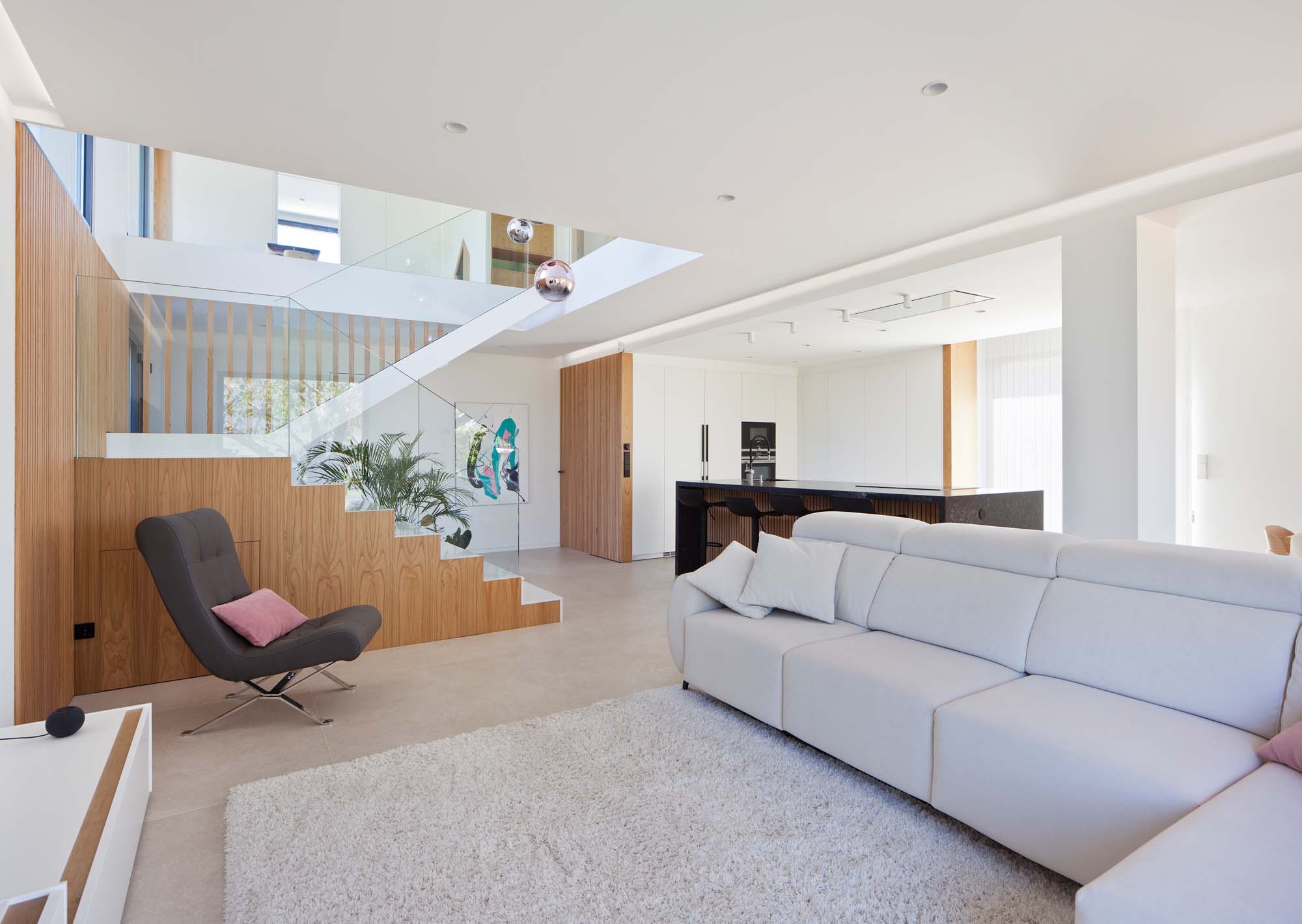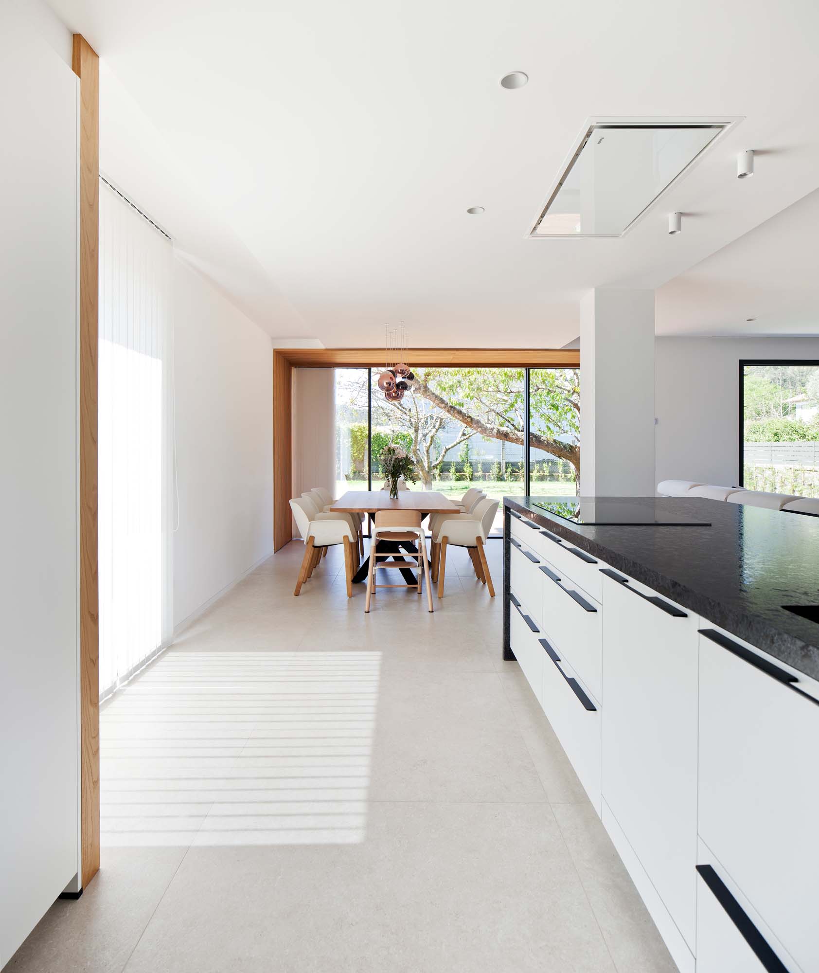 RezidențialLuminozitate și continuitate spațială într-o casă unifamilială renovată cu tonuri deschise.