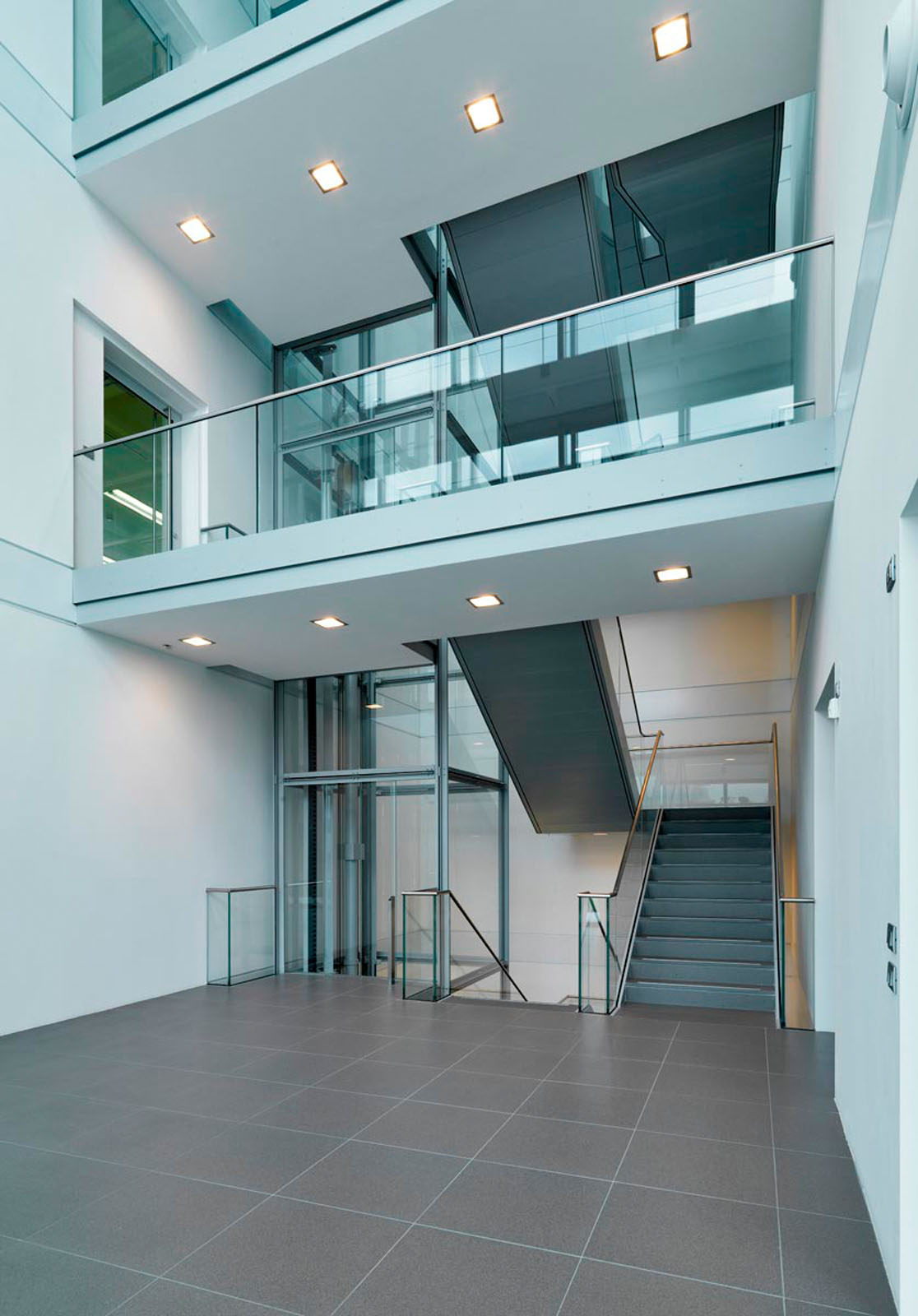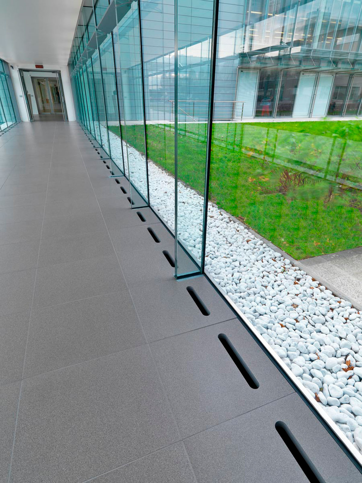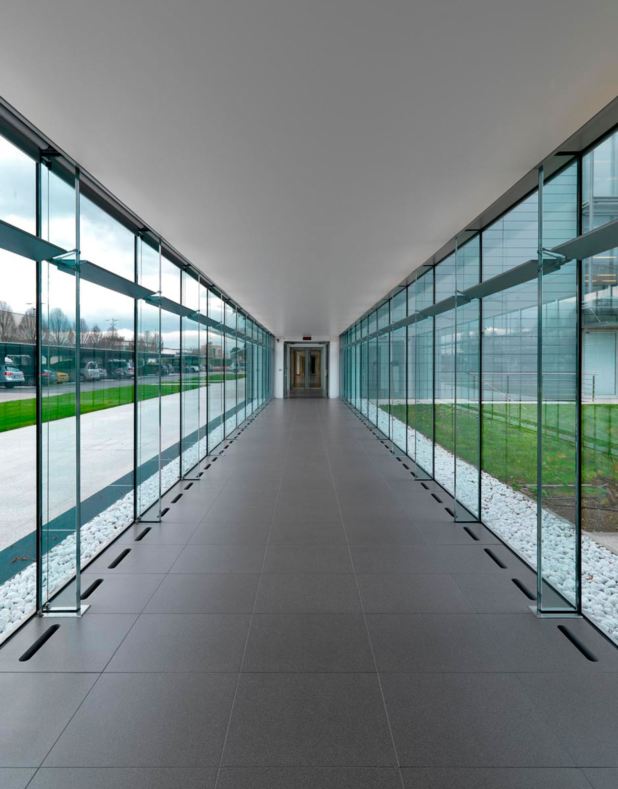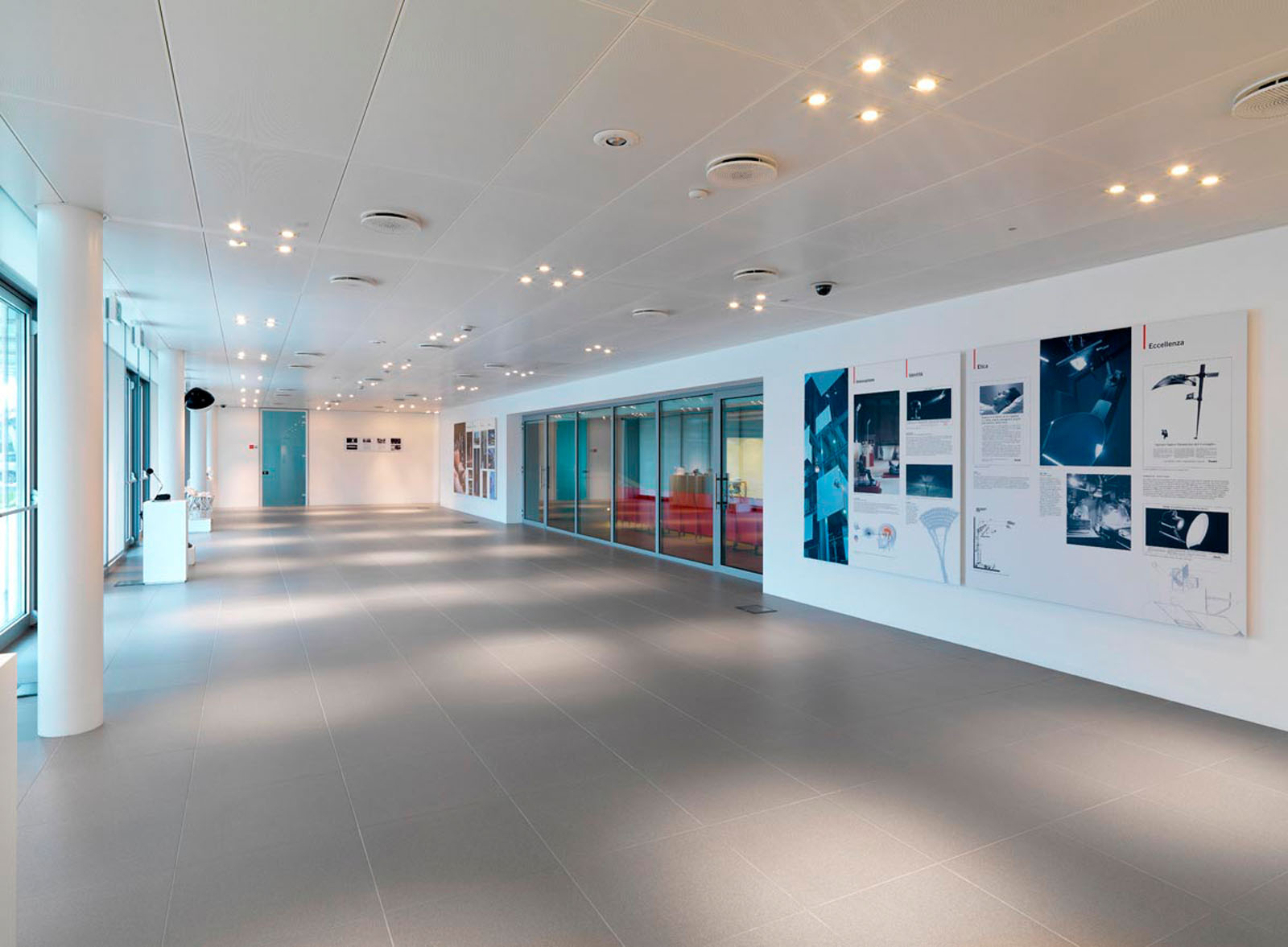 și antreprenorial strategic. Conștienți de cum fiecare peisaj al ciclului de producție și de viață a unui produs ar implica întotdeauna o investiție energetică, iGuzzini Iluminare au adoptat demult comportamente de mare atenție. iGuzzini a făcut din sustenabilitatea și inteligența iluminării un teren privilegiat al propriei cercetări de inovație, care nu se epuizează în produs, ci implică structurile respective ale companiei. La Recanati, dacă instalațiile și procesele de producție respectă și uneori anticipează normativele cele mai restrictive, birourile proiectate de Mario Cucinella și construite între 1995 și 1996 sunt un adevărat manifest de atenție și de grijă pentru mediul natural și uman. O atitudine reafirmată și în ultima clădire realizată în Recanati de Maurizio Varratta dorit pentru a răspunde cerințelor Centrului de Studii și Cercetări și necesităților programelor de formare organizate de companie, care deja implică în Recanati circa 2500 de persoane pe an. Structurat în jurul unui gol central în care se își are locul un mare auditorium, clădirea găzduiește o amenajare didactică - explicativă care reparcurge istoria companiei, ateliere demonstrative și experimentale despre iluminare, spații și aule multimedia pentru lecții și conferințe. La proiectarea iGuzzini Lab, Maurizio Varratta a lucrat atât la soluțiile arhitectonice cât și la prestațiile instalațiilor pentru a minimiza amprenta energetică a construcției. În afara unei fațade cu două straturi vitrate și un acoperiș verde care asigură o excelentă izolație atât vara cât și iarna, proiectul prevede un sistem energetic cu schimb geotermic și o instalație de generare fotovoltaică. O abordare care a permis cădirii să obțină un punctaj egal cu 3,5 în baza protocolului Sustainable Building Challenge de la iiSBE, cel mai bun rezultat între clădirile pentru birouri din Italia. Nu uimește că, în acest context, pentru placările suprafețelor interioare au fost alese materiale ceramice Marazzi. Realizate în fabrici dotate cu linii de producție avansate tehnologic în funcție de un minim impact energetic, materialele Marazzi nu oferă doar prestații chimico-fizice excelente care asigură stabilitatea în timp și operațiuni de întreținere reduse, dar sunt obținute utilizând cote importante de materiale recuperate din reciclarea resturilor de prelucrare. Extremă funcționalitate, maree eleganță formală, maximă responsabilitate față de mediu: valori care caracterizează întregul proiect și care se regăsesc în toate suprafețele interioare ale clădirii, în întregime acoperite cu module 60x60 și 30x30 cm, de culoare Grigio Scuro, alese în gama colecției Marazzi Tecnica SistemT.