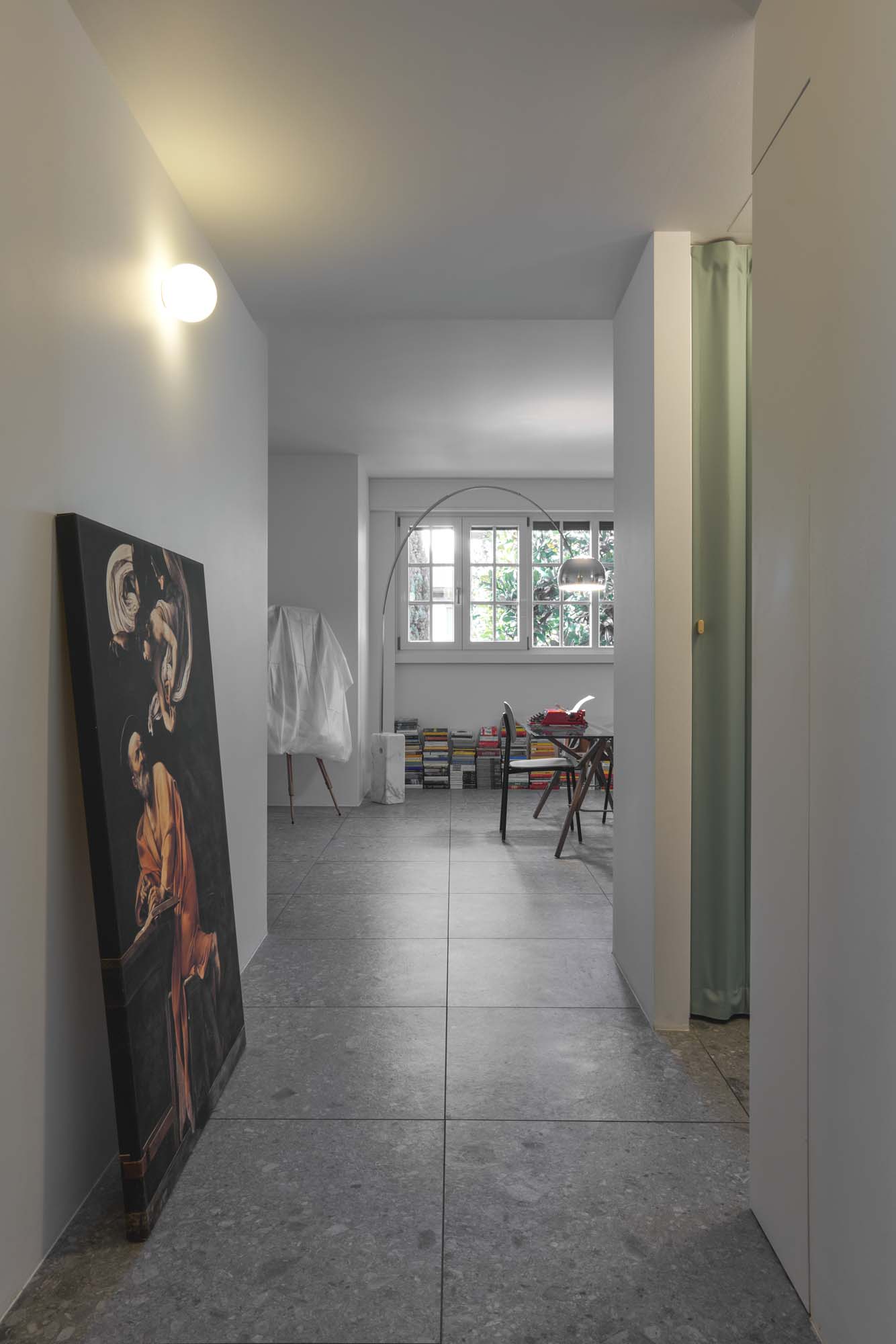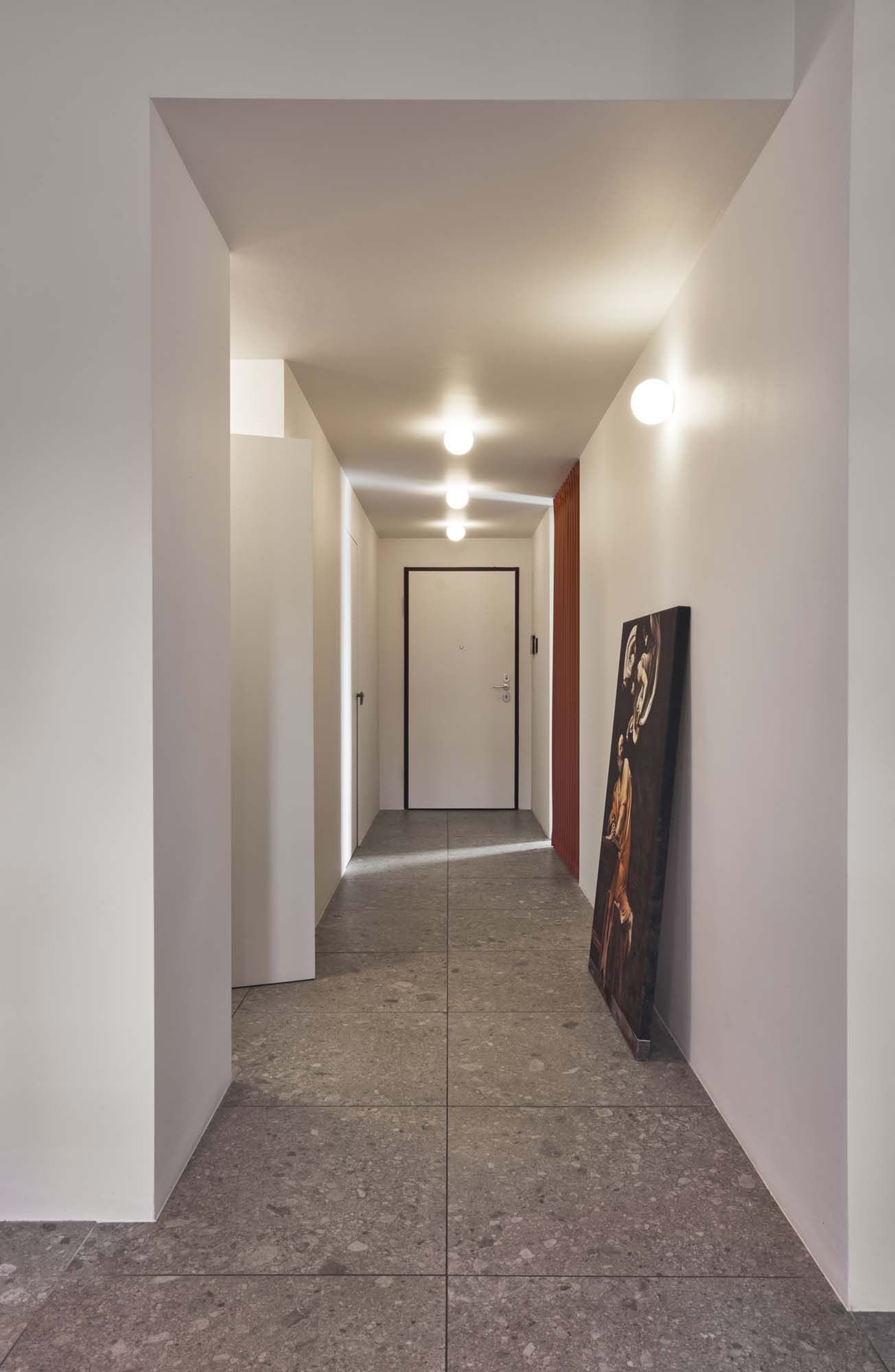 Pardoseala întregii case este acoperită cu colecția de gresie porțelanată cu aspect de piatră Mystone Ceppo di Gré Grey, care conferă un aspect rafinat și contemporan. Textura naturală și culoarea gri conferă un sentiment de continuitate și armonie spațiilor, creând un mediu primitor și relaxant.