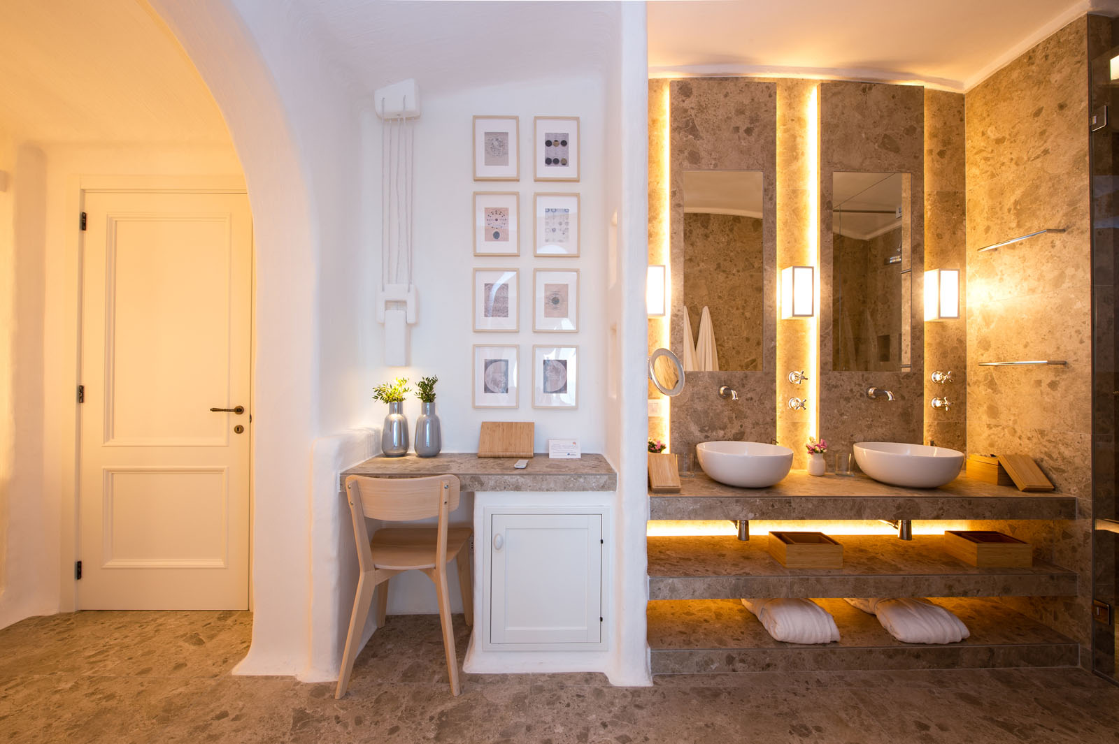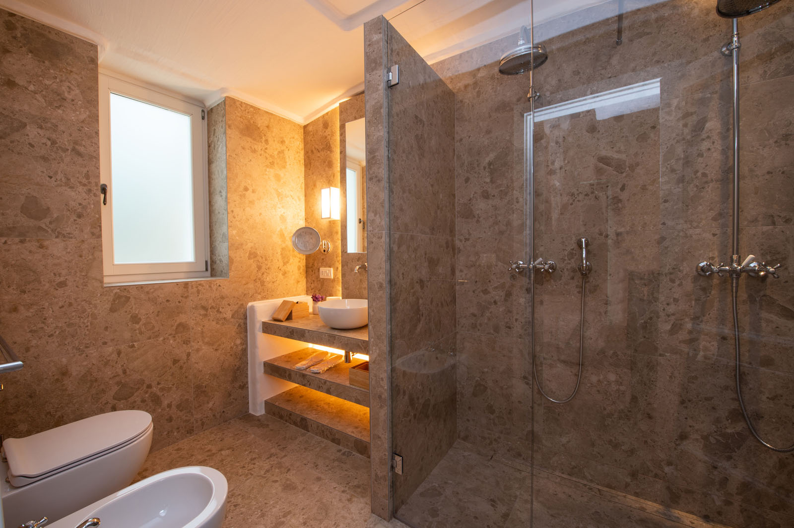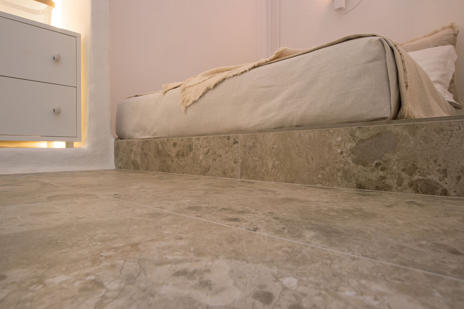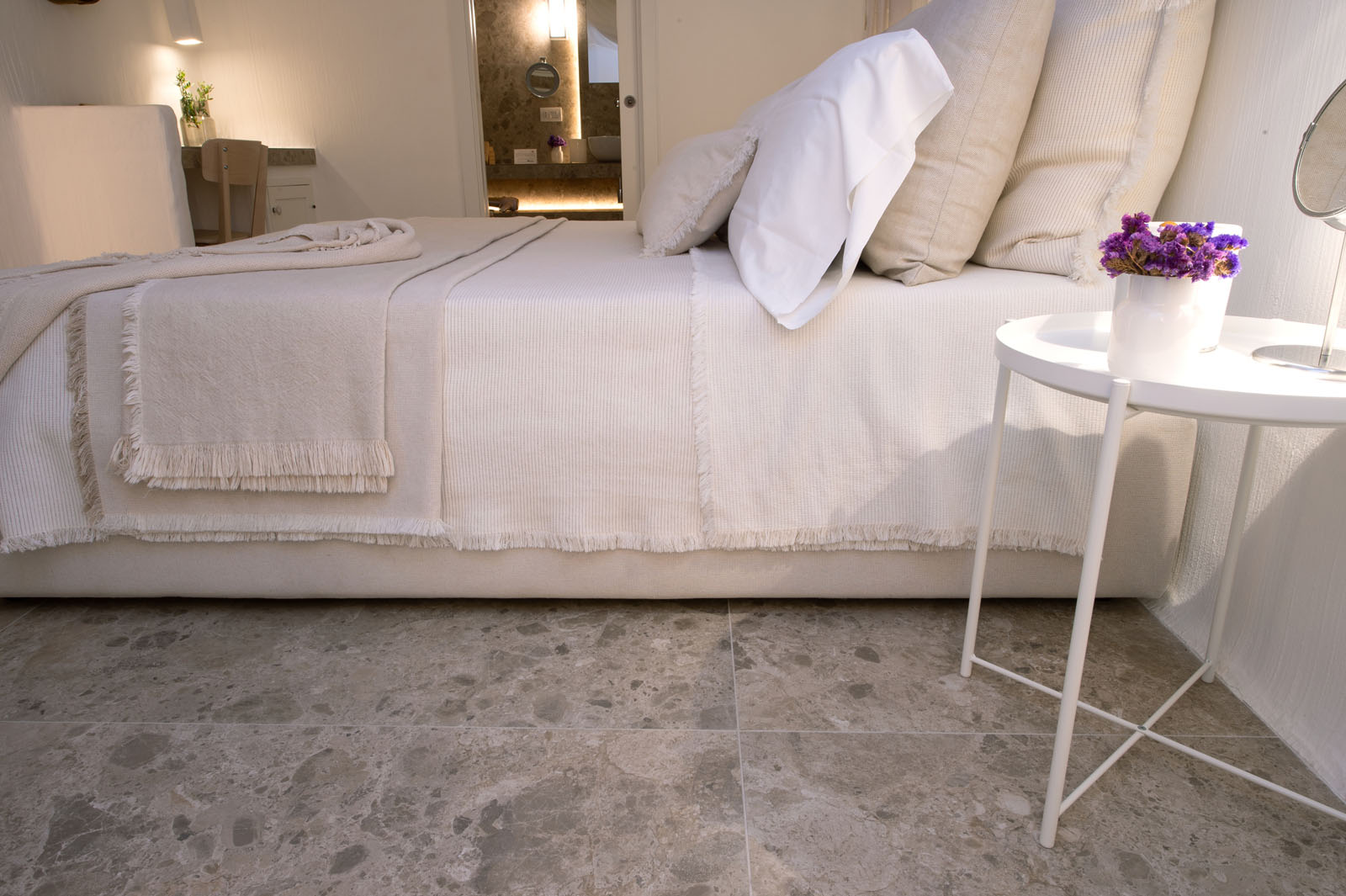 Colecția Carácter este protagonista pardoselilor din camere, a placărilor din băi și chiar a pereților și blaturilor din camerele Deluxe.