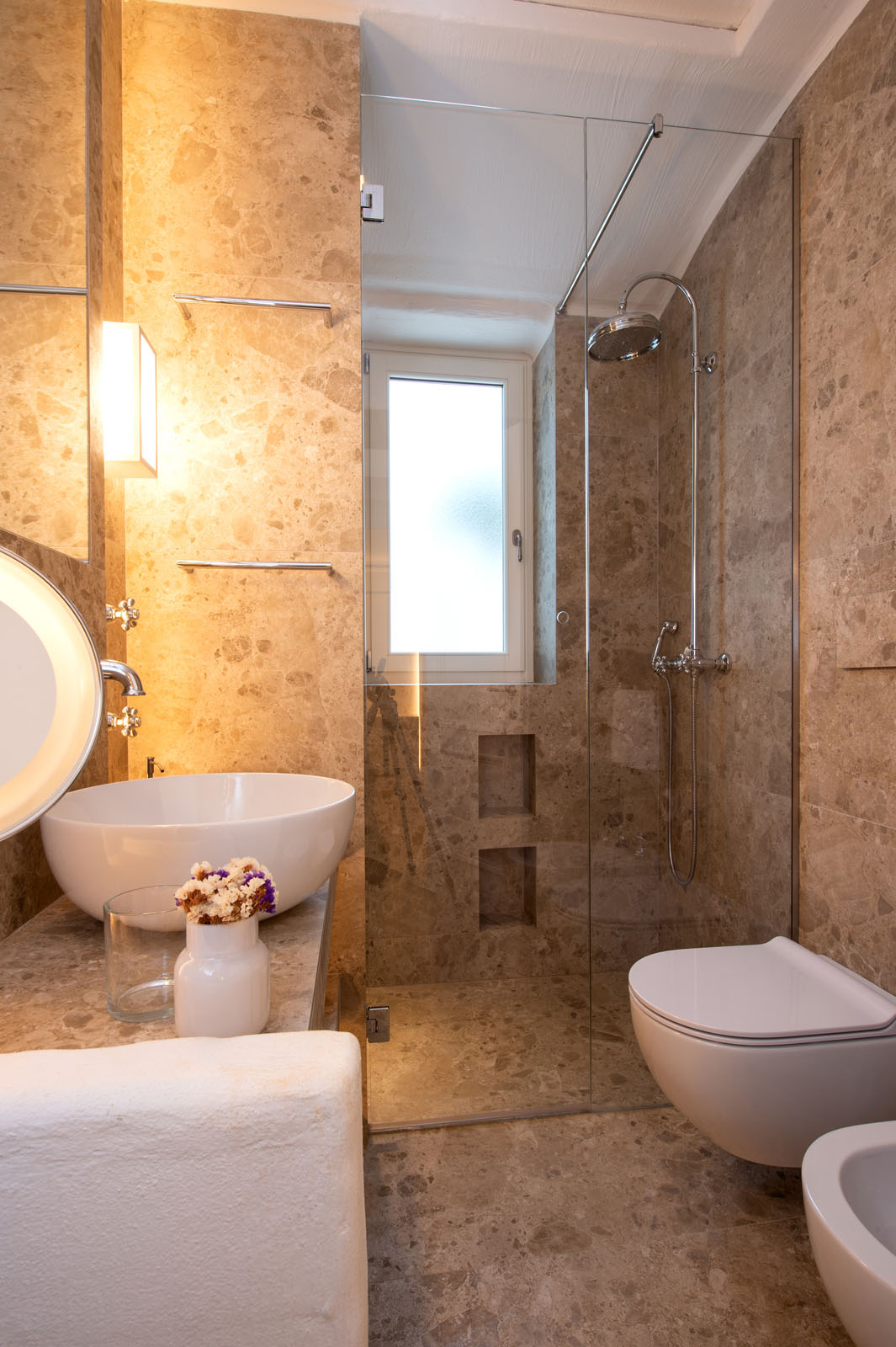 Restaurante, ospitalitate și timp liberMasseria Borgo Ritella, din Fasano, Puglia, proiectată de designerul de interior Pino Brescia, este o unitate hotelieră de lux, cu un farmec mediteraneean, dar în același timp contemporană și de designer, concepută pentru un sejur dedicat intimității și relaxării. Culorile și materialele le reflectă pe cele ale teritoriului, iar piatra locală a fost înlocuită de designer cu colecția inovatoare și performantă Carácter Mix Beige 60x120 cm, realizată cu două tehnologii Premium: Puro Marazzi Antibacterial, care elimină până la 99,9% din bacterii, și StepWise, care conferă suprafețelor calitatea antiderapantă și finețe la atingere.