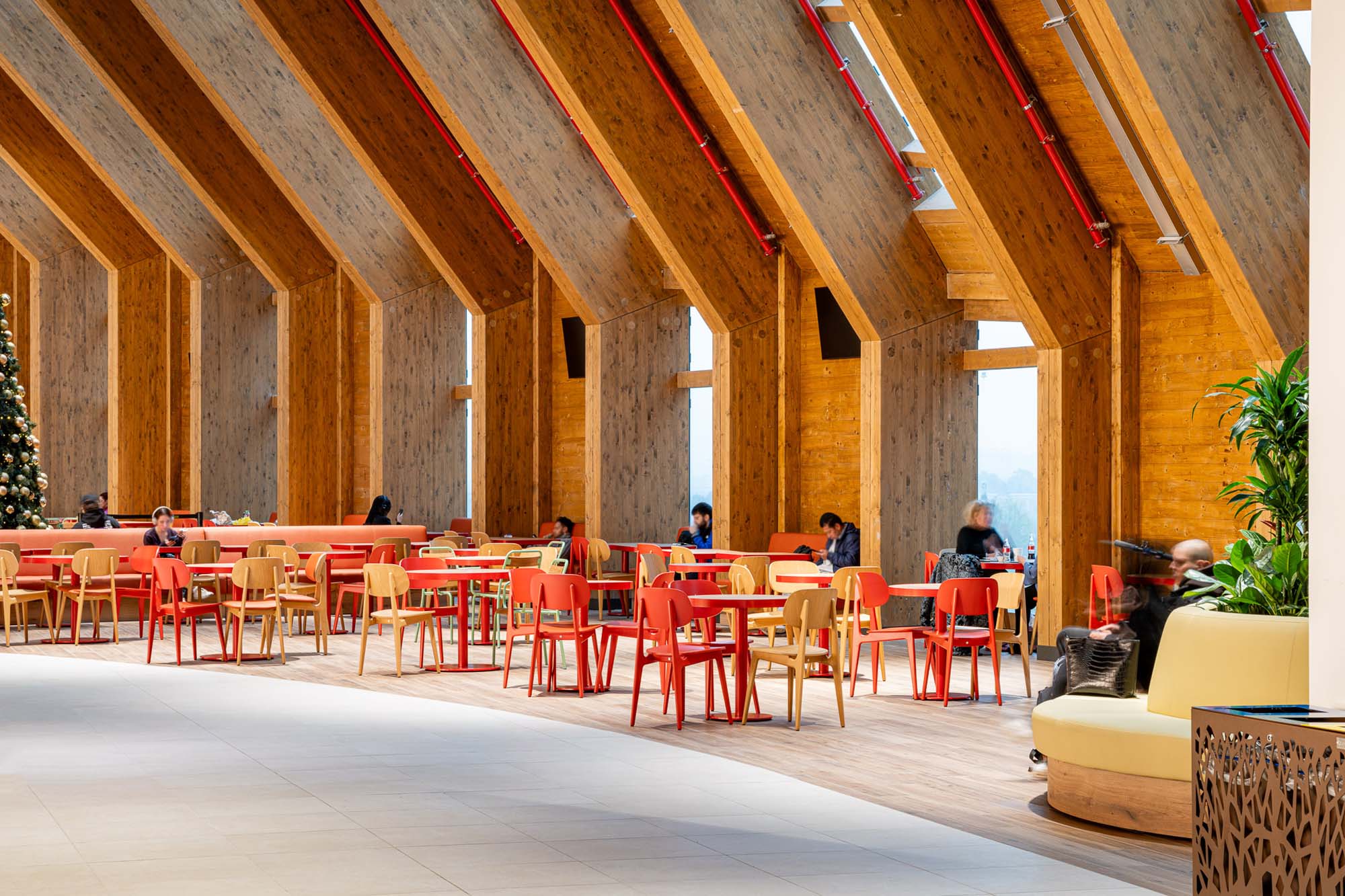 Spațiile din fața intrărilor, terasele care creează legătura vizuală între interior și exterior, dar și utilizarea extensivă a materialelor naturale, cum ar fi lemnul structural și pardoselile din gresie porțelanată, precum și plantarea multor spații interioare, facilitează conexiunea perfectă cu spațiile urbane.