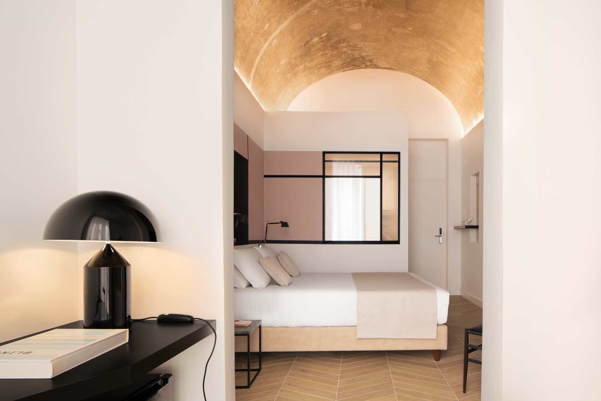 Arhitectul Pasquale Bianchini a restaurat cu pricepere relais-ul, recuperând și punând în valoare elementele originale cu o notă delicată, în timp ce integrează elemente contemporane prin bucăți iconice de design, care se contopesc armonios cu ambientul istoric al clădirii.